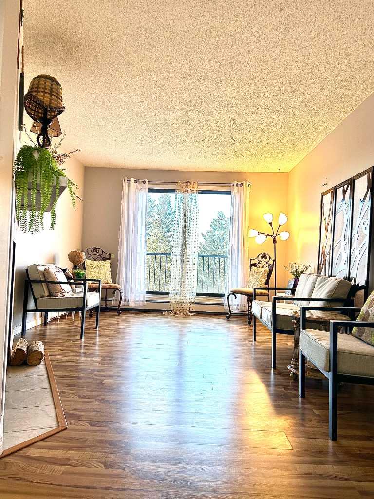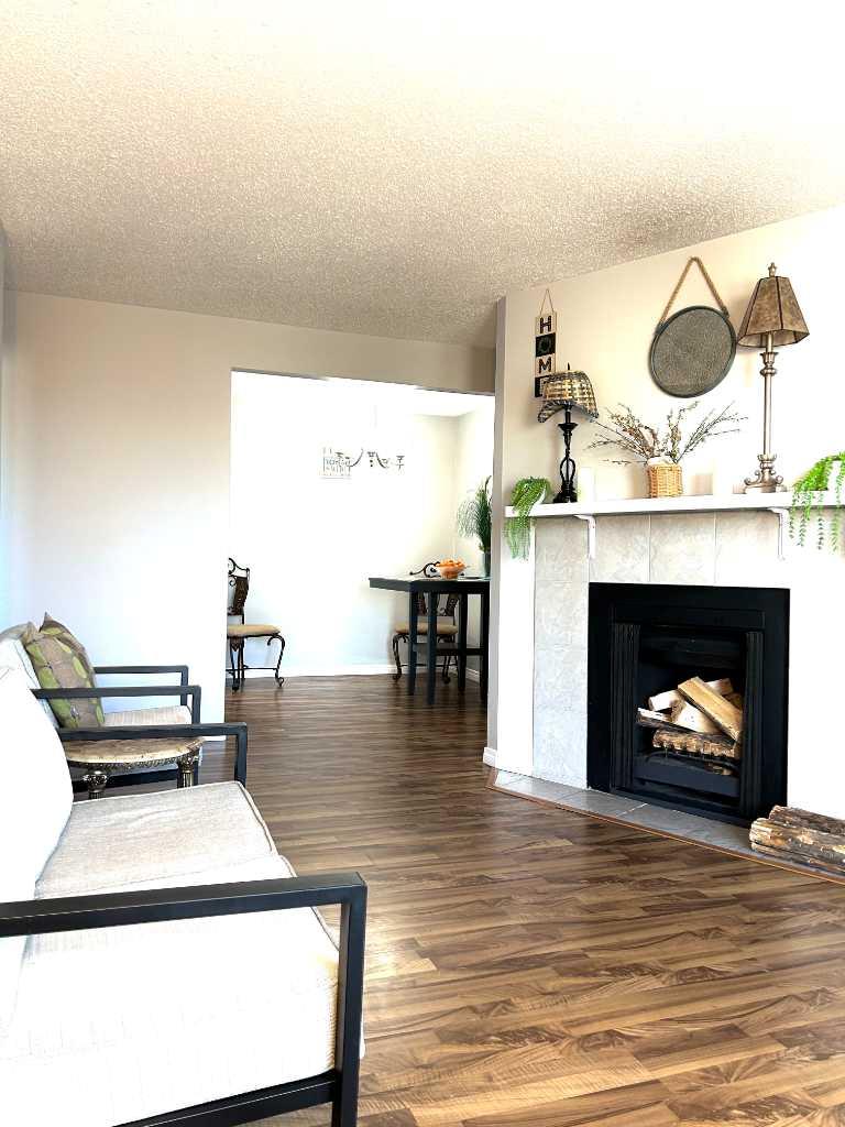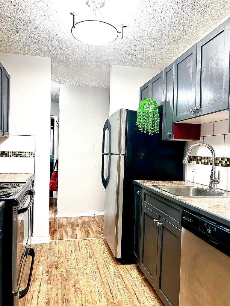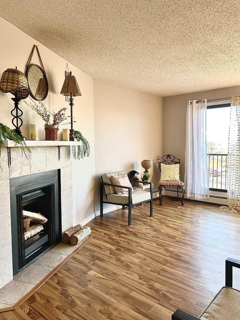 Priced to sell! A great investment opportunity or first time home buyer! A 2 bed 1 bath, beautiful 837 square foot condo. Good sized in unit storage room. A coat closet and linen closet. Primary bedroom has its own sink and mirror. The fireplace in the living room is gorgeous. The kitchen has a dishwasher. Floors are hardwood, carpet and luxury vinyl plank. It has a balcony so you can enjoy the out of doors on nice days by just stepping out the door. The lot has mature trees. The location is ideal. Walking distance to shopping centres, grocery stores, restraunts, a bike path and bus stops. Call your agent today!