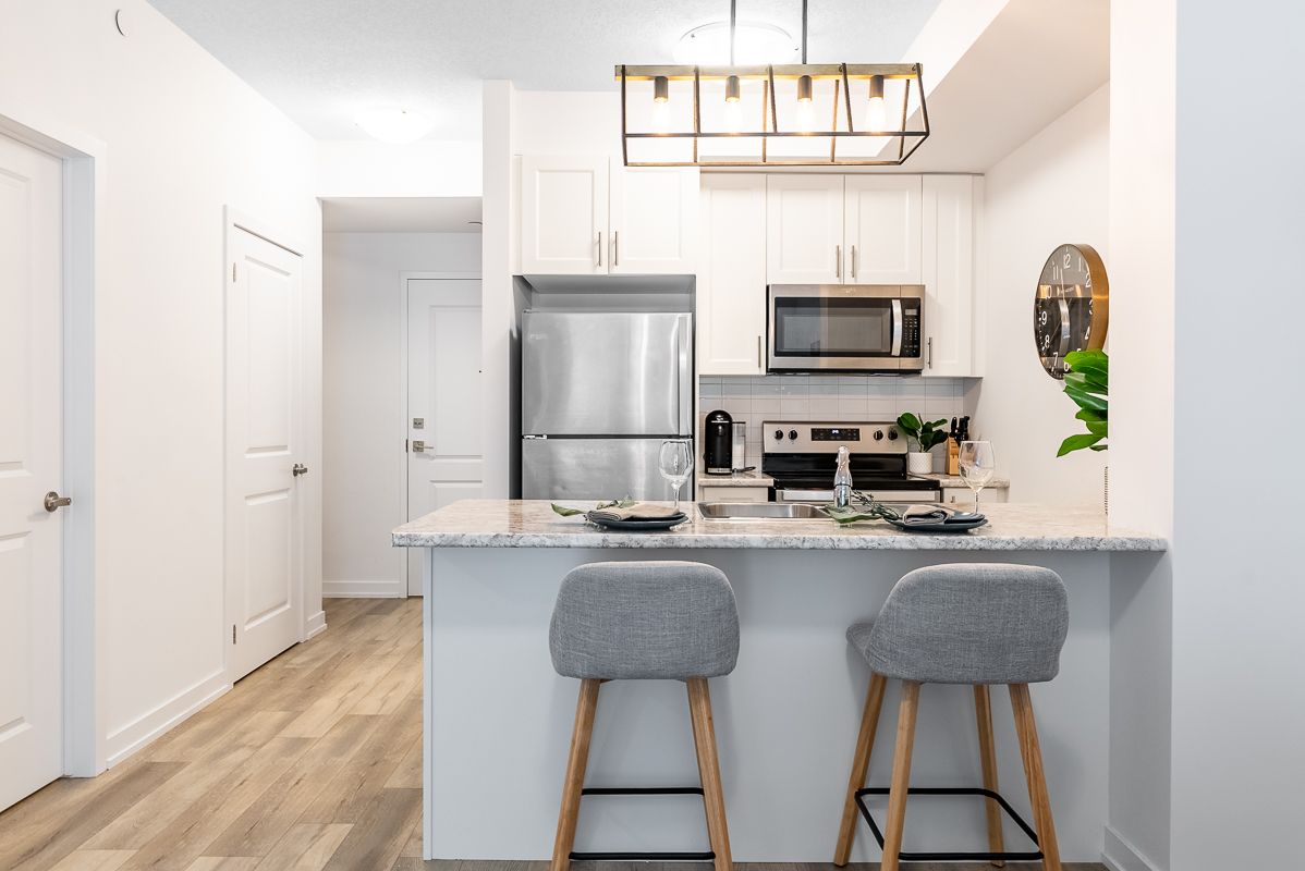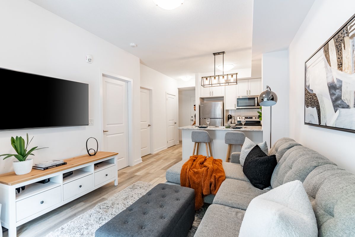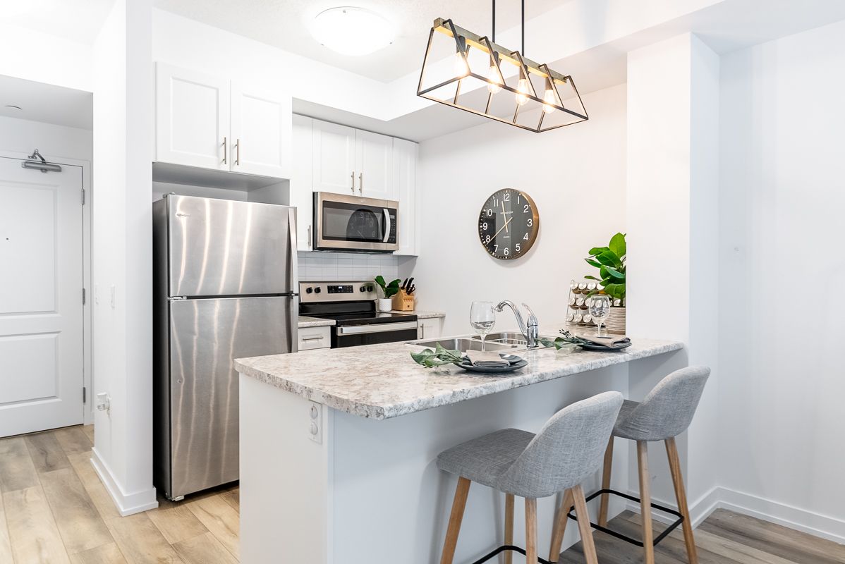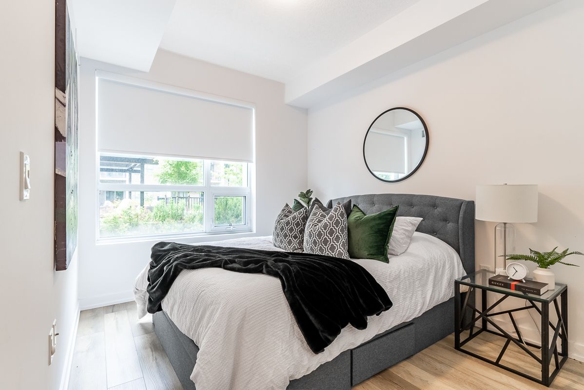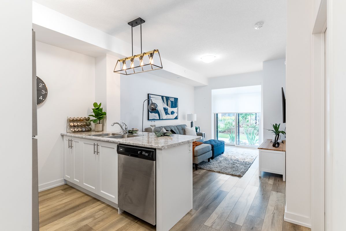 Presenting an exceptional opportunity to embrace urban living at its finest. This sophisticated 1-bedroom plus den condominium, strategically situated on the ground floor of a new building, seamlessly blends contemporary elegance with utmost convenience. This modern space seamlessly combines elegance with convenience. The open-concept living area is filled with natural light, and the den offers versatility as a home office or reading corner. The well-equipped kitchen boasts quality appliances and ample storage. Sliding doors lead to a private patio and courtyard. Additional perks include underground parking, storage, a fitness room, party area, rooftop patio, and indoor bike storage. Don't miss this exceptional offer!Interior Features: