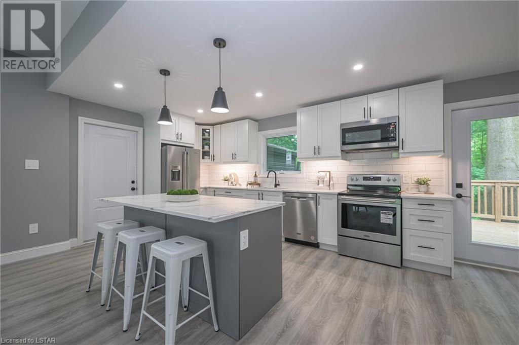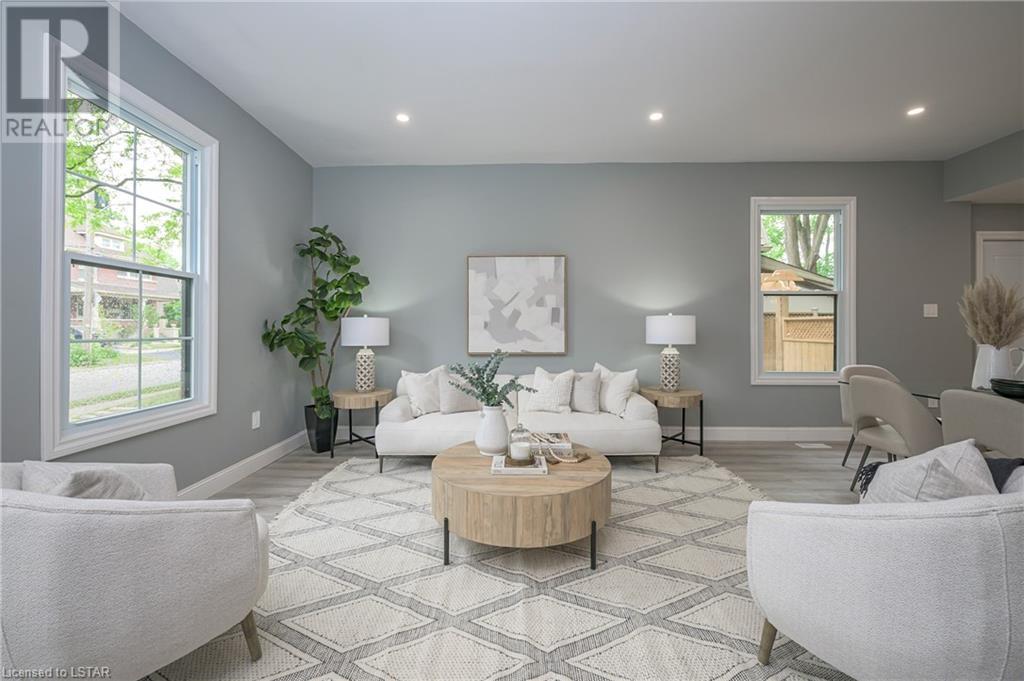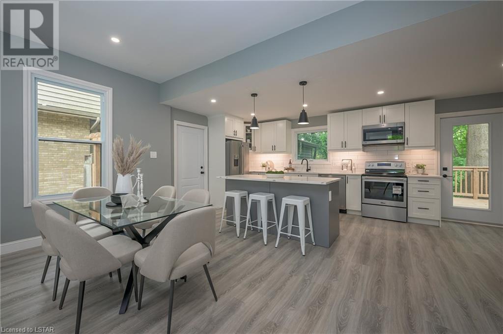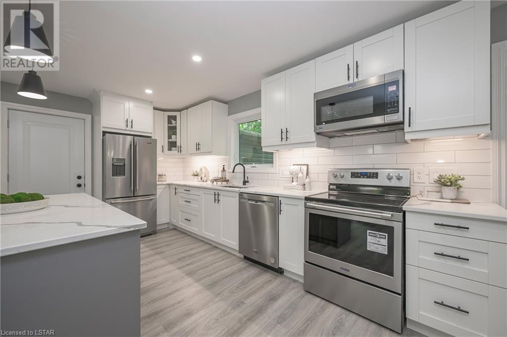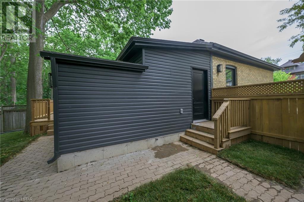 Charming brick bungalow on a little street and backing onto protected woods. A perfect pairing of modern & old south charm. Walk to Wortley village & downtown, bike and walking trails, shops & restaurants. Professionally renovated & remodelled open concept floor plan. kitchen with island, crisp white cabinets , granite, backsplash, plenty of prep & storage space, & 4 stainless steel appliances included. 2 bedrooms, both with closets, new bathroom & main floor laundry. Spacious & bright living area with large windows. Well appointed deck, accessed from kitchen, with spectacular views of the wooded area that offers premium privacy. Fenced yard, plenty of parking. New roof(2022), furnace, air, windows, electrical, plumbing, upgraded insulation... Move in and enjoy! (id:22211)