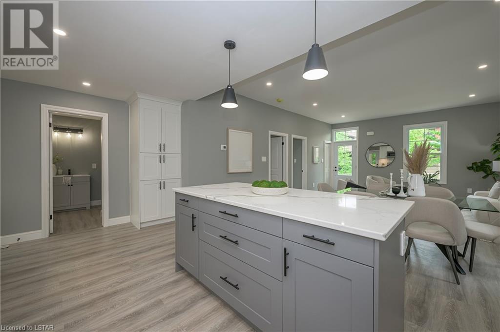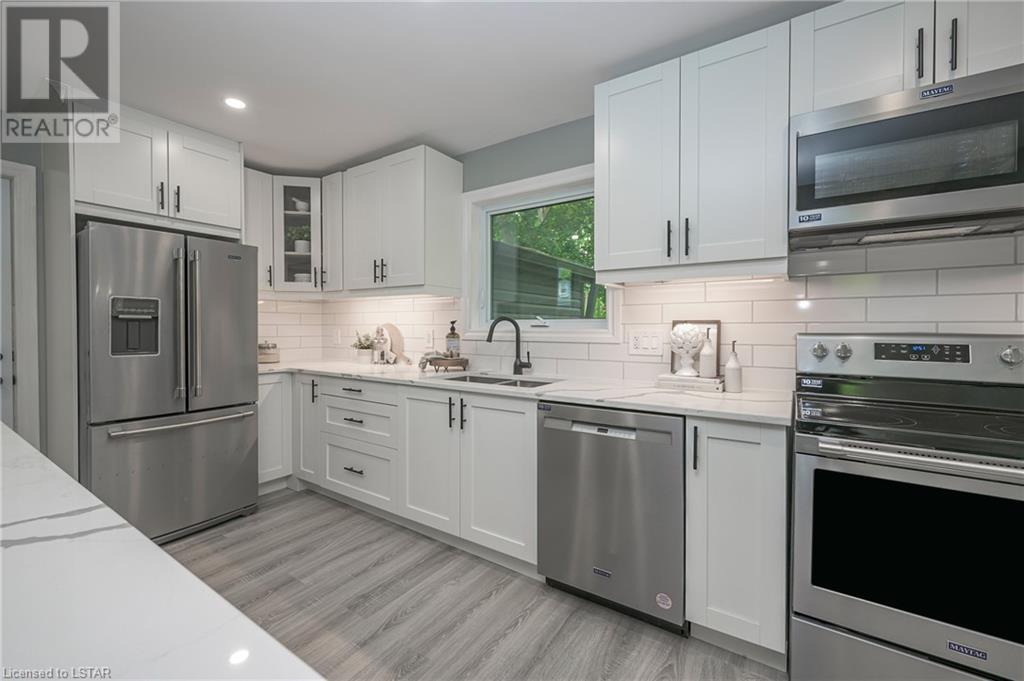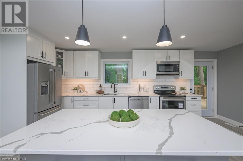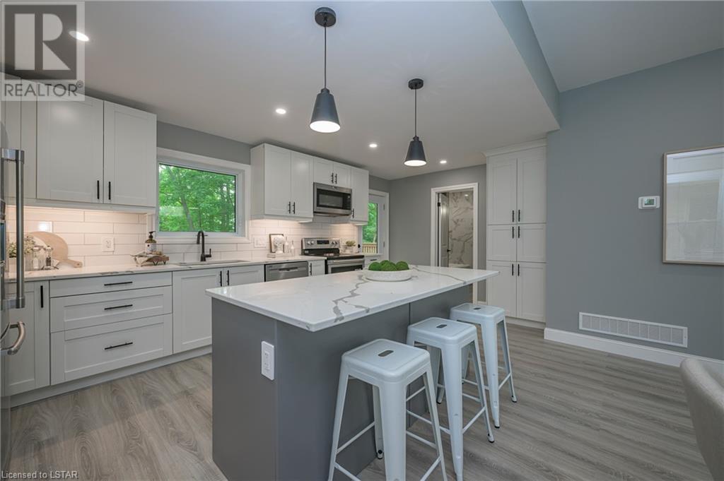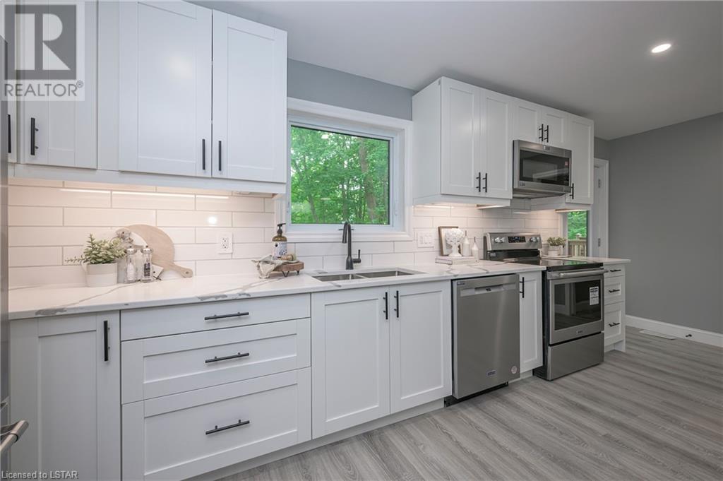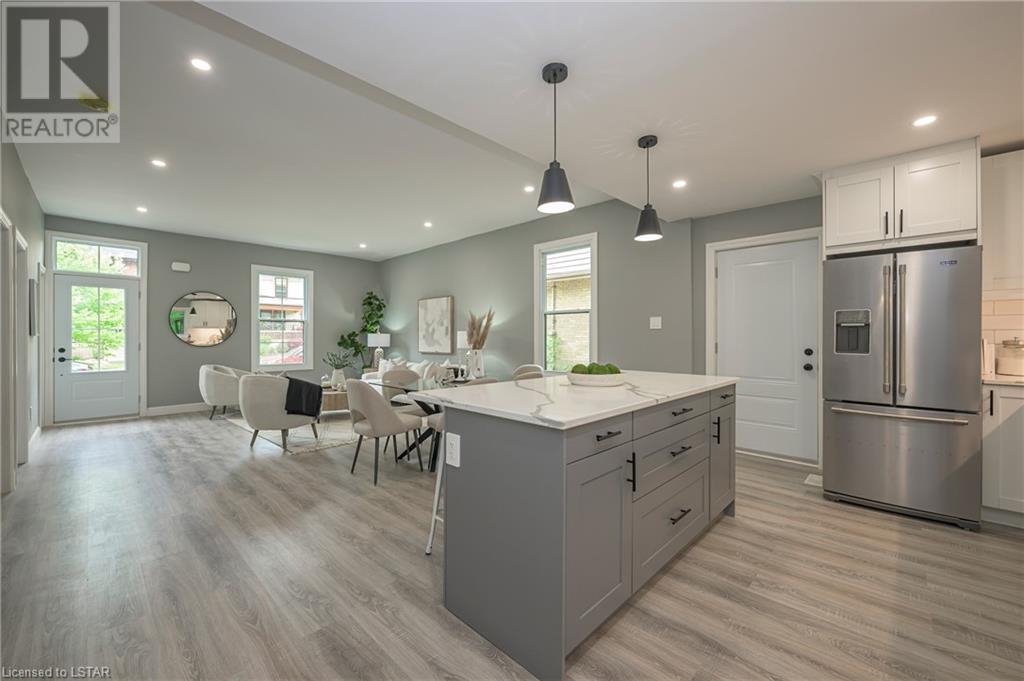 Charming brick bungalow on a little street and backing onto protected woods. A perfect pairing of modern & old south charm. Walk to Wortley village & downtown, bike and walking trails, shops & restaurants. Professionally renovated & remodelled open concept floor plan. kitchen with island, crisp white cabinets , granite, backsplash, plenty of prep & storage space, & 4 stainless steel appliances included. 2 bedrooms, both with closets, new bathroom & main floor laundry. Spacious & bright living area with large windows. Well appointed deck, accessed from kitchen, with spectacular views of the wooded area that offers premium privacy. Fenced yard, plenty of parking. New roof(2022), furnace, air, windows, electrical, plumbing, upgraded insulation... Move in and enjoy! (id:22211)