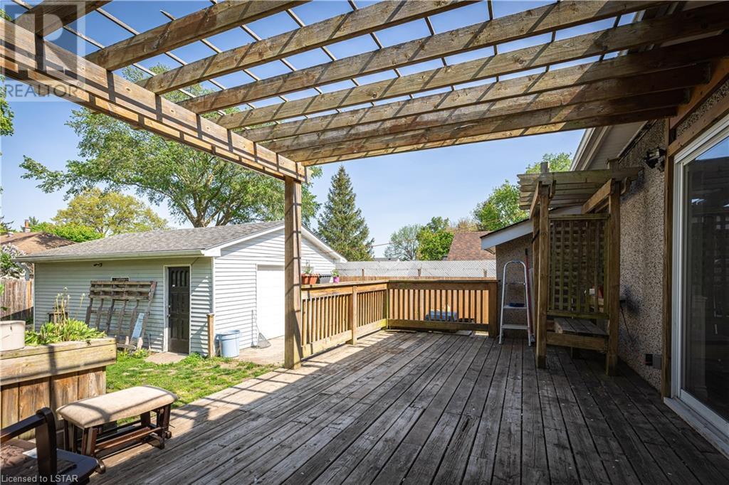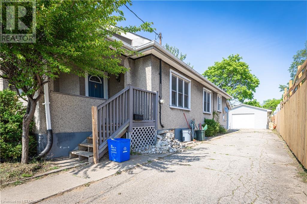 First time buyers or investors are welcome to this one floor raised bungalow, 3+2 bedrooms, 2 baths, 2 living rooms and formal dining room. Fully finished basement and a detached car garage sized 17'5 wide X 23'5 long with 9'X7' high aluminum sectional garage door. There are some updates like electrical panel, gas furnace & C/air, wooden deck sized 14' X 22'7 and a pergola off huge kitchen at rear leading to nice and quiet back yard. Near all amenities i.e. school, bust stops, super store grocery shopping, churches. 10 minute drive to down town, hospitals, Fanshawe college or The university of Western Ontario. Do not miss this large sized property and conveniently central located. Supra box at front door knob front porch. Note: Electrical wirings are mixed with the original and new ones; however it has a breaker box panel. And rental equipment is water heater tank. (id:22211)