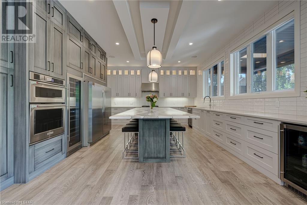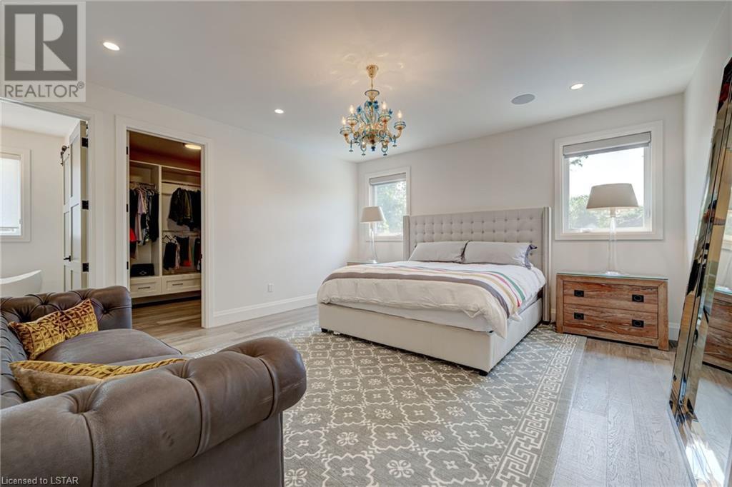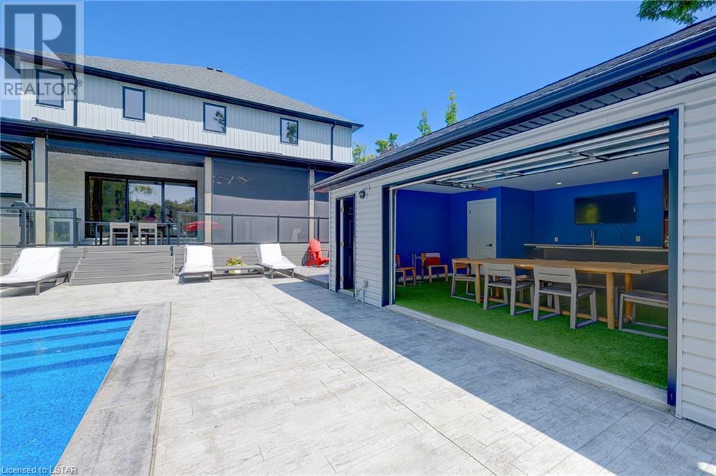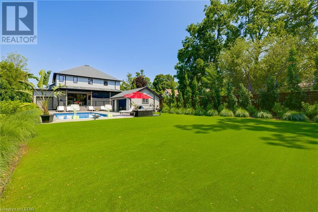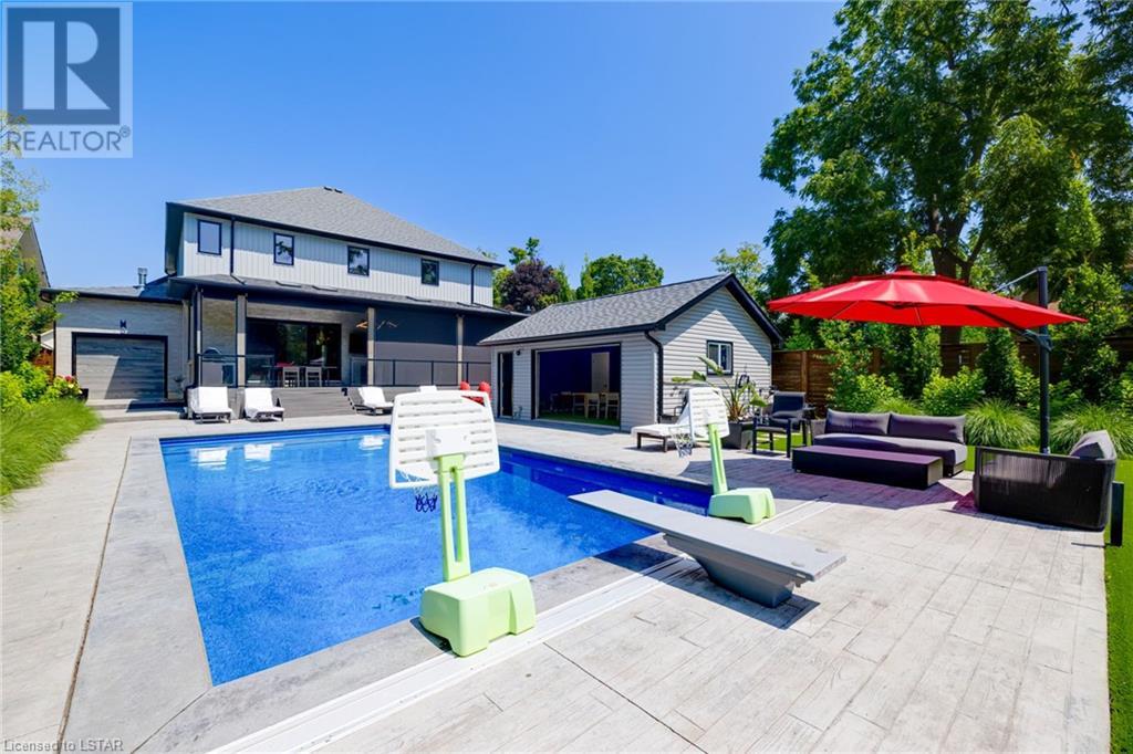 One of a kind in Wortley Village. This 5 bed, 6 bath (1 in pool house) home is the perfect home for self vacations, entertaining or large families. 10–13-foot ceilings on main, 9 feet upstairs and 9 in lower level. This home has it all. Heated floors in ensuite, 4th bed upstairs has ensuite, beds 2 and 3 have a Cheater ensuite. Large laundry upstairs and more laundry in the basement. Massive kitchen with butlers’ area and hidden pantry. 3 Car heated garage, covered deck out back with electronic screens leading to inground Saltwater pool and cabana with bar and washroom. Extensive landscaping with turf grass. No need for a lawnmower. Cameras surrounding the property. House has smart component to it as well. Lower level has bedroom, family room and washroom. No carpet in house. Cabinets are half inch plywood instead of 5/8 mdf. Too many things to list, a must see. (id:22211)