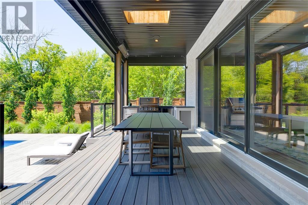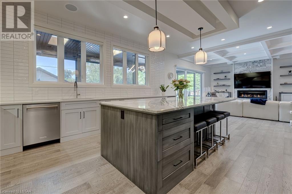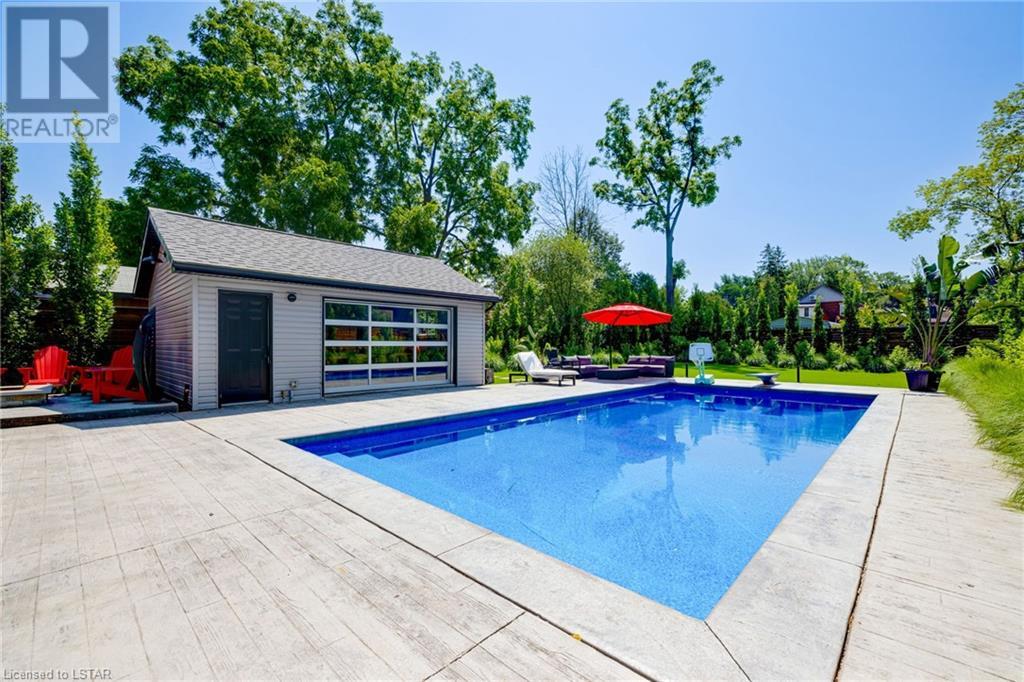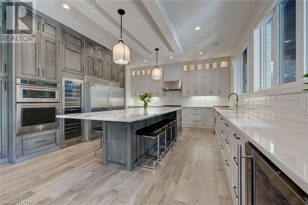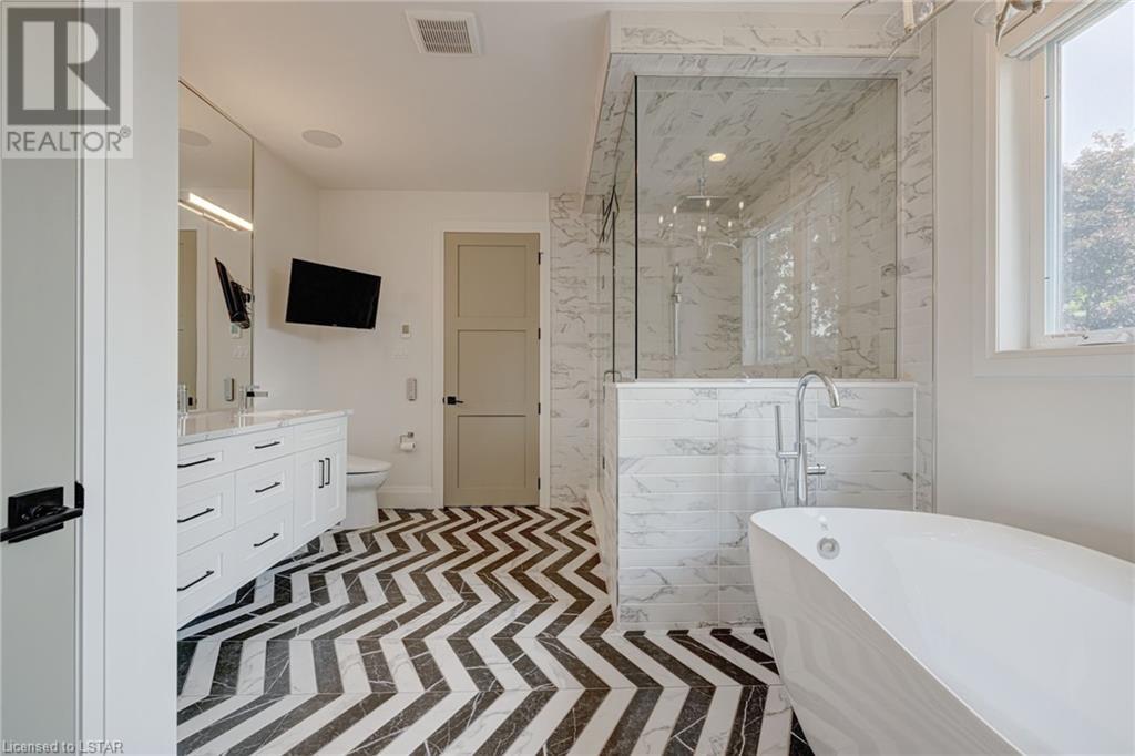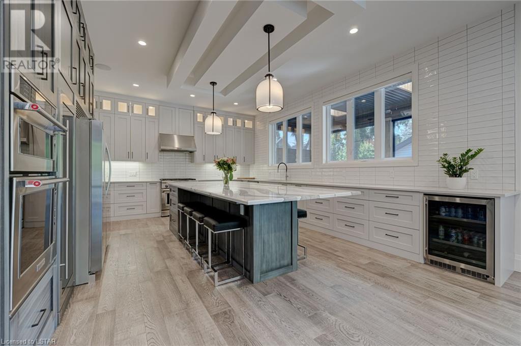 One of a kind in Wortley Village. This 5 bed, 6 bath (1 in pool house) home is the perfect home for self vacations, entertaining or large families. 10–13-foot ceilings on main, 9 feet upstairs and 9 in lower level. This home has it all. Heated floors in ensuite, 4th bed upstairs has ensuite, beds 2 and 3 have a Cheater ensuite. Large laundry upstairs and more laundry in the basement. Massive kitchen with butlers’ area and hidden pantry. 3 Car heated garage, covered deck out back with electronic screens leading to inground Saltwater pool and cabana with bar and washroom. Extensive landscaping with turf grass. No need for a lawnmower. Cameras surrounding the property. House has smart component to it as well. Lower level has bedroom, family room and washroom. No carpet in house. Cabinets are half inch plywood instead of 5/8 mdf. Too many things to list, a must see. (id:22211)