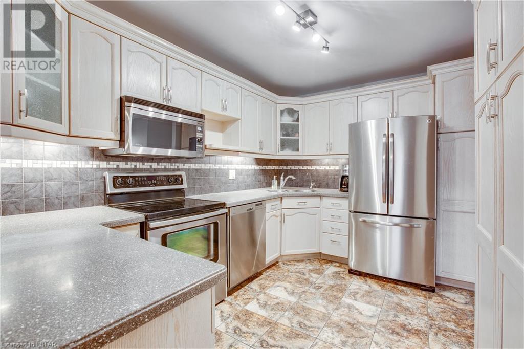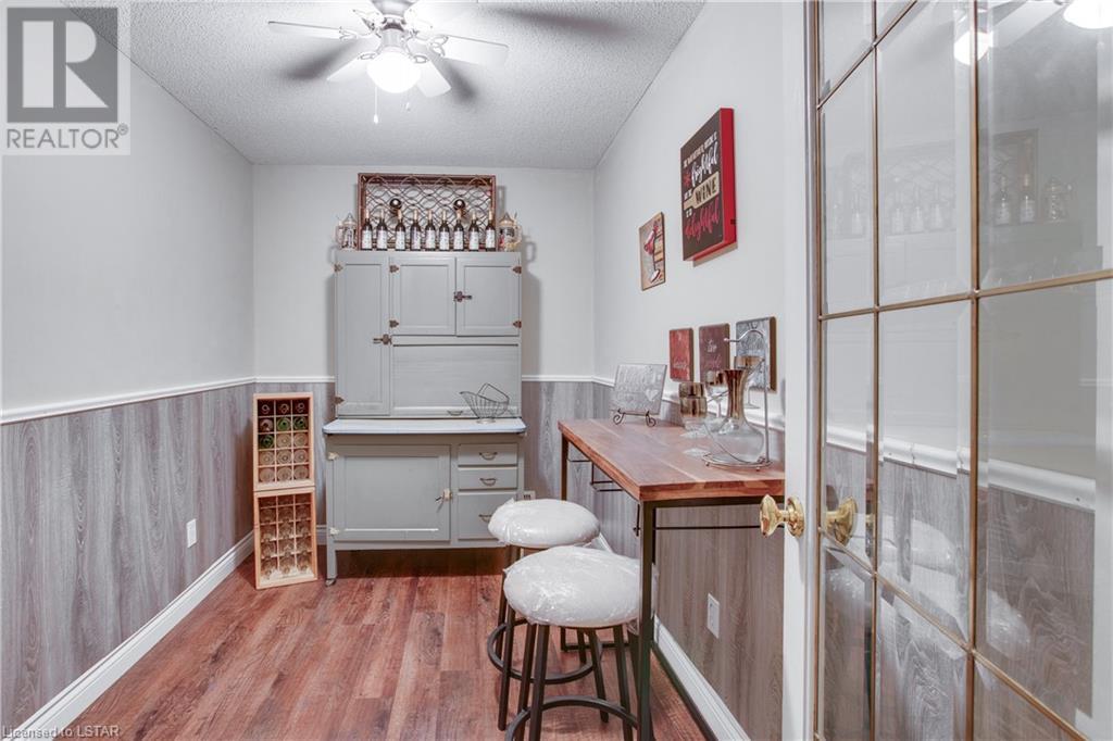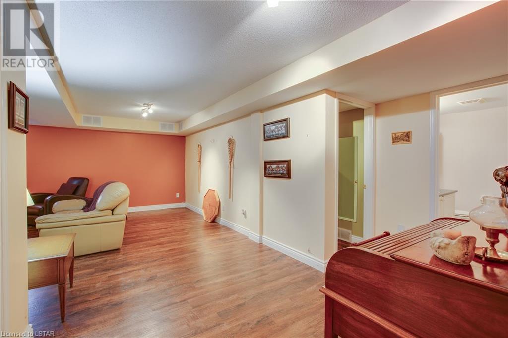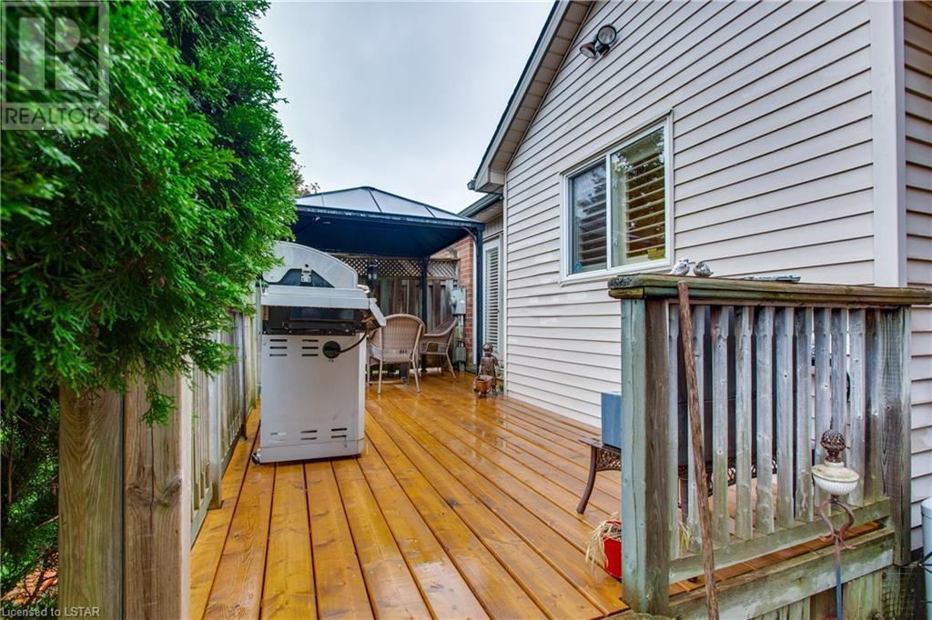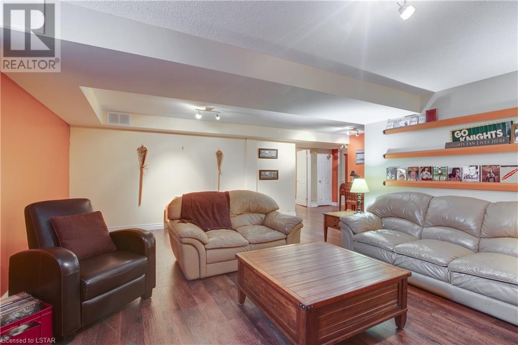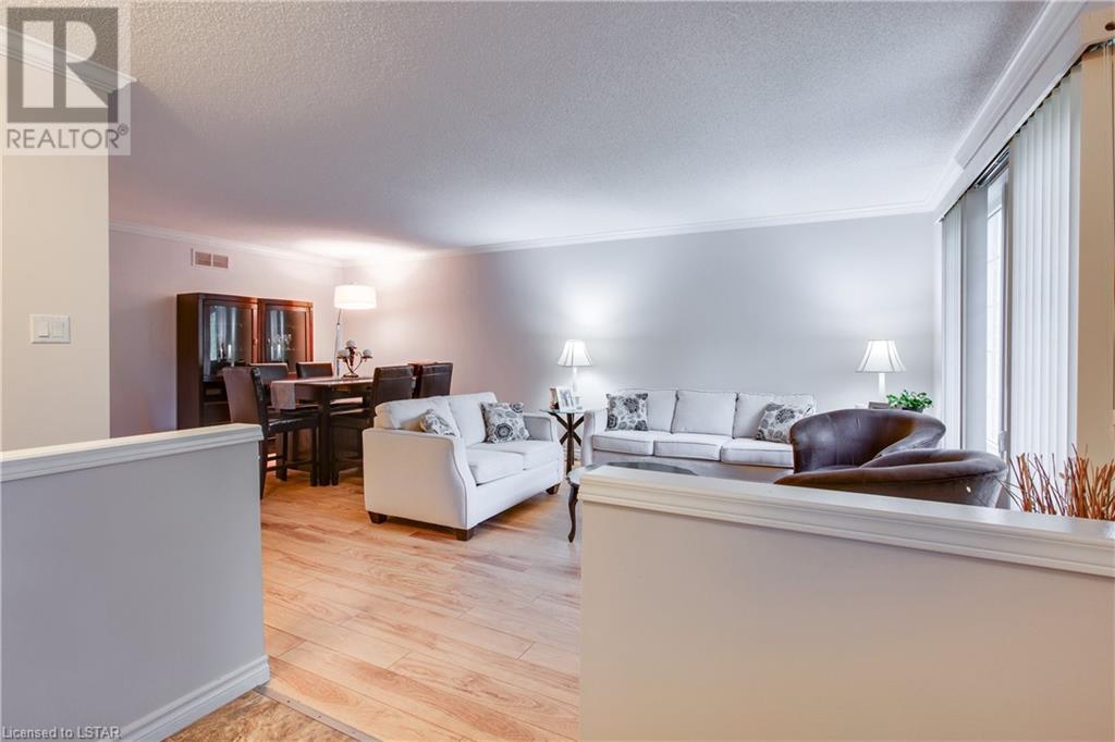 Welcome to Hawthorne Lane, a quiet enclave of condos located in the heart of Summerside. This 2 bedroomunit is one of the largest one floor designs in the complex with 1227 sq ft on the main floor and 900 sq ftfinished in the basement. Walk in to your new home that features a freshly painted open concept living anddining room. As you make your way through the unit you will come into a good sized eat in kitchen with loadsof cabinetry and a sliding door leading out to a newer private deck perfect for relaxing on on summerevenings. The Primary bedroom is spacious and could accommodate a king size bed easily, has a walk incloset, and access to a cheater ensuite that has a beautiful soaker tub and separate shower. Main floorLaundry. A second bedroom is located on the main floor but was changed into a den, to change it back a closetdoor and bedroom doors would need to be installed. Head on down to the basement and be prepared to bepleasantly surprised. A large rec room awaits you perfect for entertaining. You will also find, a full 4 piecebathroom, Utility and Storage rooms, plus two bonus rooms, currently being used as a windowless sparebedroom and wine bar. This condo is one floor living at its finest. Book your appointment today to see thisgreat unit. A short drive to restaurants, shopping, groceries, LHSC, the 401 and so much more. (id:22211)