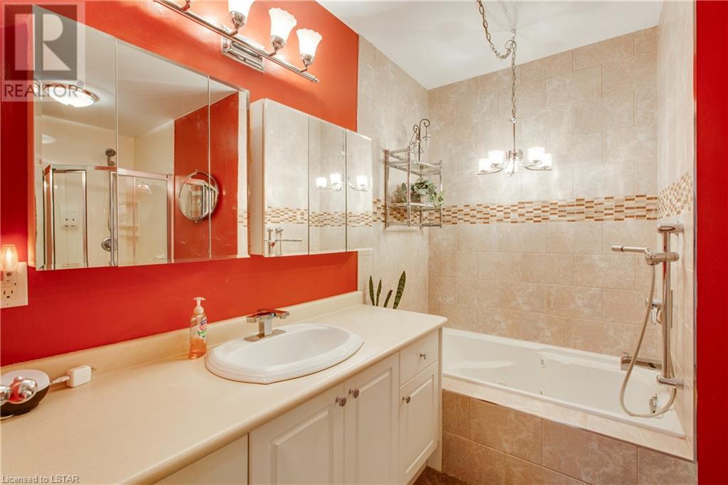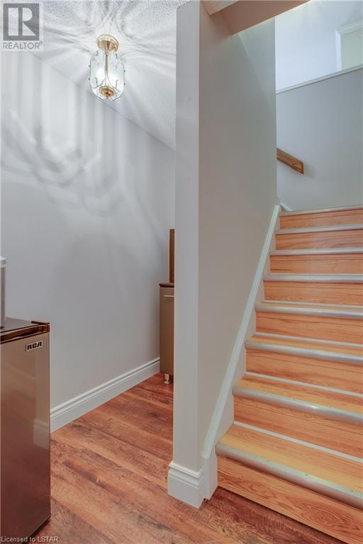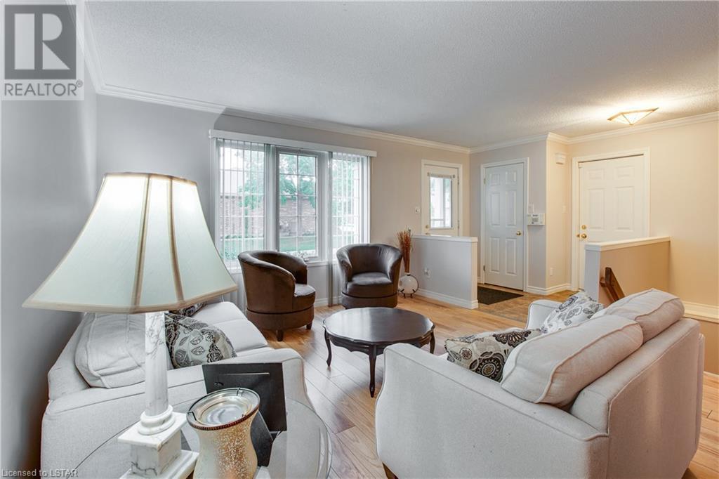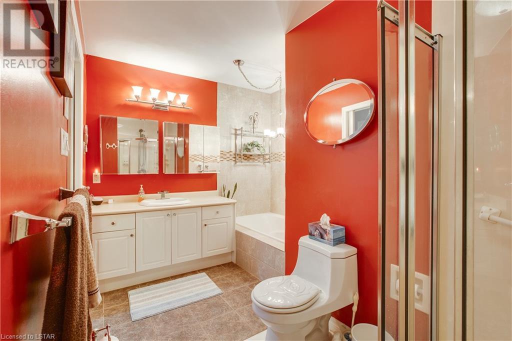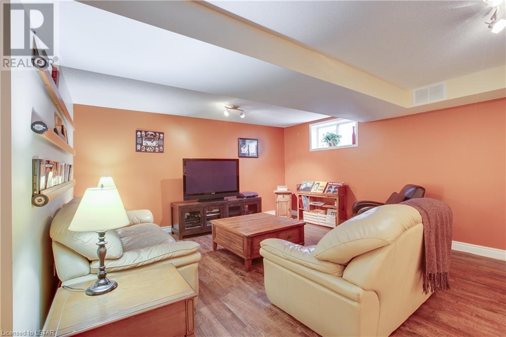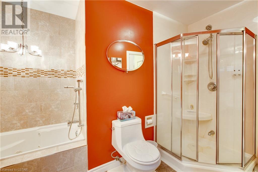 Welcome to Hawthorne Lane, a quiet enclave of condos located in the heart of Summerside. This 2 bedroomunit is one of the largest one floor designs in the complex with 1227 sq ft on the main floor and 900 sq ftfinished in the basement. Walk in to your new home that features a freshly painted open concept living anddining room. As you make your way through the unit you will come into a good sized eat in kitchen with loadsof cabinetry and a sliding door leading out to a newer private deck perfect for relaxing on on summerevenings. The Primary bedroom is spacious and could accommodate a king size bed easily, has a walk incloset, and access to a cheater ensuite that has a beautiful soaker tub and separate shower. Main floorLaundry. A second bedroom is located on the main floor but was changed into a den, to change it back a closetdoor and bedroom doors would need to be installed. Head on down to the basement and be prepared to bepleasantly surprised. A large rec room awaits you perfect for entertaining. You will also find, a full 4 piecebathroom, Utility and Storage rooms, plus two bonus rooms, currently being used as a windowless sparebedroom and wine bar. This condo is one floor living at its finest. Book your appointment today to see thisgreat unit. A short drive to restaurants, shopping, groceries, LHSC, the 401 and so much more. (id:22211)