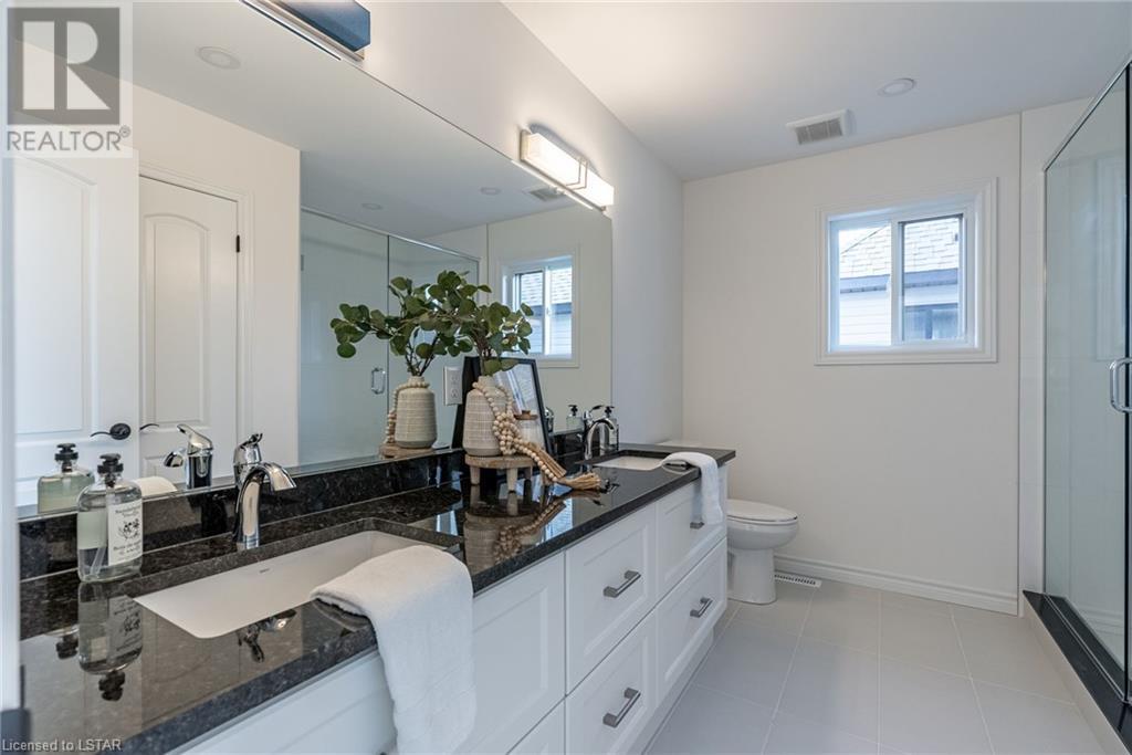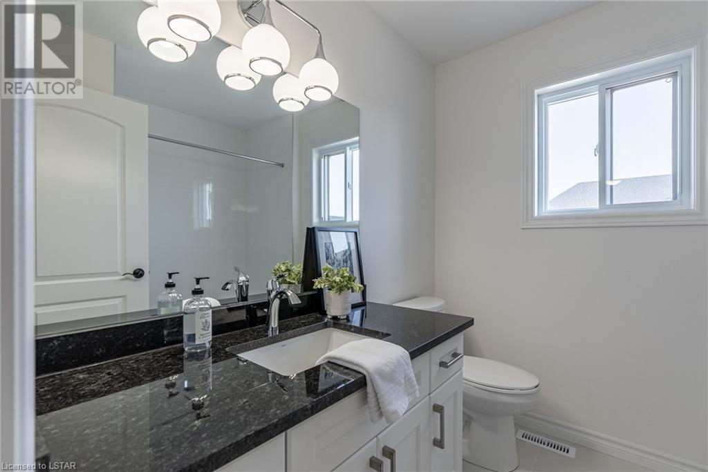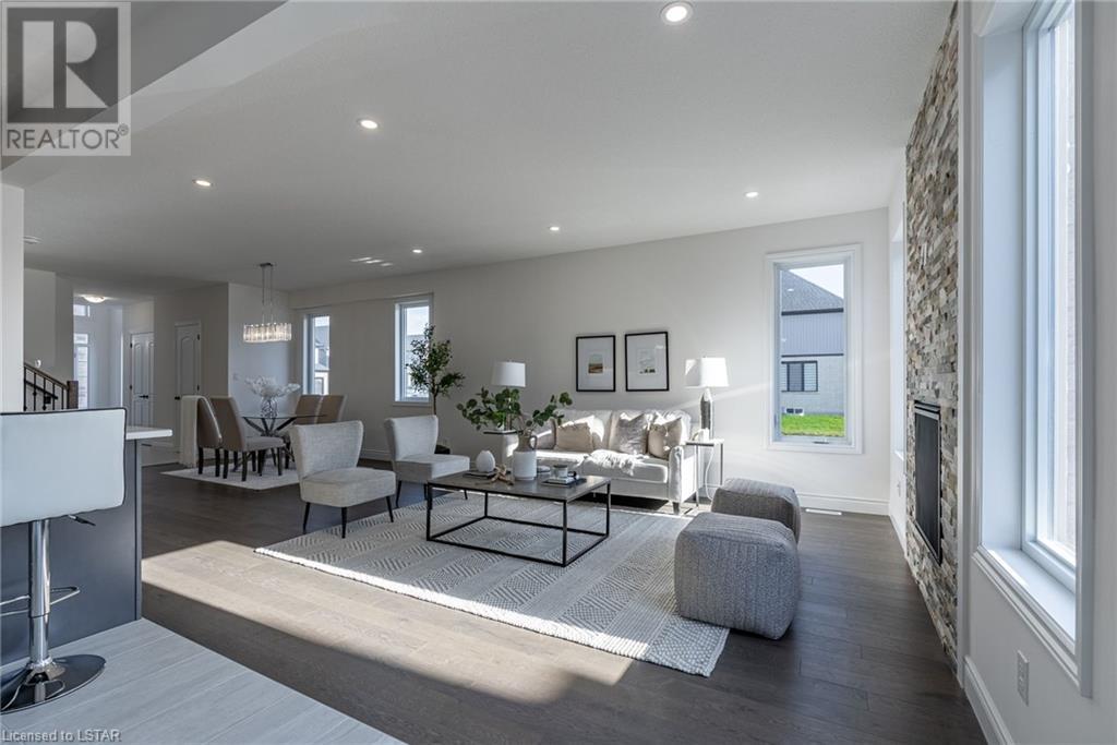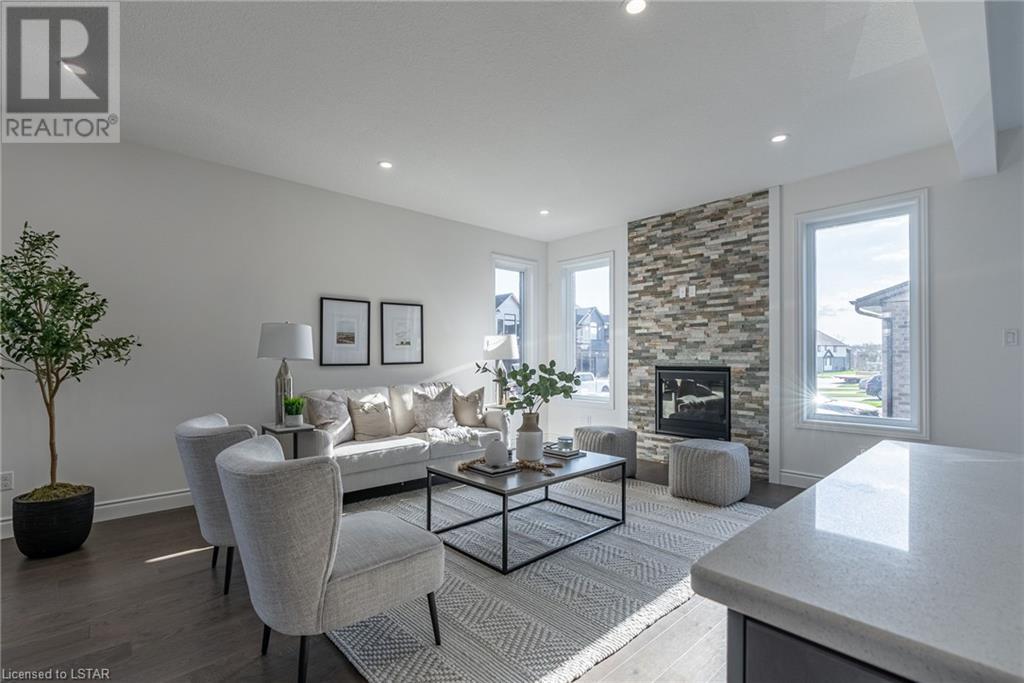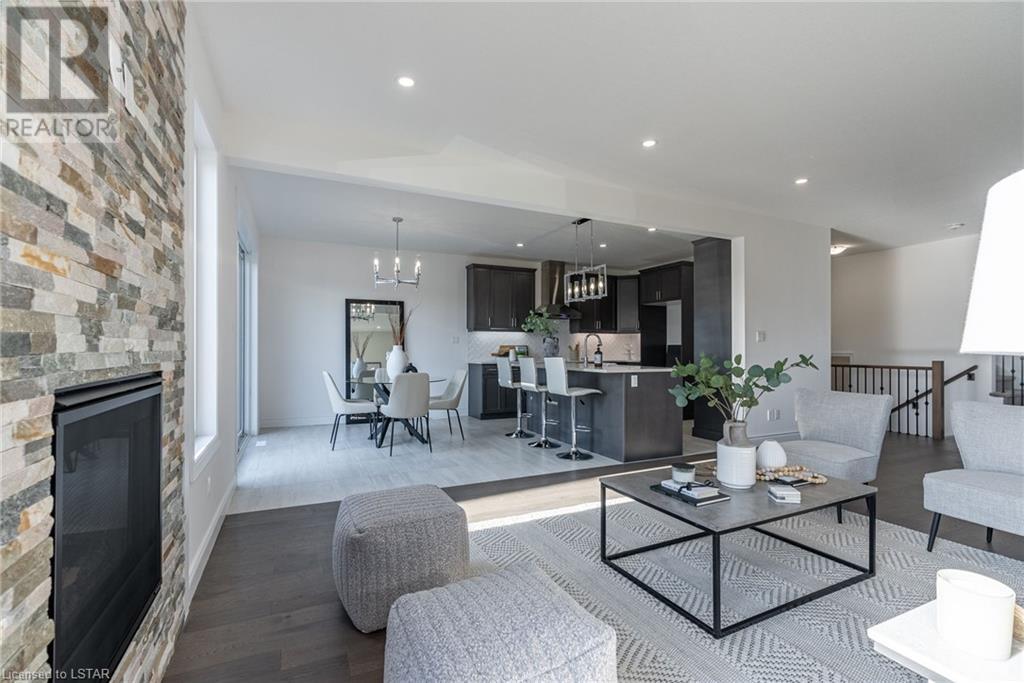Welcome to the Westfields Subdivision in Hyde Park, where Kenmore Homes proudly presents the Westwood floor plan—tailored for families and those looking for a granny suite opportunity! This newly constructed home spans 2579 square feet, offering five bedrooms and four bathrooms. A paver stone driveway leads to a double-car garage, seamlessly blending convenience with style. The entryway sets the tone with a stained fiberglass front door, introducing the quality throughout the home. Inside, 9-foot ceilings on the main level create an open and airy environment, complemented by numerous windows for natural light. The main level features an open concept design, seamlessly connecting the living room and kitchen. Enjoy the warmth of the living room's gas fireplace with a floor-to-ceiling ledge stone backdrop. The kitchen is equipped with a large island, backsplash, and granite countertops. Ascend to the upper level, where a spacious sitting room provides additional living space. Four generously sized bedrooms and a well-appointed 4-piece bathroom await. The primary bedroom boasts a luxurious 4-piece ensuite bathroom with a double sink and walk-in closet. The lower level is fully finished making it the perfect multi-generational home, offering a versatile family room, an additional bedroom, and another complete bathroom. With kitchen rough-in’s already in place, add cabinets and appliances and this lower level could be an excellent mortgage helper. This space also features a covered separate entrance, providing flexibility for various living arrangements. Located in the heart of Hyde Park, the Westfields Subdivision offers an unbeatable location. Esteemed schools such as Western University, vibrant shopping, parks, golf courses, and much more contribute to the area's allure. With thoughtful design, quality finishes, and modern amenities, this is the ideal place to call home. Don’t miss out - contact us today! (id:22211)