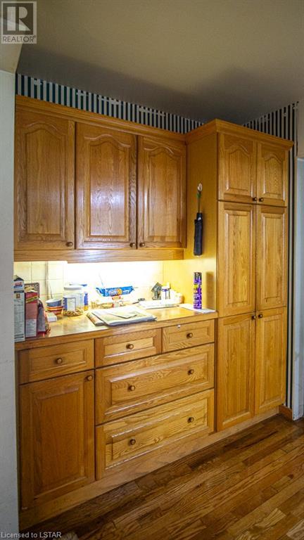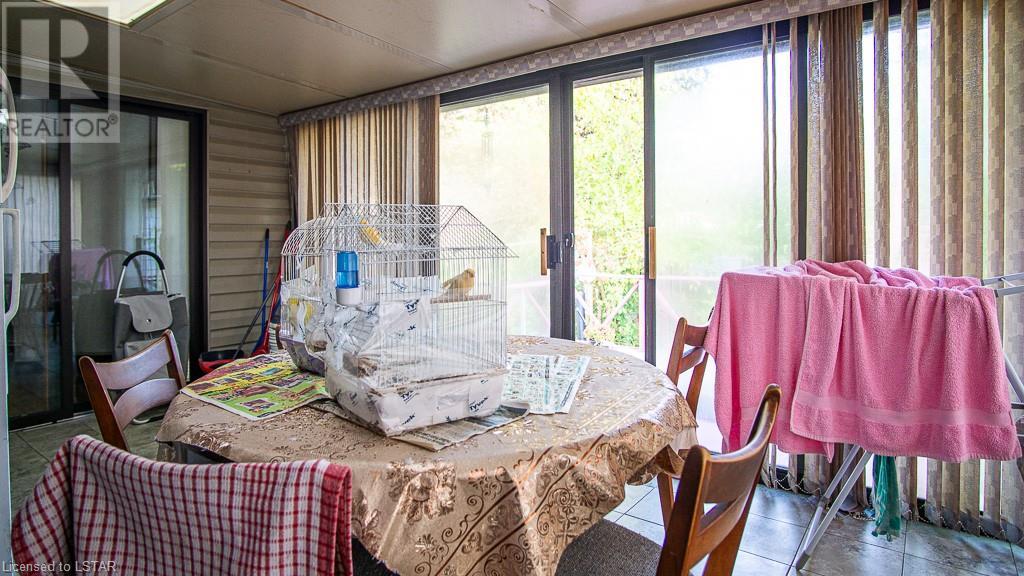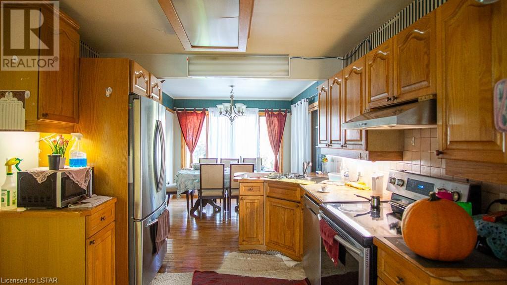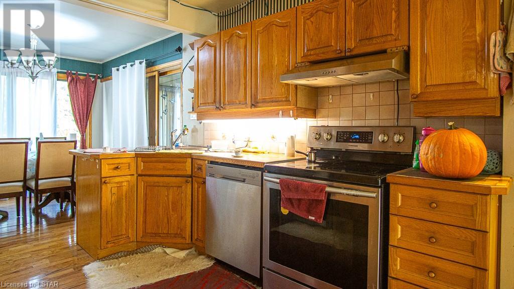Discover exceptional value in this well-maintained 3-bedroom, 2-bathroom ranch home, offering a serene 16x10 Florida room and a spacious backyard oasis for ultimate privacy. This property boasts a professionally upgraded kitchen with beautiful oak raised-panel cupboards. The long driveway provides ample parking space, and the property is situated on a peaceful street close to schools, shopping centers, the library, Highway 401, and all essential amenities. Step inside to experience a wonderful living environment, featuring a modern, oversized kitchen and Florida room at the rear of the house. The kitchen is a chef's dream, equipped with side-by-side fridge/freezer, a newer stove, Mirolin sink, and more. The main floor also offers a spacious living room with a bay window and a cozy formal dining room with hardwood floors beneath the carpet. Downstairs, you'll find a generous family room, a large laundry room complete with appliances and ample storage space, as well as a workshop/hobby room with cupboards and a workbench. This home provides ample space for a family in a convenient location on a quiet, inviting street. (id:22211)