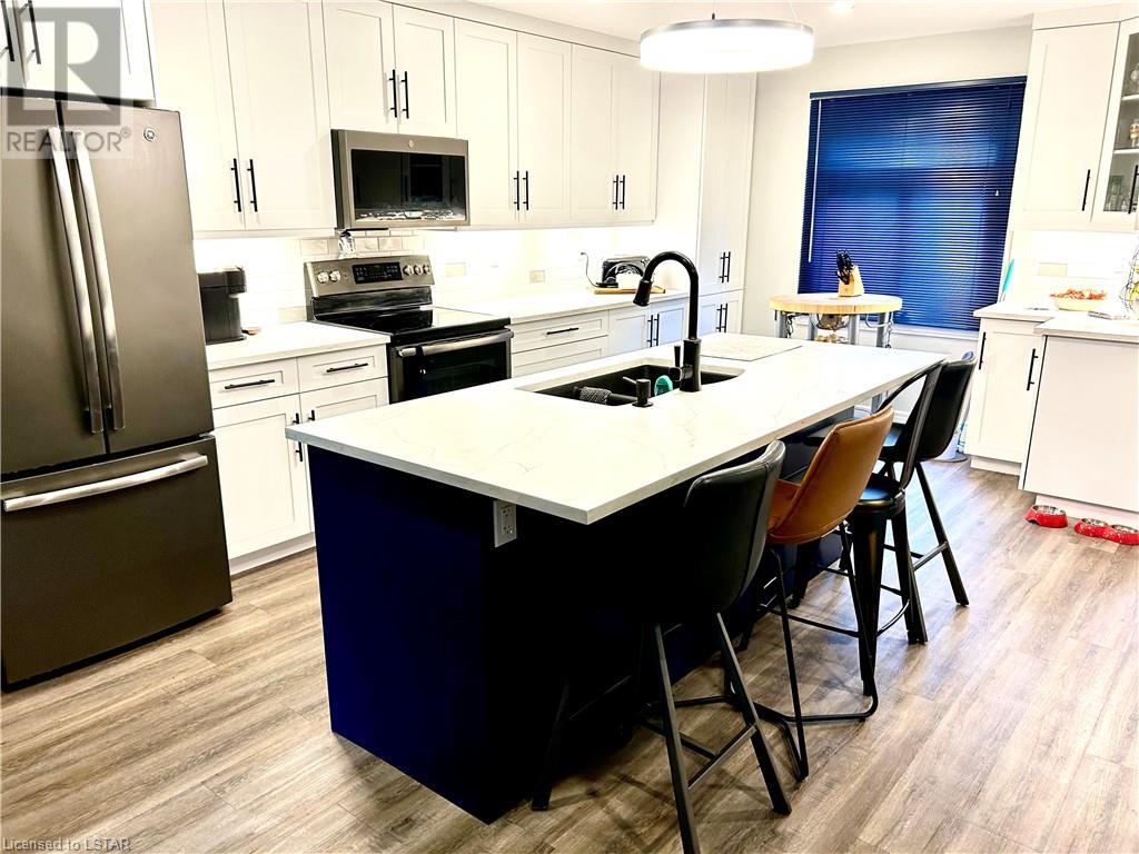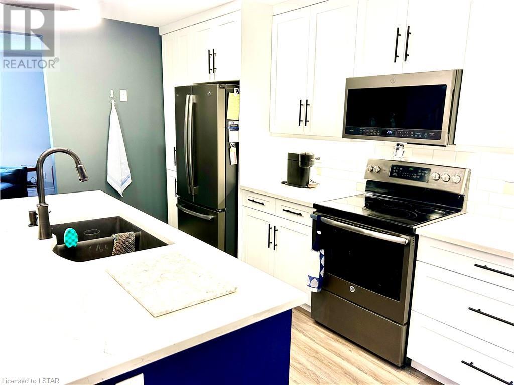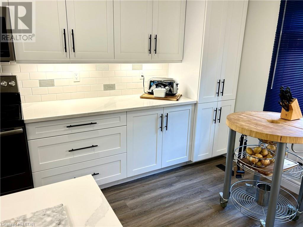 This updated townhouse/condo is situated in the desirable community of Byron and is close to all amenities, including the stunning Springbank Park and the walking/cycling paths that lead throughout London. The house features a large open kitchen with ample cupboard and closet space, a beautiful quartz island with seating for your next gathering, and patio doors that lead to a private outdoor seating area. Upstairs, there are three bedrooms, including a cozy primary bedroom with plenty of closet space. The fully finished basement offers ample storage space. (id:22211)
