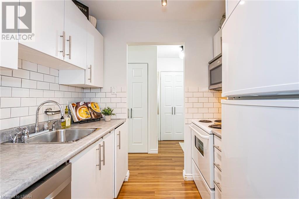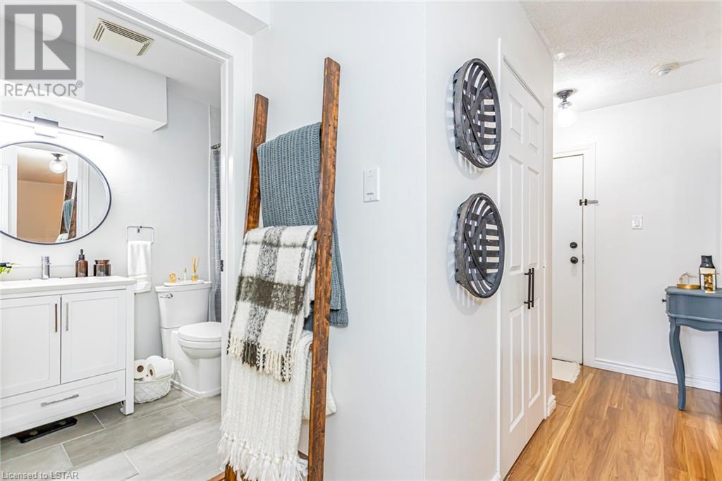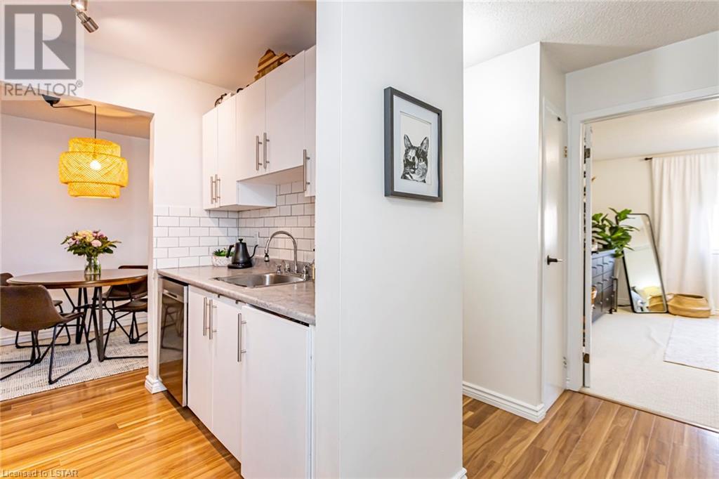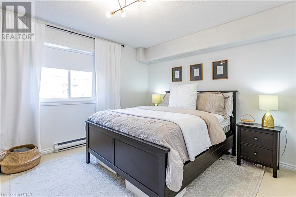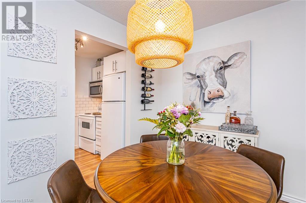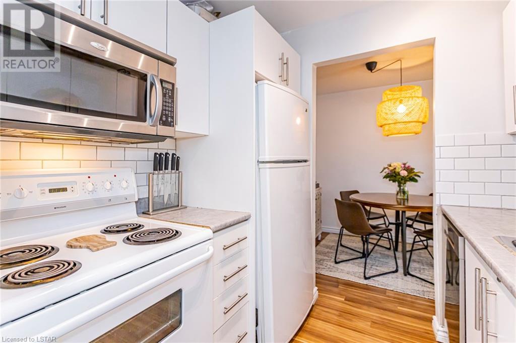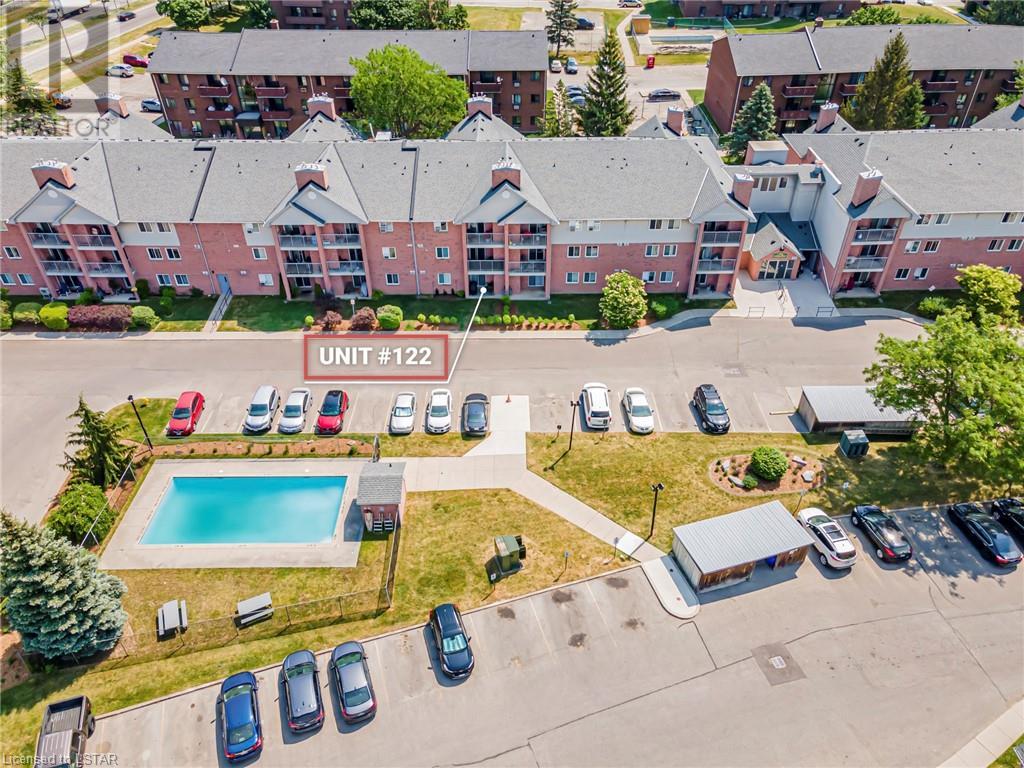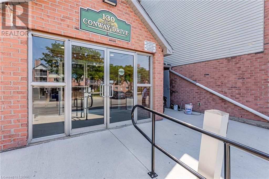 Tired of Renting? Welcome Home to 130 Conway Drive, Unit 122 in lovely South London! This main floor unit is ideal for first-time home buyers looking to enter the market, someone looking for main-floor living and empty nesters alike. This absolutely gorgeous unit provides immense value and must be seen to be truly appreciated. Loaded with upgrades, this home offers a very smart layout and includes an oversized primary bedroom with large wall-to-wall closet with custom shelving, luxurious 4-piece bathroom with new modern vanity, light fixture and ceramic tile flooring and shower with tub. The updated kitchen features newer appliances and countertops, subway tile backsplash and ample cabinet space. The kitchen flows effortlessly into the open-concept living/dining room that is flooded with natural light, gas fireplace with stone surround and sliding doors out to the quaint courtyard patio with fresh landscaping. In-suite laundry and plenty of storage space, as well as a spacious, welcoming front foyer complete this beautiful home. The entire unit has been updated tastefully, including new light fixtures and fresh paint throughout, SS dishwasher, washer/dryer, matte black hardware on doors, vanity and flooring in bathroom - the list goes on! Ideally located just minutes to hospitals, grocery stores, pharmacies, mall and easy highway access. This lovely condo community also offers a large community pool, controlled entry, recently updated foyer and plans for hallway refresher including new paint and flooring. Low condo fee includes water and low taxes! Take a look at what home ownership could look like for you! Full list of updates available. Watch Home Tour Here: https://youtu.be/zRX1NFCfB_U (id:22211)