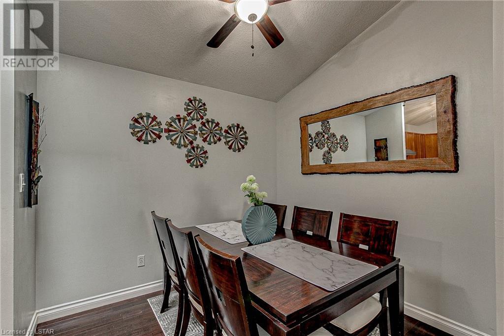 Welcome to this fantastic & nicely maintained family home located in northeast London and sitting on a quiet Crescent! This 4-level backsplit offers plenty of room for growing family with over 1900 Sq Ft of finished living space! The property features 3+1 bedrooms and 2 full bathrooms with great curve appeal and almost carpet free interior. The main floor boasts vaulted ceiling! The walkout basement have potential for in-law suite, 2nd living unit, or home day care Centre. For families with children, this neighbourhood offers great school zones for both public and Catholic schools. If you are into the nature, the Thames River network of trails is just steps from your house. The carpet free main floor boasts bright kitchen with backsplash & stainless steel/black appliances, dining area and living-room with vaulted ceiling. On the 2nd level, you will find the spacious master bedroom with double doors & large closet and two additional good size bedrooms. Finished 3rd levels provide a huge family room for your entertainment and extra space where you can set up your home office. The laundry room is neatly finished with cabinet and sink which provides ample for storage and space for folding your laundry. Stack away anything you don't want right away in the storage - this is definitely an advantage for having spacious home. From the family room, walk out to great size deck (18.5'x16') where you can enjoy your evenings with family & friends in a fully fenced backyard. All five (5) appliances are included in the purchase price. With One (1) garage space & four (4) spots on the driveway, no need to worry about parking when you are having friends or family over for BBQ. Some recent updates include, Shingles (2017), Washer & Dryer (2022) Front door (2020), On demand water heater (rental). Close to most amenities including shopping, restaurants, schools, transit routes, and walking/biking trails. Easy access to airport and major roads/highways. Book your private showing today. (id:22211)