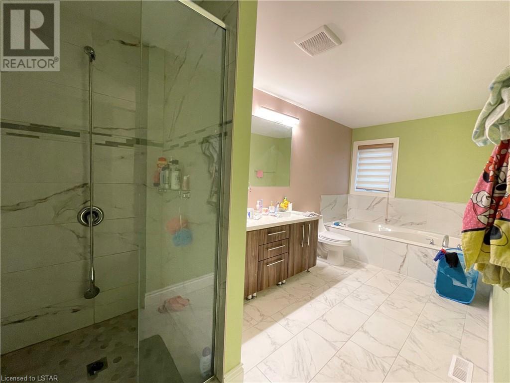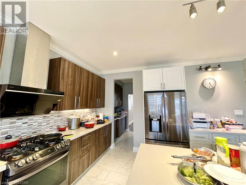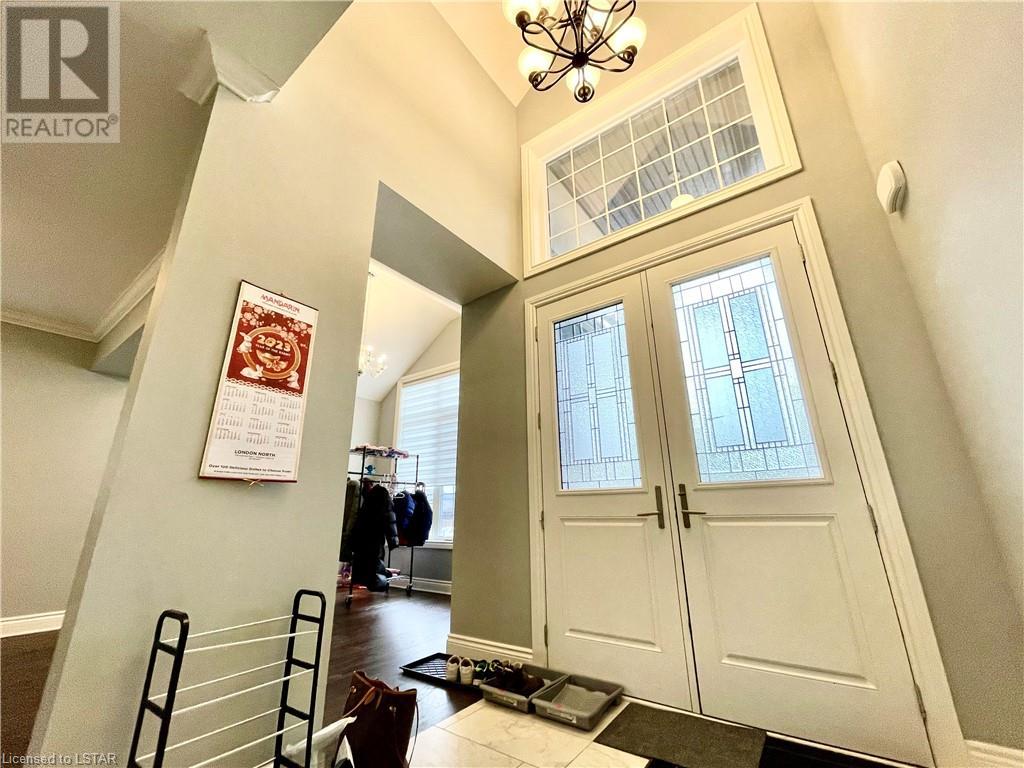 Stunning 4-bedroom & 2.5-bathroom executive in quiet & highly sought North London. Covered enclosed deck overlooking green space , dual vanity, walk-in glass tiled shower and large walk-in closet in master ensuite, open concept main floor with office/den, high-end finishes, 10' ceilings on main & 9' upstairs, quartz countertops in all baths. Open concept design offers a great dining room & south-facing kitchen with quartz countertops, and new appliances including gas burning stove & oven, a strong hood, and an ice-maker fridge. Wet bar beside the kitchen with more storage space. Minutes to the golf course and Masonville Mall. Within the school bus pickup area of AB Lucas SS and CEDAR HOLLOW PS.More bonus: High-speed internet included! Furniture includes 4 mattresses (2 with bed-frame),1 desk set, 3 leather sofas, 1 dining set,1 bookshelf &, etc. 6 closets & 3 built-in cabinet areas. Easy move-in! (id:22211)