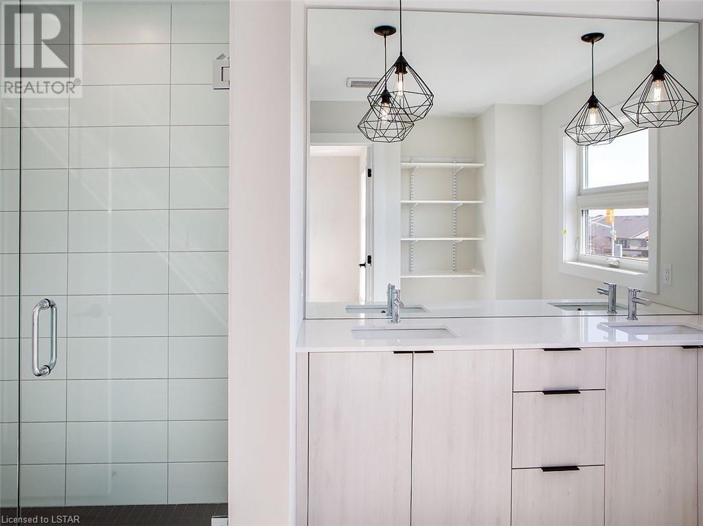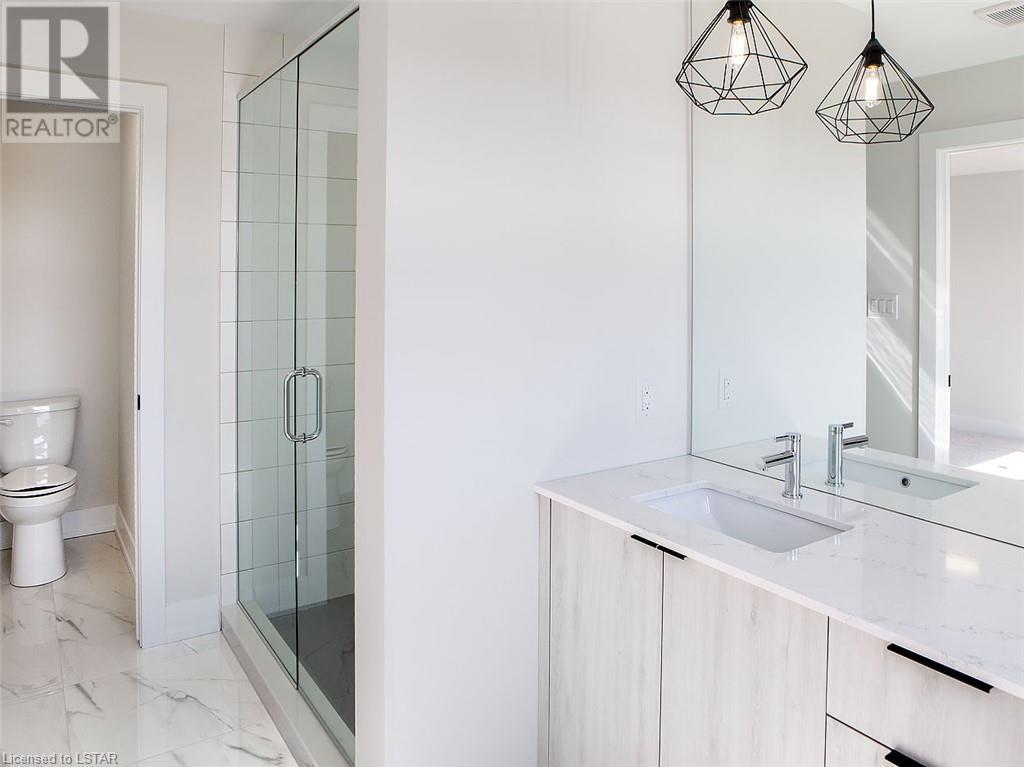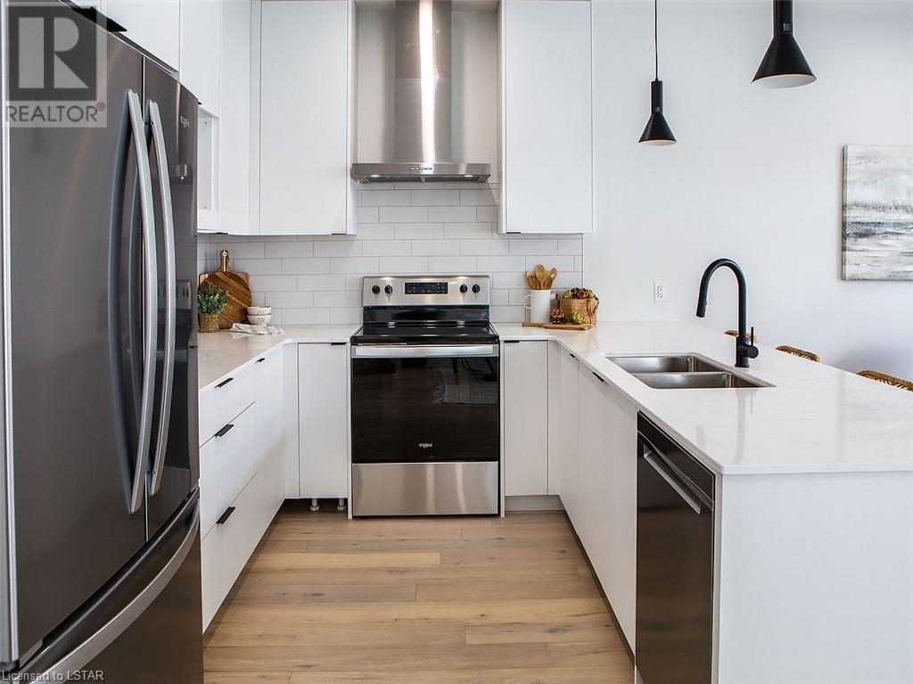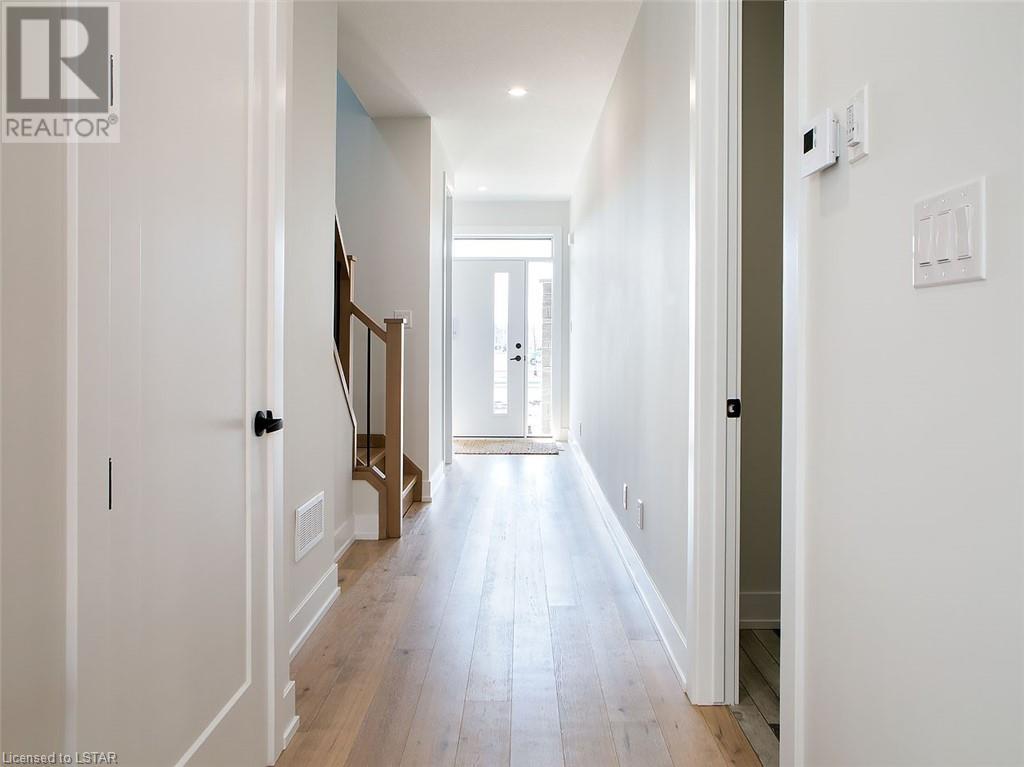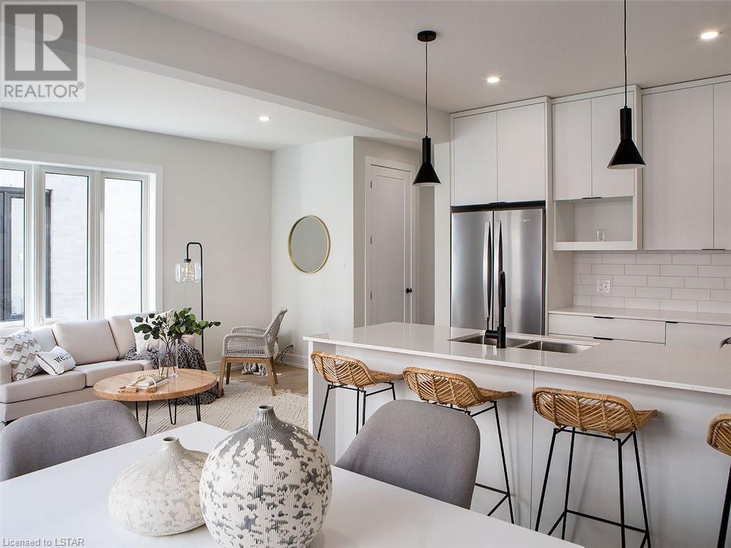 Turn-key condo located in highly desired North West London. This spacious two-storey interior unit features 1590 sqft of modern finished living space, 3 bedrooms and 2.5 bathrooms. Open concept main floor includes 9’ ceiling, 8’ interior doors, engineered hardwood, neutral paint, large windows, pot lights and spacious laundry/mudroom. Beautiful kitchen includes stainless steel appliances, sleek modern cabinetry, Quartz countertops and subway tile backsplash. Sliding patio door provides access to your private rear deck, perfect for entertaining! Wood staircase with metal spindles leading to upper level. Primary suite features large walk-in-closet and ensuite with double sink vanity, Quartz countertops and large glass shower. Unfinished basement is ready for your personal touch! Exterior includes brick and Hardie board material, private paver stone driveway and single car garage with inside entry. Fantastic location close to all North London amenities, restaurants, shopping, parks and trails, golf and schools. Call now for your private viewing! (id:22211)