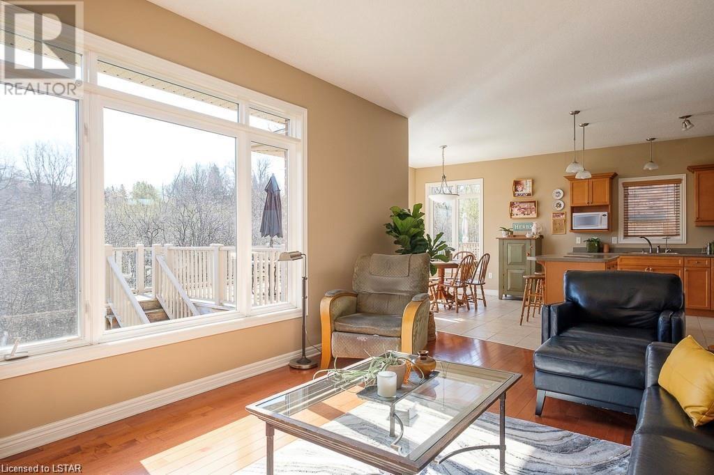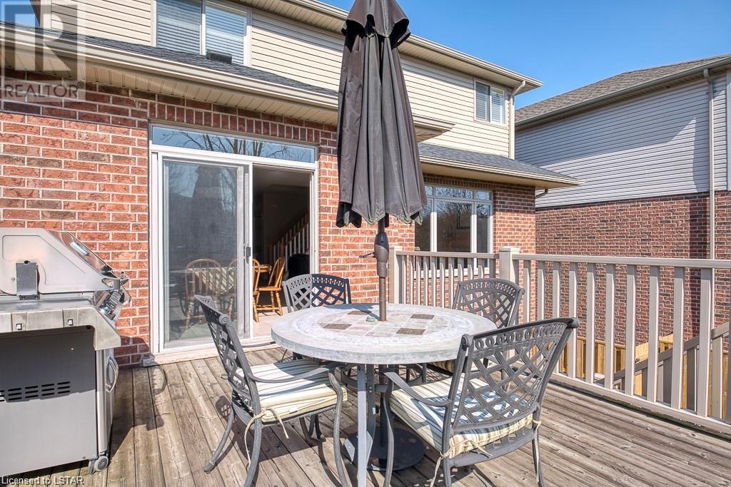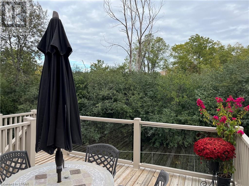 WALK OUT BASEMENT! NORTH LONDON: backing onto wooded ravine in Kilally on the Thames! Executive 3-bedroom home features an open concept eat in kitchen with centre island ,patio doors open to a recently added elevated sun deck with spectacular views of treed ravine! The lower level offers full sized windows and door and a rough in bath making it ideal for a separate in-law suite. Additional features include large master bedroom with double walk-through closets to a 5 pc luxury ensuite, w/ whirlpool tub, separate shower and double sink vanity, gas fireplace in family room, 9 ft ceilings and a good sized double garage! Don’t hesitate, book a showing today! Ravine lot, quiet crescent, move in condition are just a few of the reasons to come see this amazing home. Located in very desirable school district : Northridge P.S and Lucas High school. Water softener, reverse osmosis and charcoal filter all included . (id:22211)