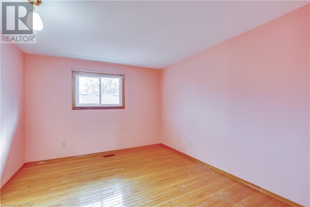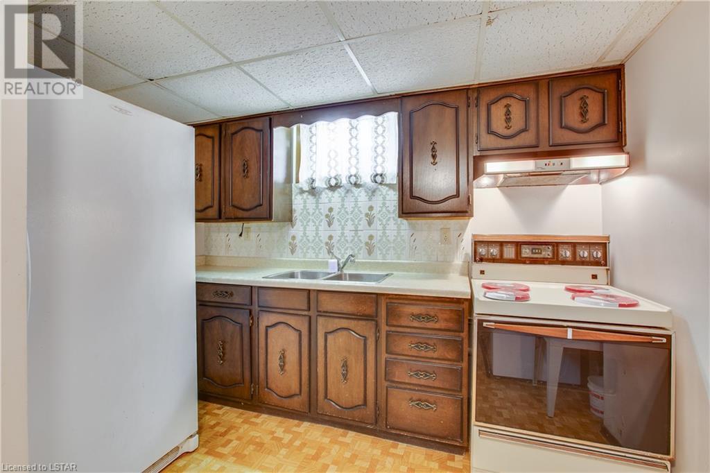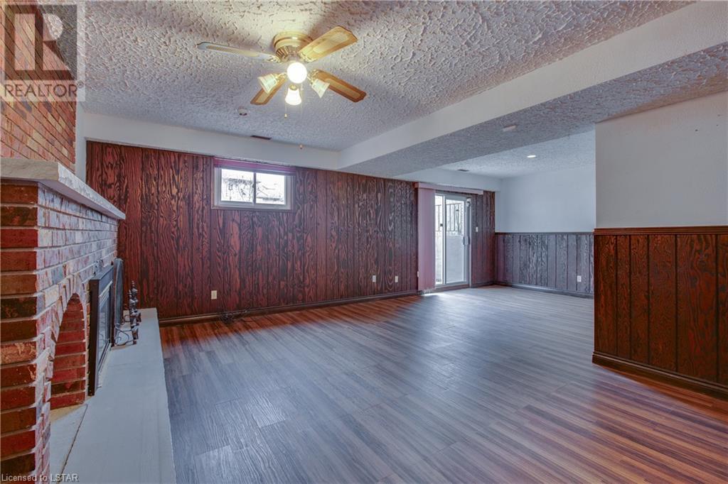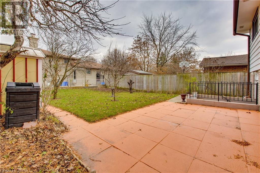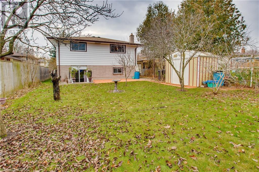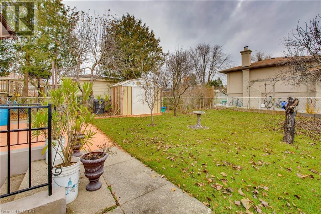 Spacious White Oaks 4-level back-split with 1 car attached garage, featuring 3+1 large bedrooms with hardwood floors, 2 four piece bathrooms, 2 kitchens, formal living room and dining room with hardwood floors, huge family with laminate floor, brick gas fireplace and walk up to rear yard from 3rd level patio door, additional recreation room, cold cellar and laundry area.7 appliances included with a stainless steel fridge and stove in the main kitchen. Updates include roof, furnace/central air, and most windows. Covered 16' x 6'6 front porch, 18' x 12' rear patio, fenced yard and 9'10 x 6'6 shed, 52' x 128' lot. A great home for a large family or in-law setup! Quick closing available. (id:22211)