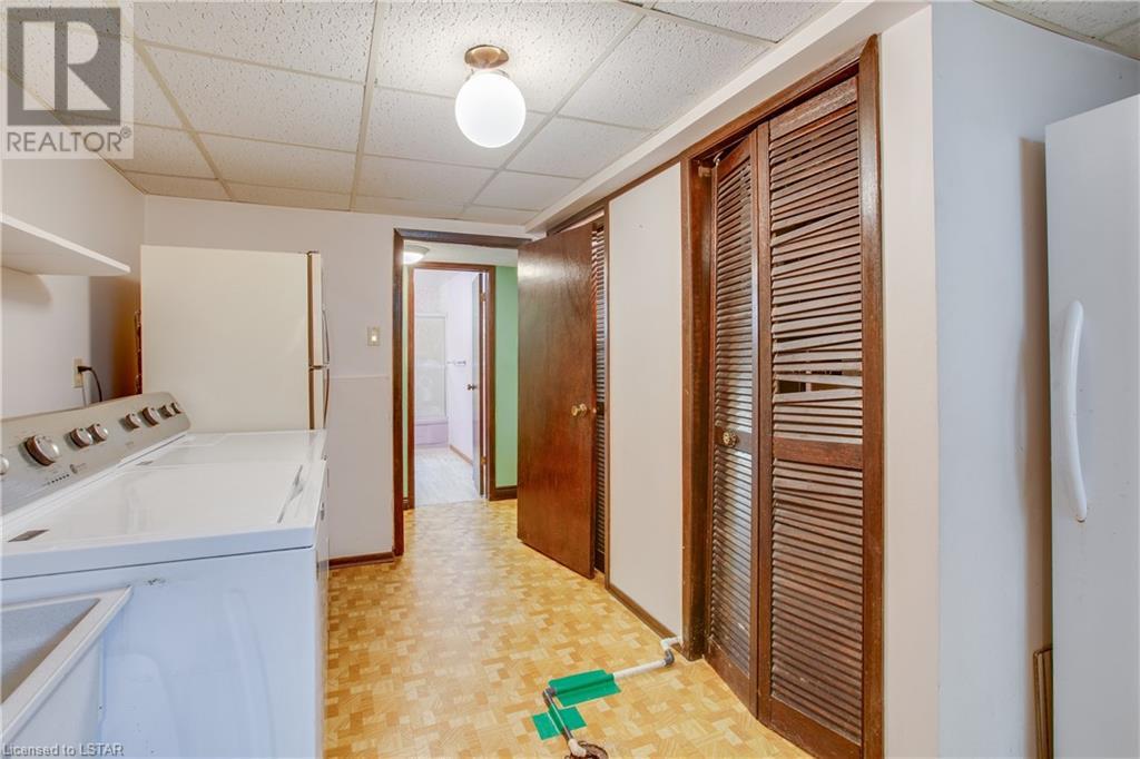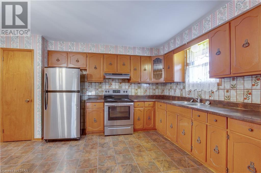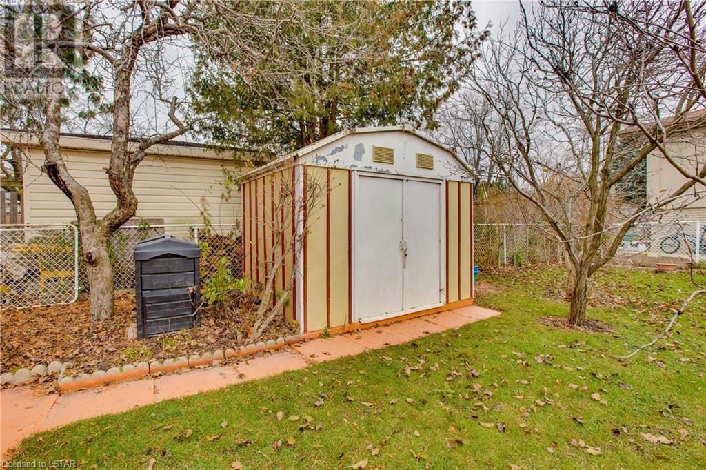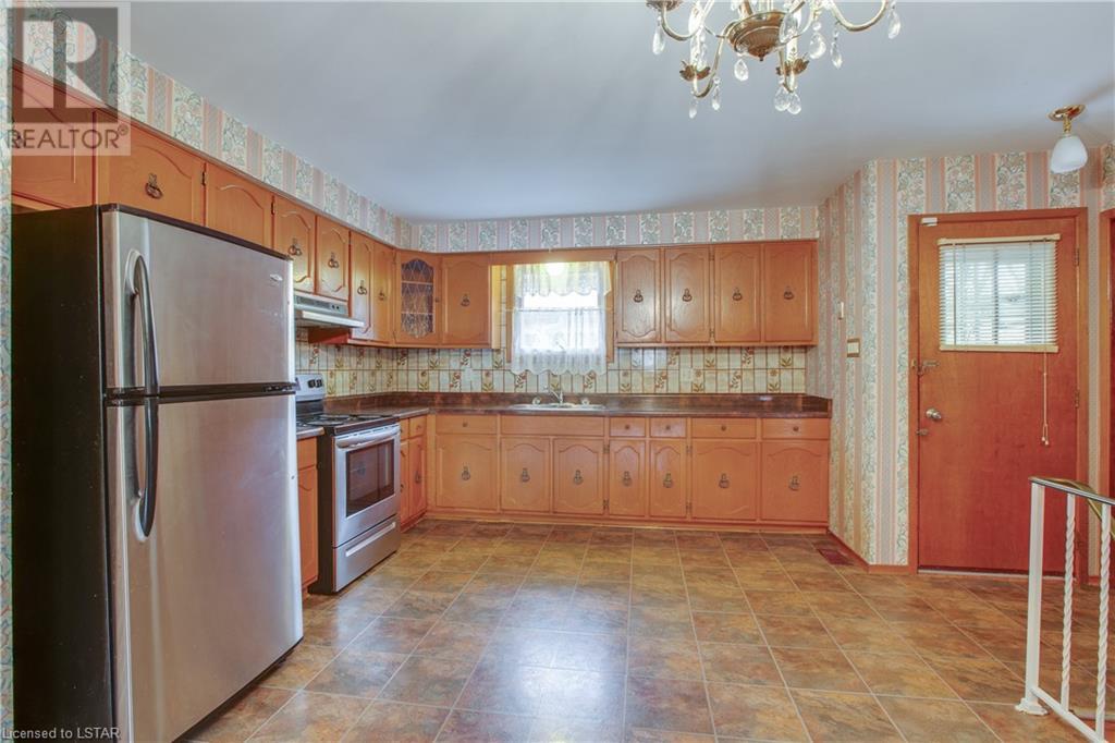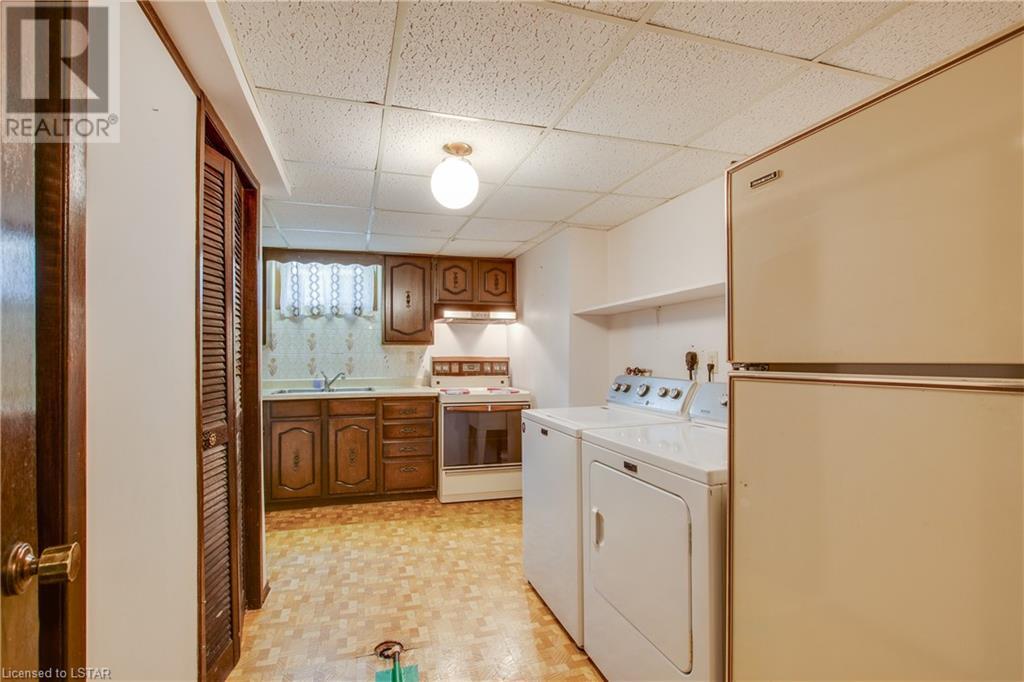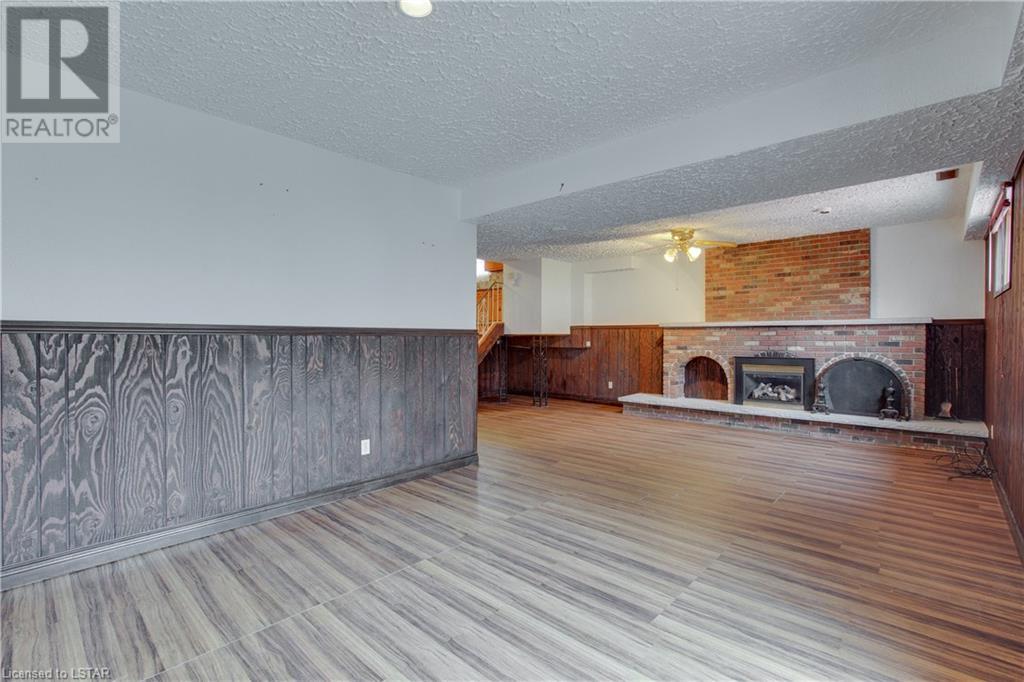 Spacious White Oaks 4-level back-split with 1 car attached garage, featuring 3+1 large bedrooms with hardwood floors, 2 four piece bathrooms, 2 kitchens, formal living room and dining room with hardwood floors, huge family with laminate floor, brick gas fireplace and walk up to rear yard from 3rd level patio door, additional recreation room, cold cellar and laundry area.7 appliances included with a stainless steel fridge and stove in the main kitchen. Updates include roof, furnace/central air, and most windows. Covered 16' x 6'6 front porch, 18' x 12' rear patio, fenced yard and 9'10 x 6'6 shed, 52' x 128' lot. A great home for a large family or in-law setup! Quick closing available. (id:22211)
