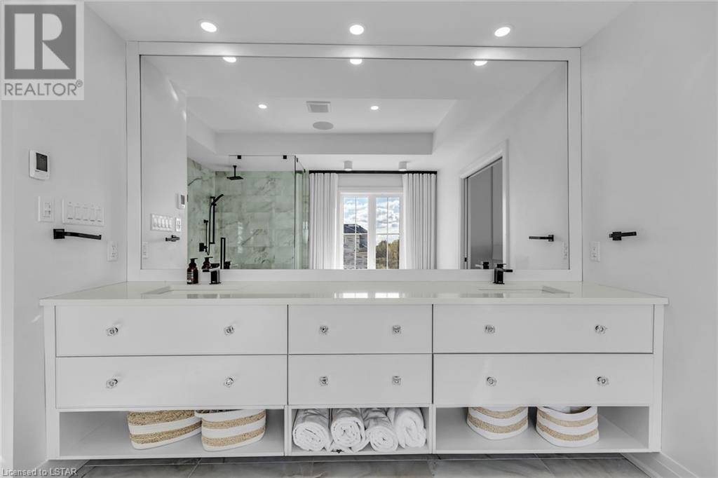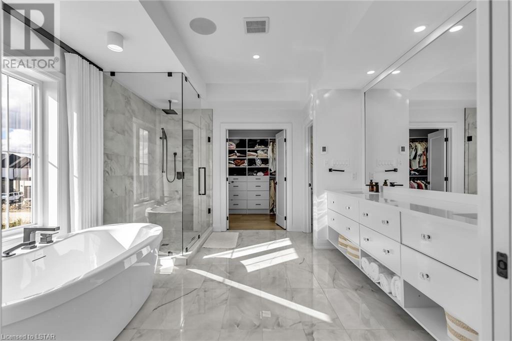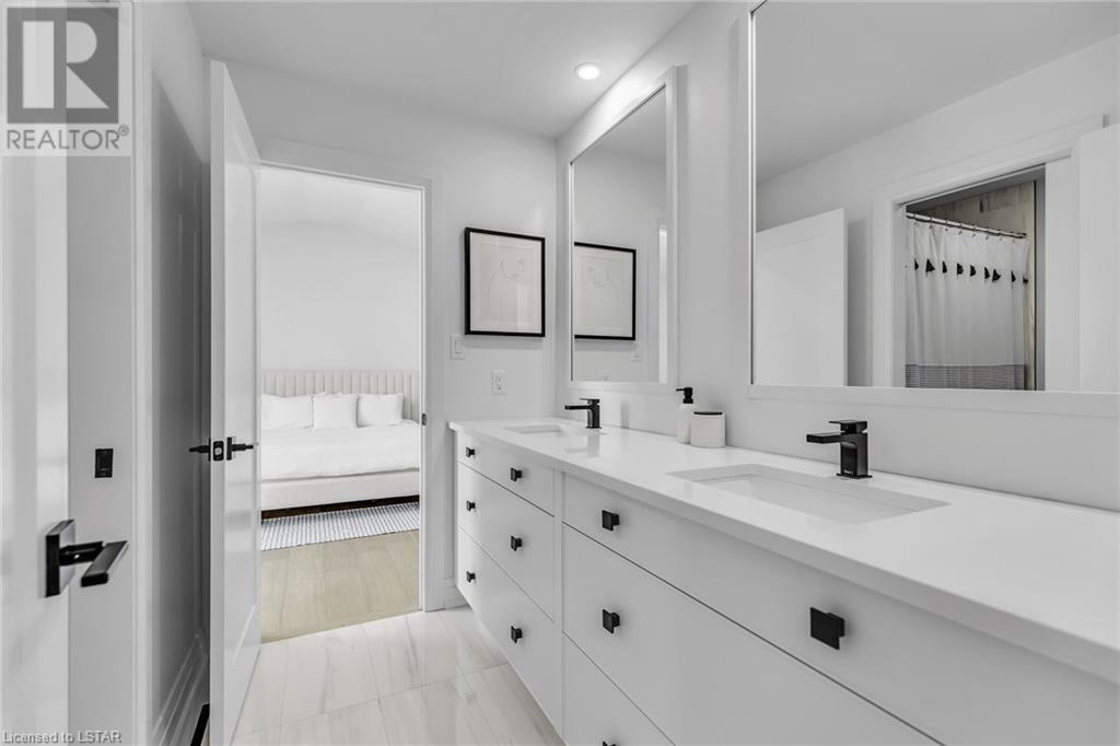 Welcome to this exquisite 4+1 bedroom residence, a testament to timeless elegance and modern luxury. With its classic design and meticulous attention to detail, this home exudes an aura of sophistication from the moment you arrive. The expansive, light-filled living spaces are adorned with large windows that frame picturesque views, infusing every room with natural radiance. The open-concept layout seamlessly blends functionality with aesthetics, creating a space that is both inviting and perfect for entertaining. Greeted by soaring high ceilings, the grandeur of this home is immediately apparent. The sense of airiness and openness elevates the overall ambiance, allowing for a true sense of freedom and comfort. The heart of this home is undoubtedly the chef's kitchen, replete with top-of-the-line appliances, premium finishes, and an island that invites gathering and culinary creativity. Whether preparing a casual family meal or hosting a lavish dinner party, this space caters to every occasion. The second level features four generously-sized bedrooms, each designed with impeccable taste and featuring ample storage. The master suite is a sanctuary unto itself, boasting a spa-like ensuite bath and a walk-in closet fit for a connoisseur of fashion. Two other bedrooms enjoy Jack and Jill ensuite access and a third, full bath on the second floor ensures everyone is covered! The double-car garage offers both convenience and security, ensuring your vehicles are sheltered in style. Situated in a desirable location in southwest London, this home is nestled within a community that embodies luxury living at its finest. Experience the pinnacle of refined living in this spectacular family home. Step into a world where comfort, elegance, and sophistication converge seamlessly. Your dream home awaits. (id:22211)