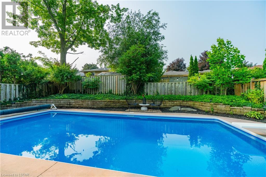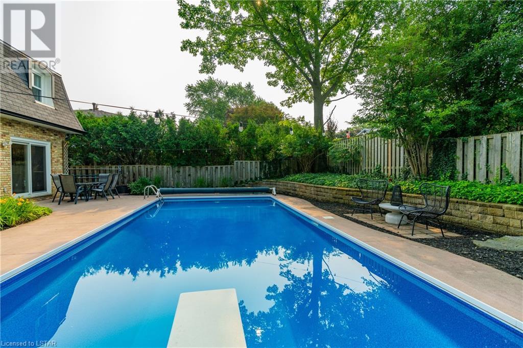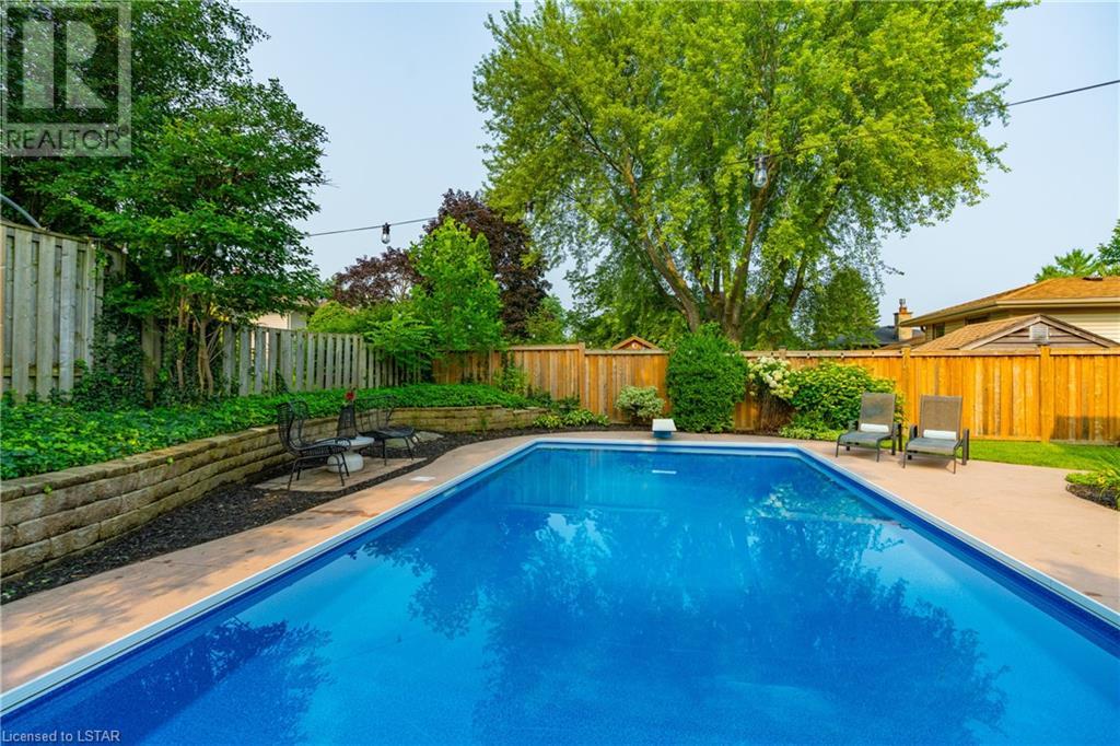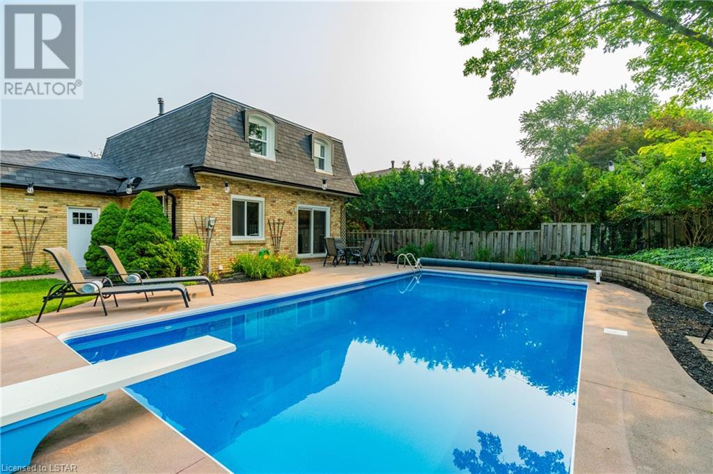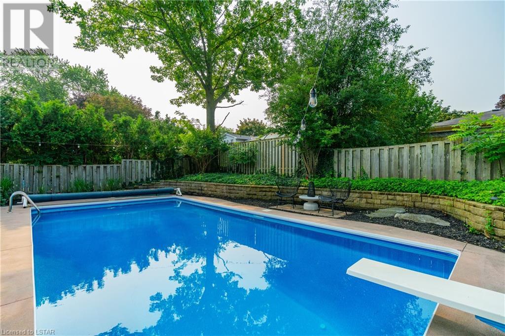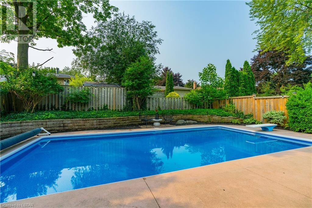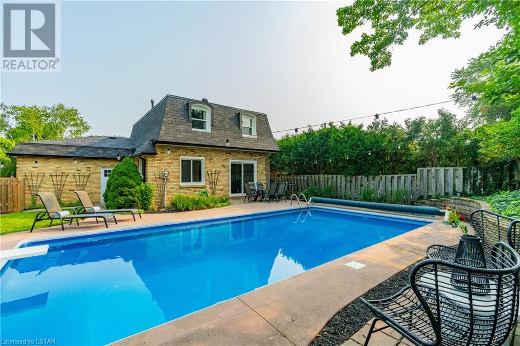 With its small town feel and strong sense of community, Byron is the perfect neighbourhood to call home. This recently updated 2 storey home is located on a quiet tree lined street, within walking distance to Springbank Park, Boler Mountain and the best schools the city has to offer. Although it's already located near some fantastic recreation amenities, you don't have to go far to enjoy the beautiful outdoors in your very own backyard oasis! The beautifully landscaped private yard features a heated, in-ground salt water pool with new liner, filter, heater and salt chlorine generator. On the main level you will find a spacious living room, open to an eat-in kitchen/dining room with solid maple cabinets, white quarts countertops and gleaming bamboo flooring. Upstairs features 3 bedrooms with a generous primary including wall-to-wall closets plus a walk-in for all the extras. Updated primary 4 piece bathroom includes a deep soaker tub and a great linen closet in the hall. Lower level is finished with a 27x11 recreation room, perfect for entertaining or movie night. Loads of storage space in the utility/laundry room with space for another bathroom if desired. Updates in the last 2 years also include insulated garage door (with opener), furnace humidifier, upgraded insulation in attic, all new windows (excluding basement), eaves, fascia, gutters including gutter block, both bathrooms renovated, BBQ gas line, new appliances. Don't miss this great opportunity to own in Byron! (id:22211)