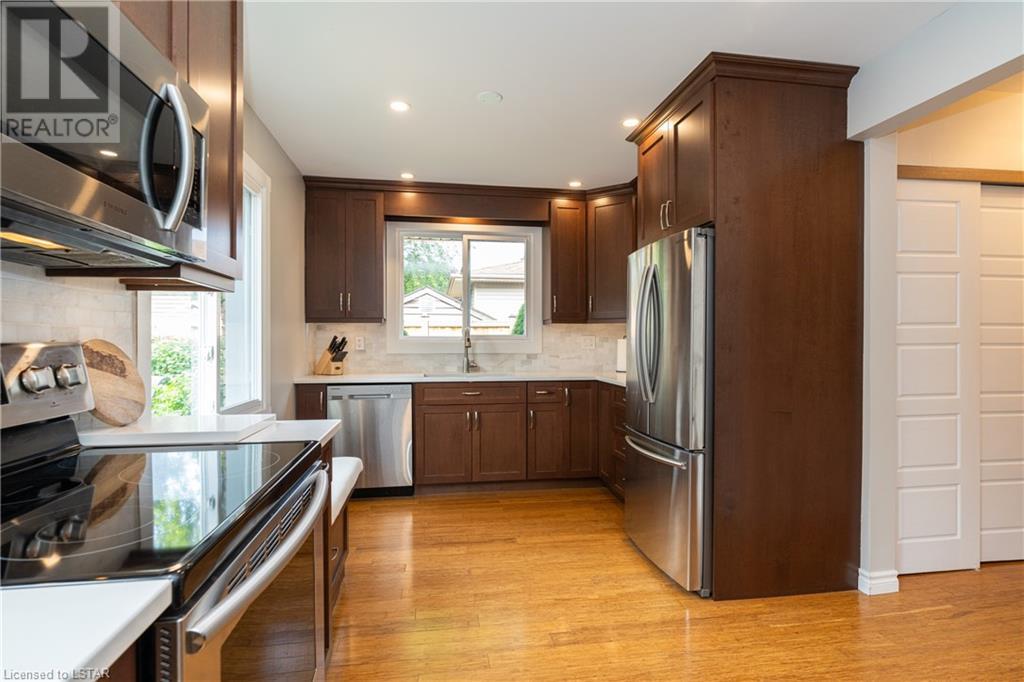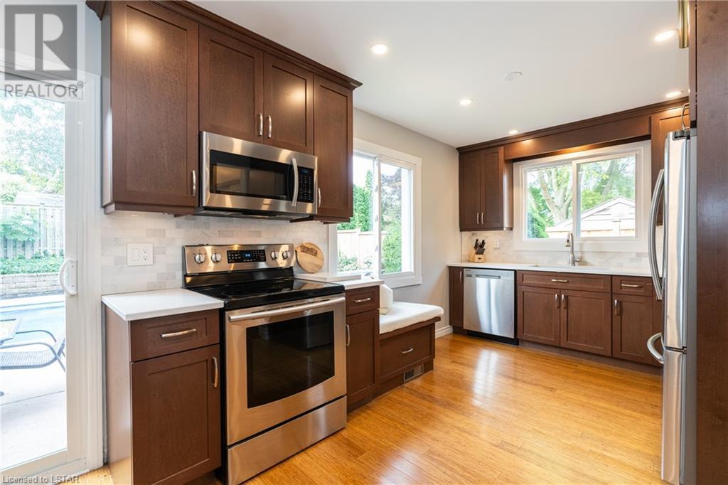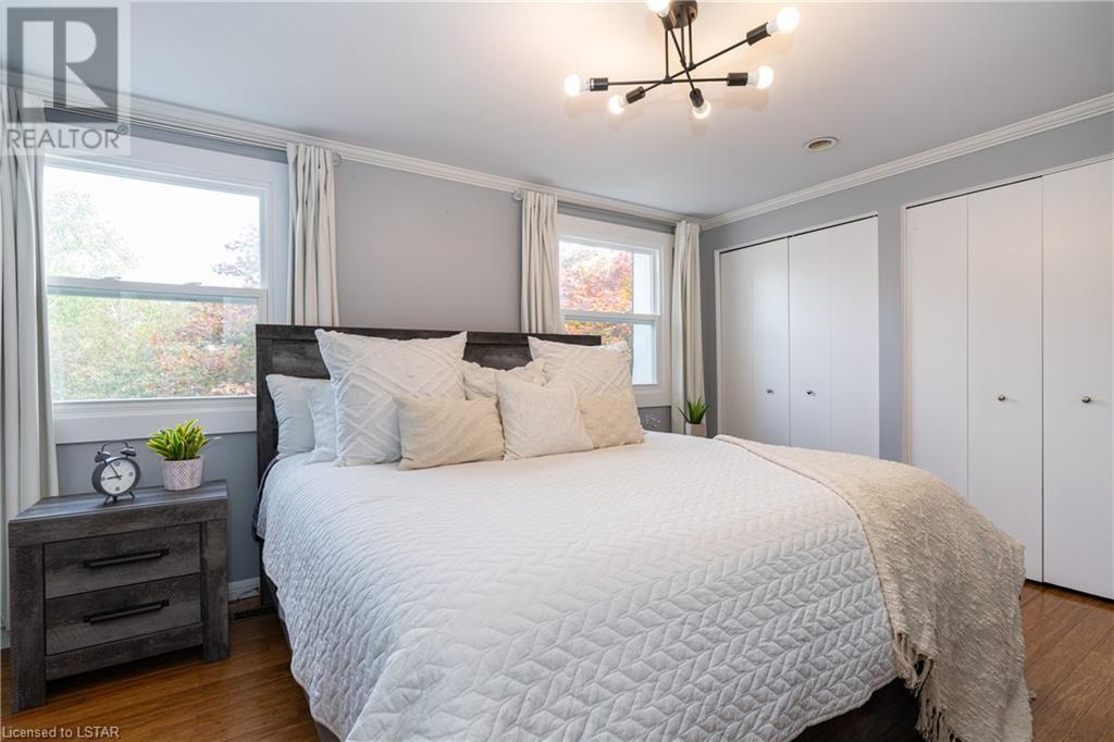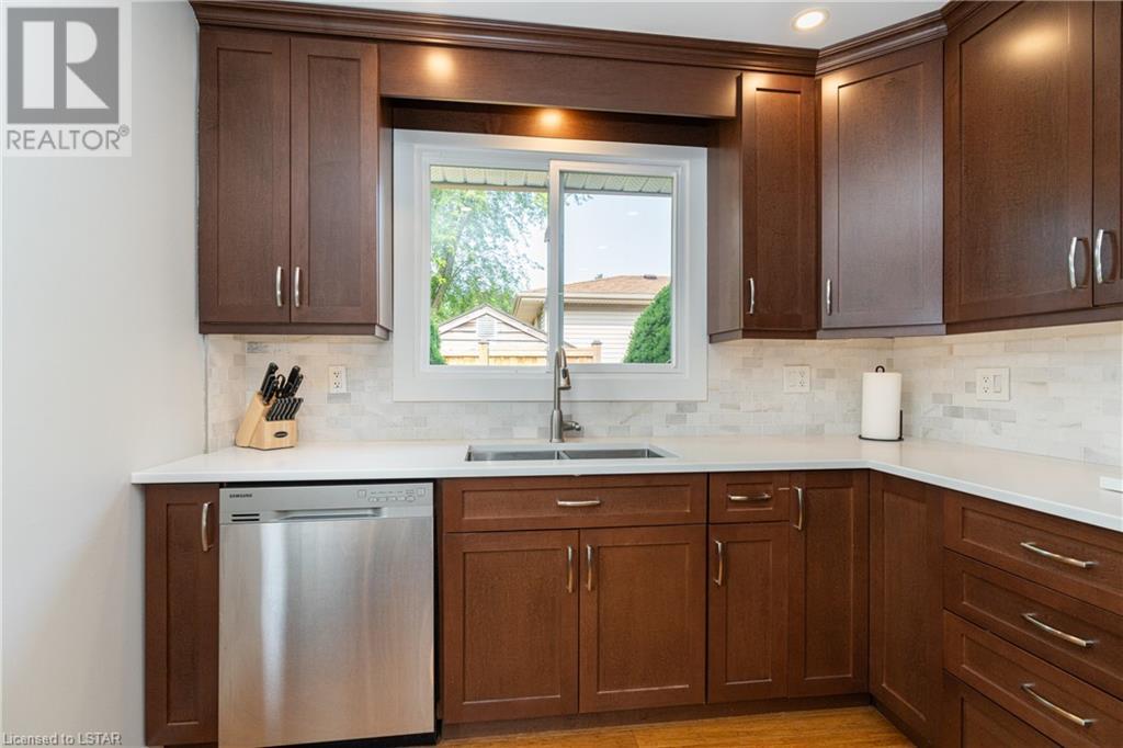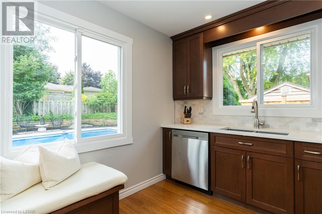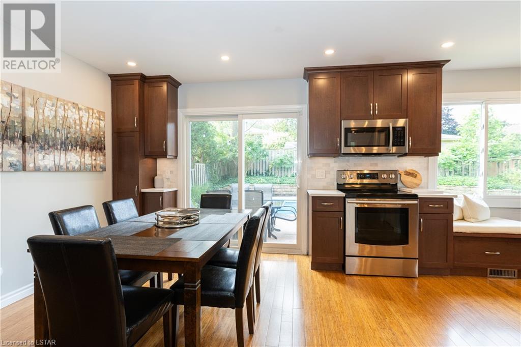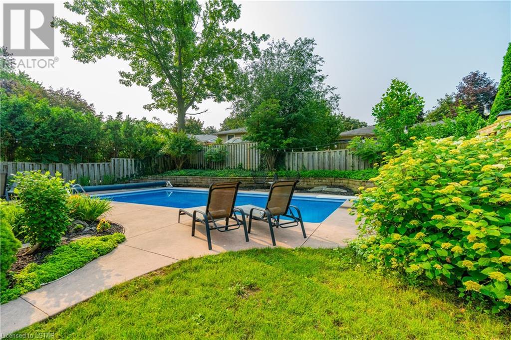 With its small town feel and strong sense of community, Byron is the perfect neighbourhood to call home. This recently updated 2 storey home is located on a quiet tree lined street, within walking distance to Springbank Park, Boler Mountain and the best schools the city has to offer. Although it's already located near some fantastic recreation amenities, you don't have to go far to enjoy the beautiful outdoors in your very own backyard oasis! The beautifully landscaped private yard features a heated, in-ground salt water pool with new liner, filter, heater and salt chlorine generator. On the main level you will find a spacious living room, open to an eat-in kitchen/dining room with solid maple cabinets, white quarts countertops and gleaming bamboo flooring. Upstairs features 3 bedrooms with a generous primary including wall-to-wall closets plus a walk-in for all the extras. Updated primary 4 piece bathroom includes a deep soaker tub and a great linen closet in the hall. Lower level is finished with a 27x11 recreation room, perfect for entertaining or movie night. Loads of storage space in the utility/laundry room with space for another bathroom if desired. Updates in the last 2 years also include insulated garage door (with opener), furnace humidifier, upgraded insulation in attic, all new windows (excluding basement), eaves, fascia, gutters including gutter block, both bathrooms renovated, BBQ gas line, new appliances. Don't miss this great opportunity to own in Byron! (id:22211)
