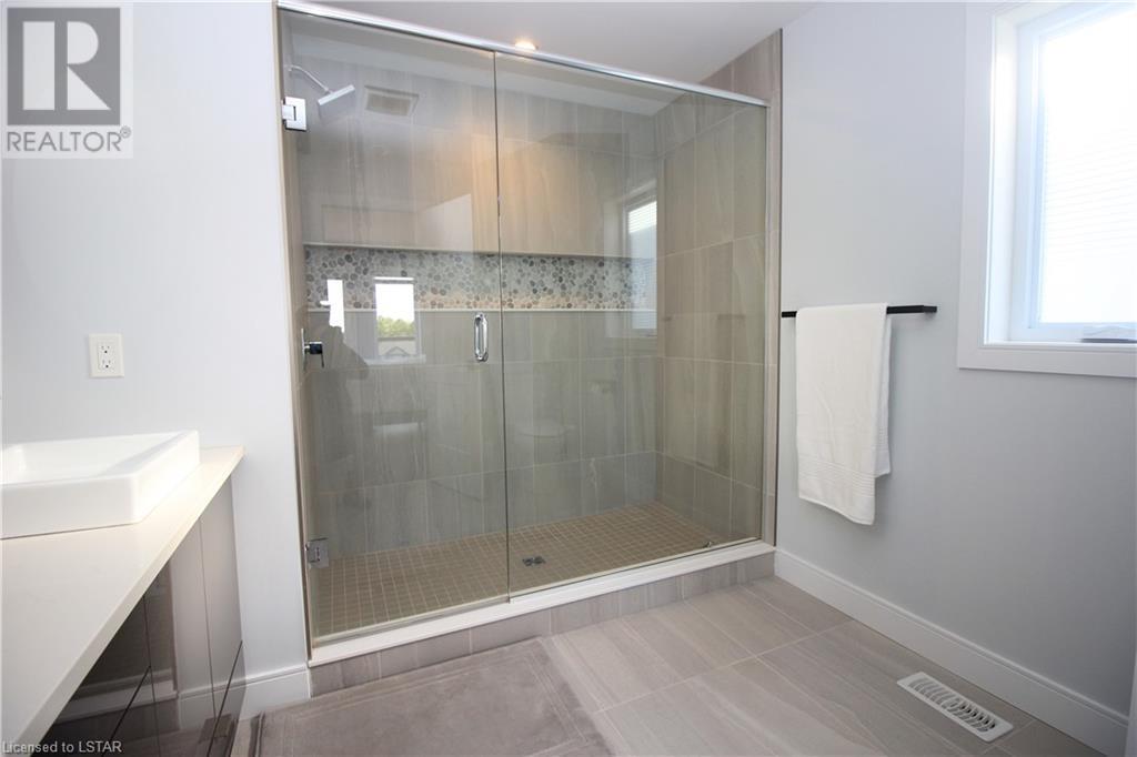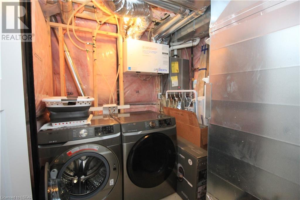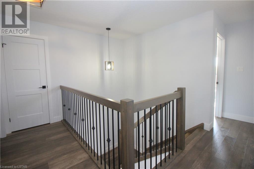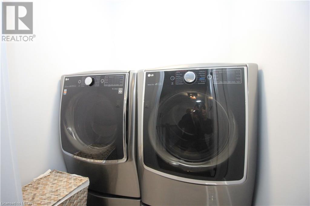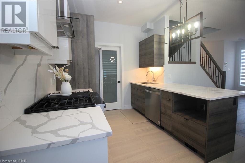 This beautiful modern design home, built by Patrick Hazzard Custom Homes Inc. in the desirable Uplands North of London on a Look out lot. Fully finished from top to bottom, featuring 2,295 sf in 3 levels. Double car garage, open concept, 9’ ceilings in main floor, kitchen with upgraded quartz counter top and back splash, sweep kick, gas stove & big size pantry (8’ x 4’).Upper level features: laundry, 3 spacious bedrooms & two full bathrooms. Large master bedroom with walk-in closet, 18’ x 6’ balcony with glass railing and glass tiled shower & double sink in ensuite bathroom. Lower level granny suite includes: kitchen with stove, microwave fan, fridge, dishwasher, one bedroom, full bathroom, rec room and laundry with gas dryer. Engineered hardwood flooring on main floor & upper level, tile on bathrooms and laundry& water proof vinyl flooring in lower level. Quartz in kitchens and all bathrooms. Paver stone driveway and sod to be installed during 2022 by builder. Central Vac rough-in to garage, Side door in garage, On Demand rental water heater. This vacant land has $65 monthly fee for private road maintenance. Great location close to Masonville, Western University, YMCA, parks and more amenities. (id:22211)
