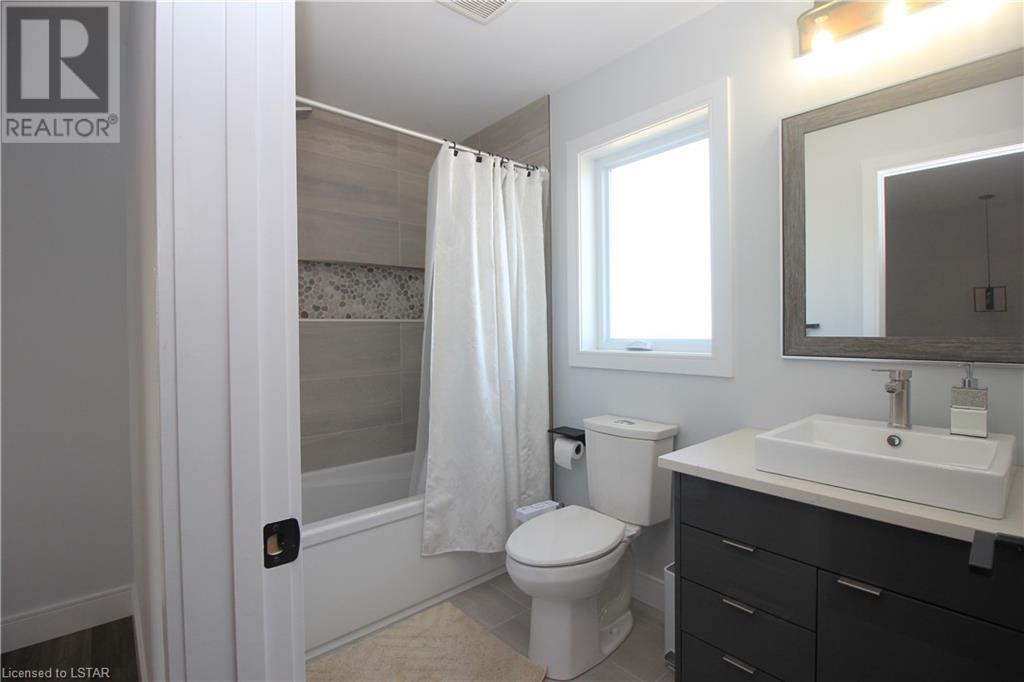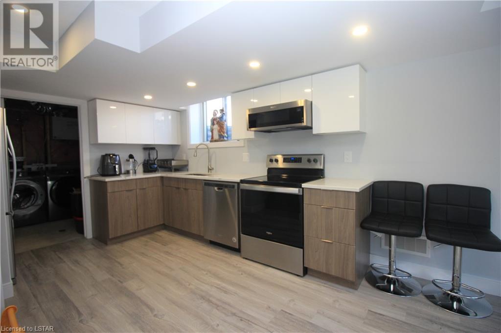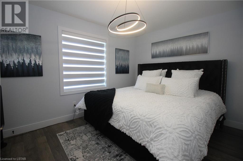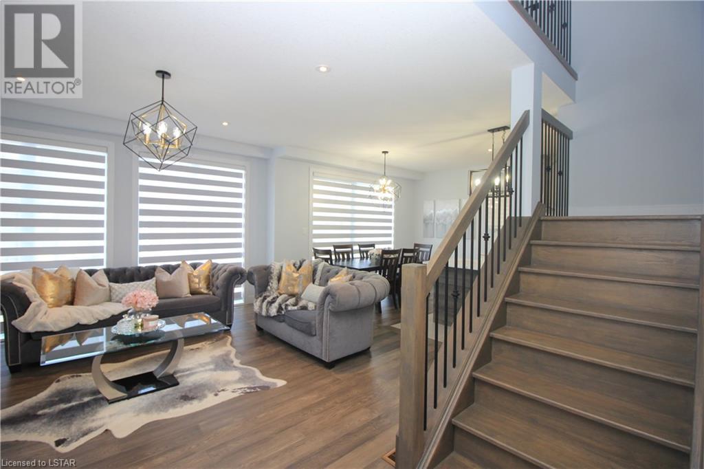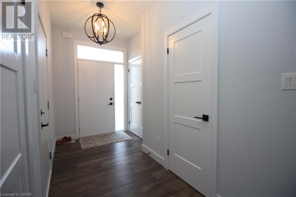 This beautiful modern design home, built by Patrick Hazzard Custom Homes Inc. in the desirable Uplands North of London on a Look out lot. Fully finished from top to bottom, featuring 2,295 sf in 3 levels. Double car garage, open concept, 9’ ceilings in main floor, kitchen with upgraded quartz counter top and back splash, sweep kick, gas stove & big size pantry (8’ x 4’).Upper level features: laundry, 3 spacious bedrooms & two full bathrooms. Large master bedroom with walk-in closet, 18’ x 6’ balcony with glass railing and glass tiled shower & double sink in ensuite bathroom. Lower level granny suite includes: kitchen with stove, microwave fan, fridge, dishwasher, one bedroom, full bathroom, rec room and laundry with gas dryer. Engineered hardwood flooring on main floor & upper level, tile on bathrooms and laundry& water proof vinyl flooring in lower level. Quartz in kitchens and all bathrooms. Paver stone driveway and sod to be installed during 2022 by builder. Central Vac rough-in to garage, Side door in garage, On Demand rental water heater. This vacant land has $65 monthly fee for private road maintenance. Great location close to Masonville, Western University, YMCA, parks and more amenities. (id:22211)