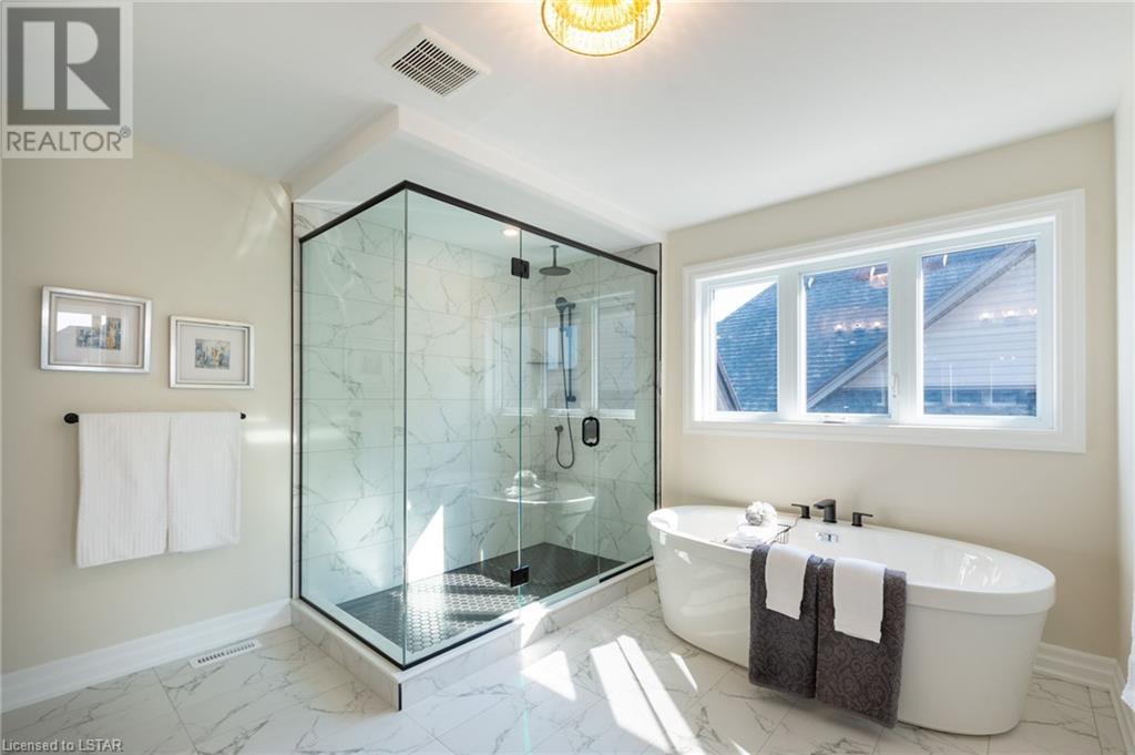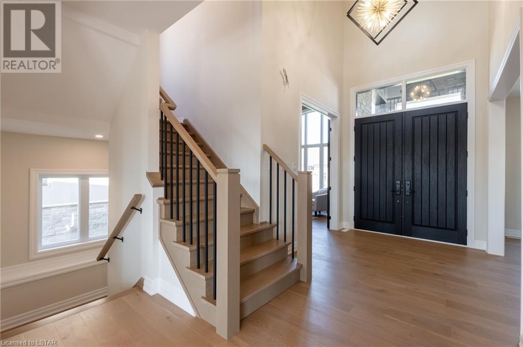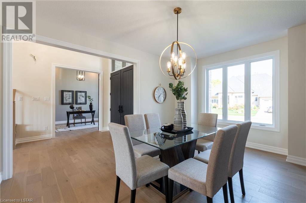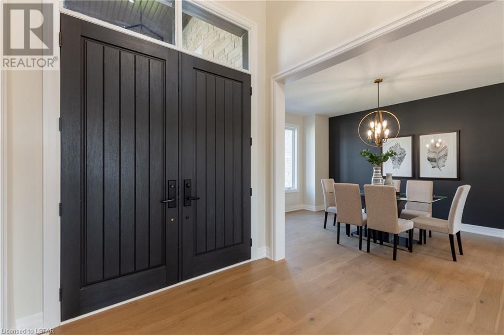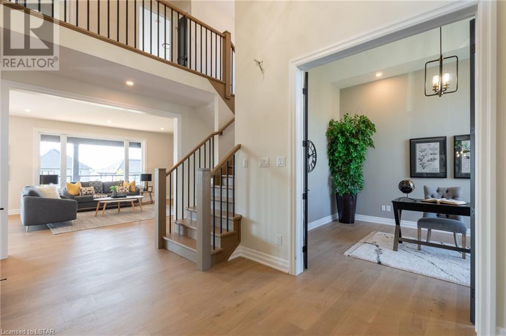 BRAND NEW WALK OUT LOT FAMILY HOME! CAROLINA HOMES proudly presents this new custom 4 bedroom family home on a rare walk out lot. Located in prestigious Warbler Woods. Enter this home thru the grand 2 door entranceway. Notice the rich hardwoods on main level, stairs and upper hall and Primary suite. To your right is the main floor den boasting 11ft high ceilings and oversized windows. To the left is the formal dining room - perfect for entertaining with serving bar included! Luxury designer kitchen with breakfast bar island, walk in pantry (appliances included) and sunny bright eating area leading off to large covered deck open to beautiful Great room with gas fireplace. Main floor laundry is spacious and boast quality built-in cabinets and front loading appliances. Upper level features 4 large bedrooms. Primary bedroom is large with stepped ceiling, pot lights, 2 walk in closets and in quality engineered floors with a spa like 5pc ensuite with over sized glass shower and large soaker tub. Enjoy 3 more additional bedrooms with the kids main bath also has 5pc bath. Note - vaulted ceilings in front bedrooms. Lots of potential for the lower level - with oversized windows and patio doors to ground level of lot - ready for your finishing touches - AMAZING potential here! 7 Year Tarion warranty included. All located on a pool sized fenced lot (easily closed in on sides) (id:22211)