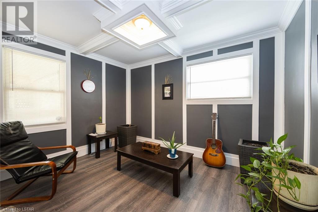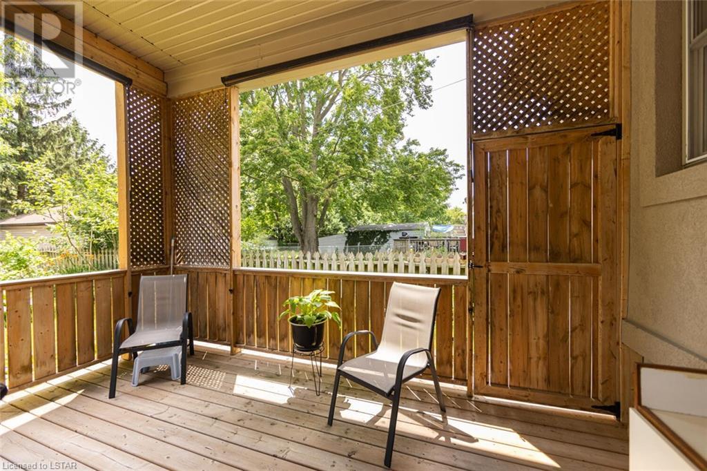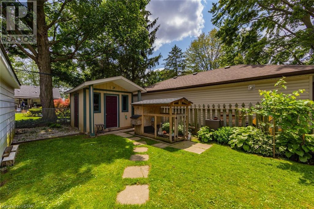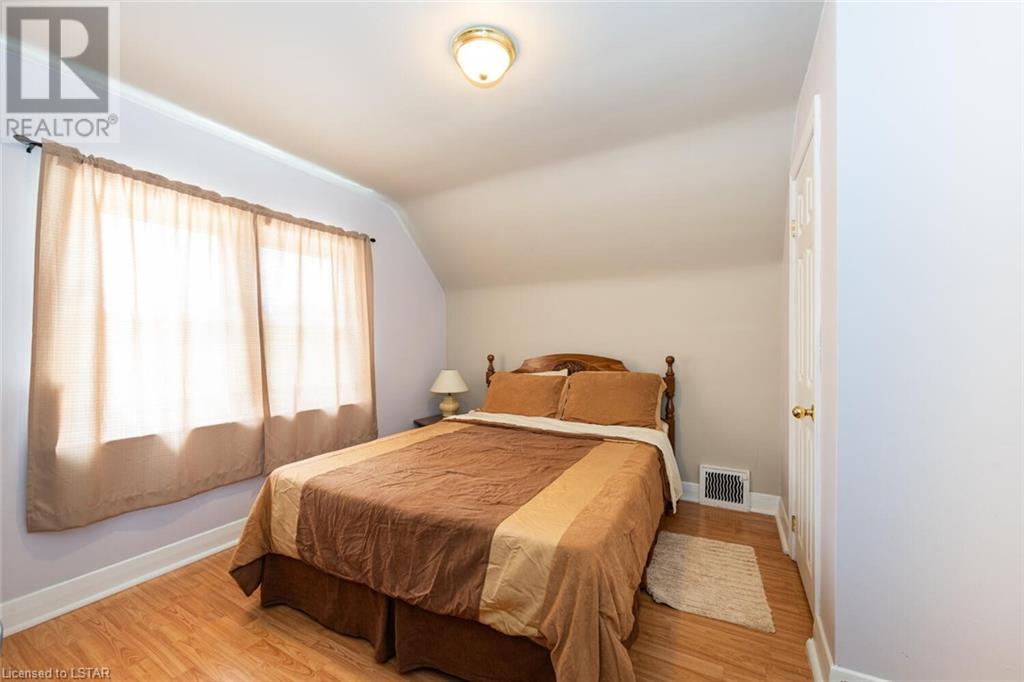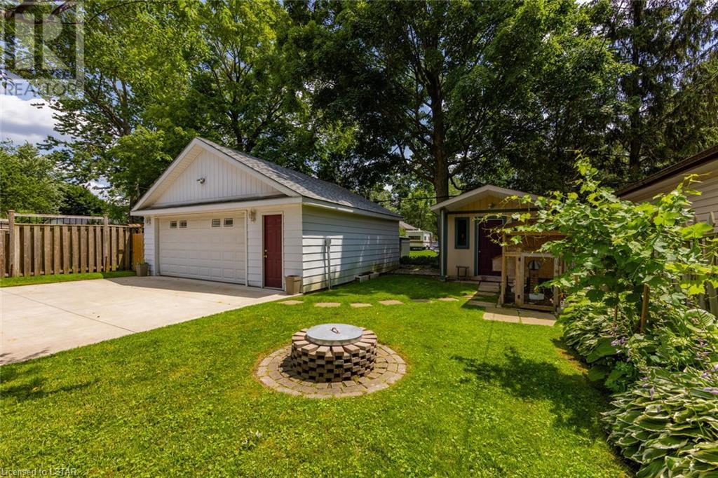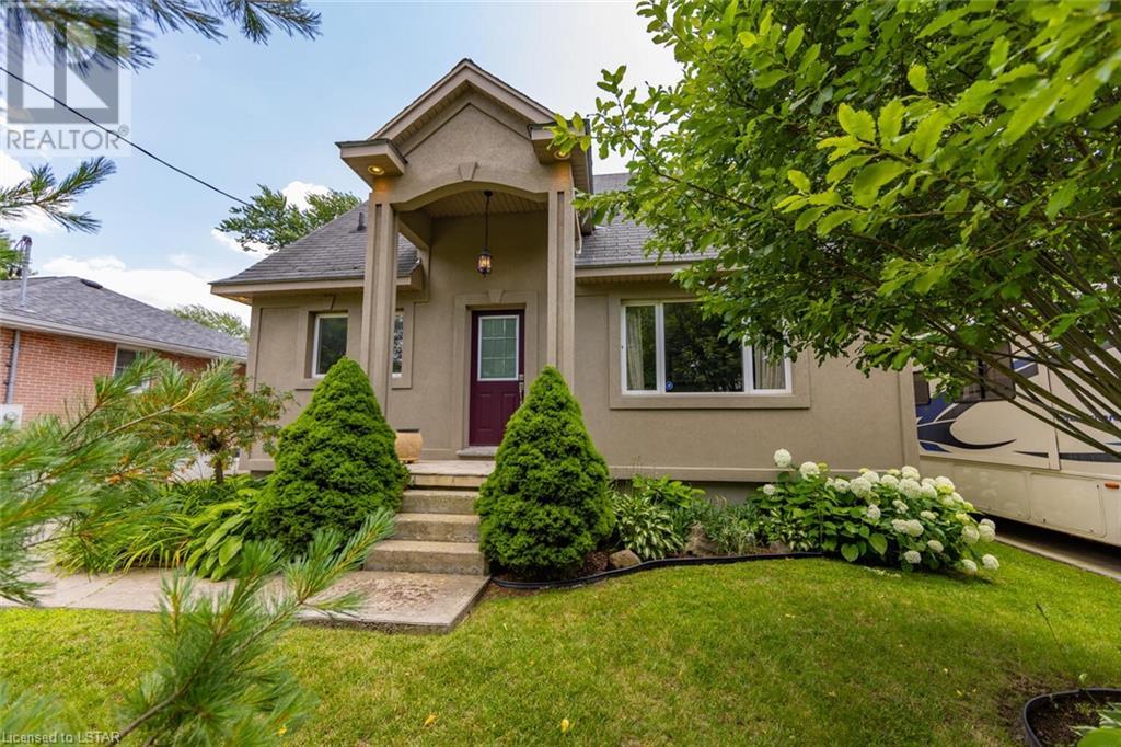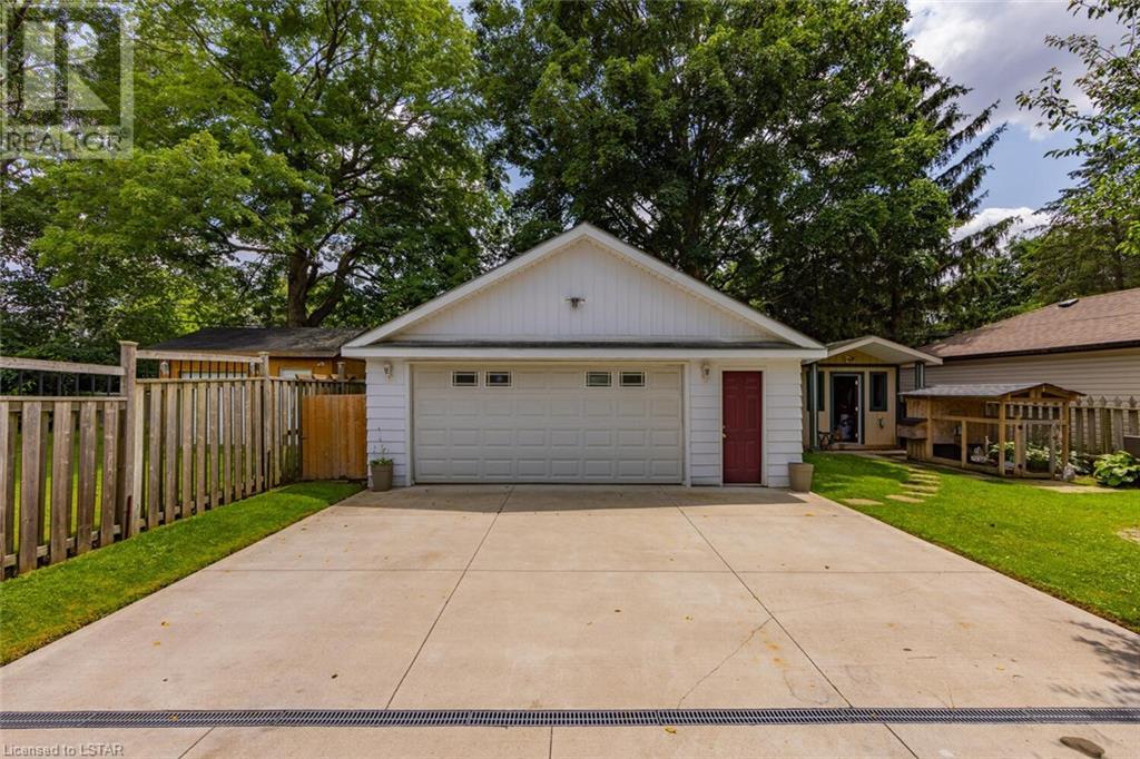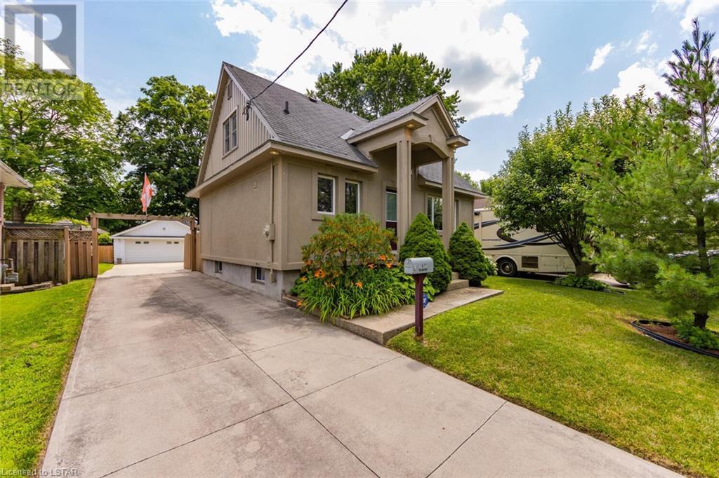 Immaculate Home on a quiet street in a mature East London neighbourhood. This 1.5 storey home has been meticulously maintained and offers 3 Bedrooms, a 4pc main Bath and a detached 2 car Garage. The beautiful, open concept main floor has a spacious Kitchen with a large Dining Area. The bright Livingroom has a modern electric fireplace and large picture window. Main floor bedroom is currently being used as an office space and offer contemporary design style. Also located on the main floor is the 4 pc main Bathroom. The Upper level has two great sized bedrooms and convenient storage space. Lower level is partially finished and includes a Den, home Gym, Kitchenette and Laundry Room. The fantastic back yard has a huge covered deck with ceiling fan, perfect for relaxing, surrounded by the mature gardens. The detached garage makes the perfect workshop! Additional shed that offers even more storage Walking distance to all amenities including grocery, shops, restaurants, schools and more! Close to public transit. Easy access to the 401 highway and minutes to the London Airport. (id:22211)