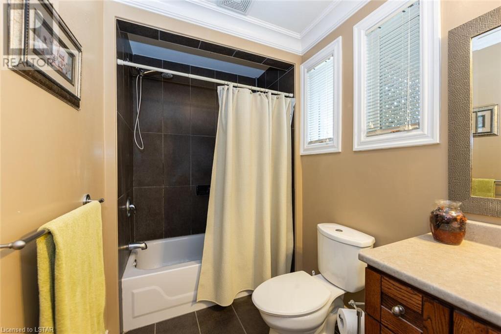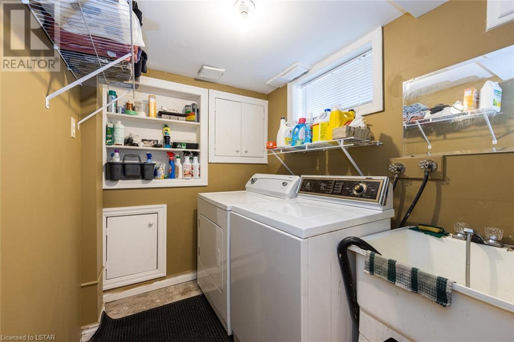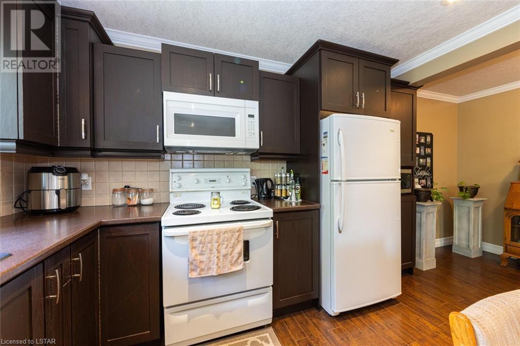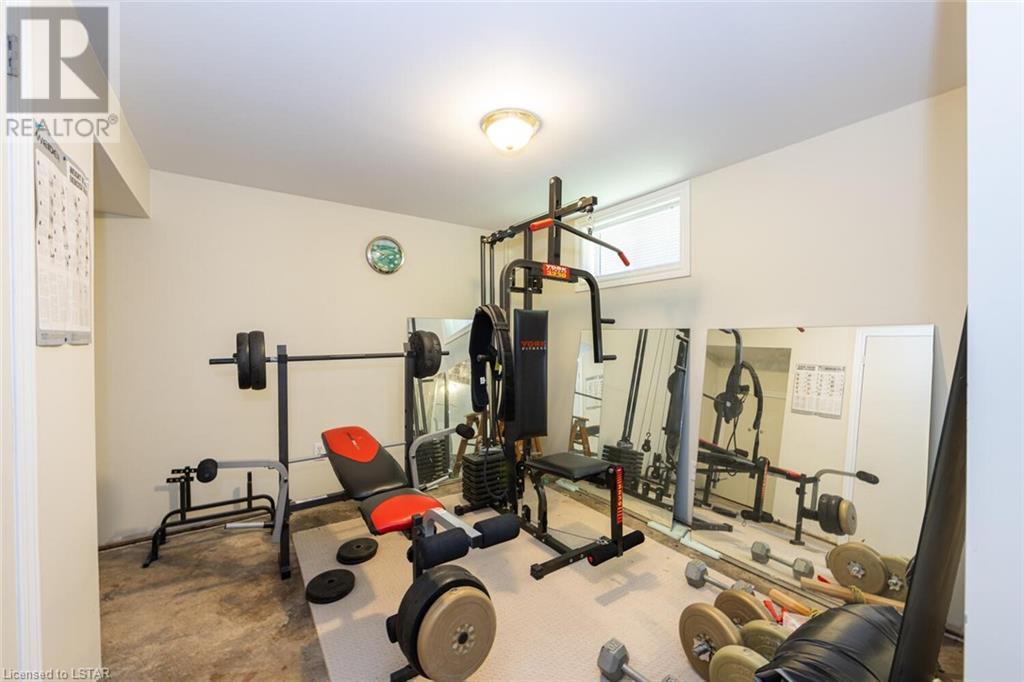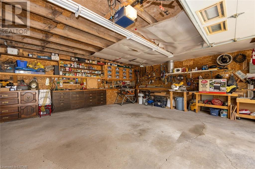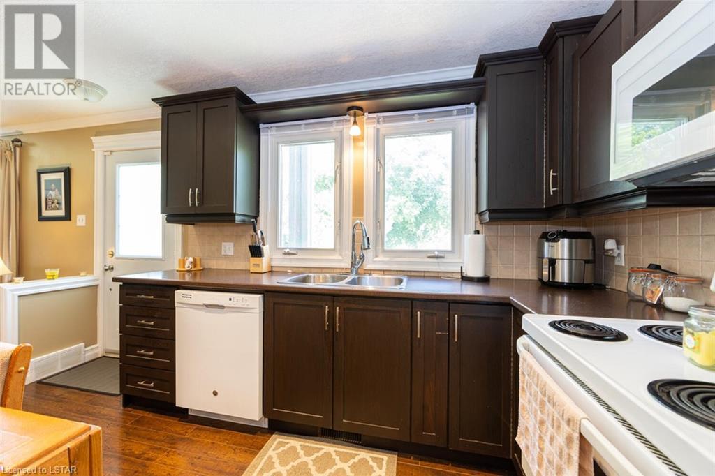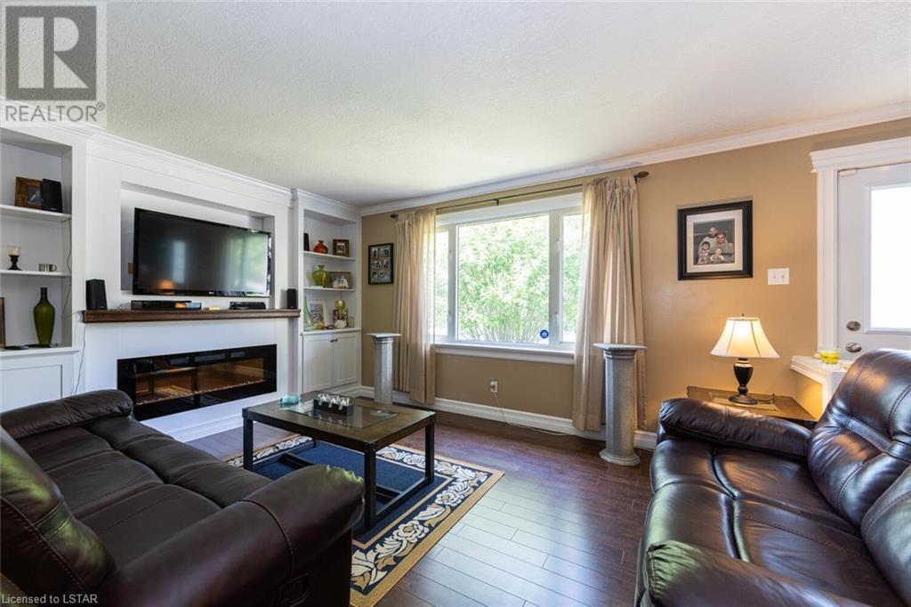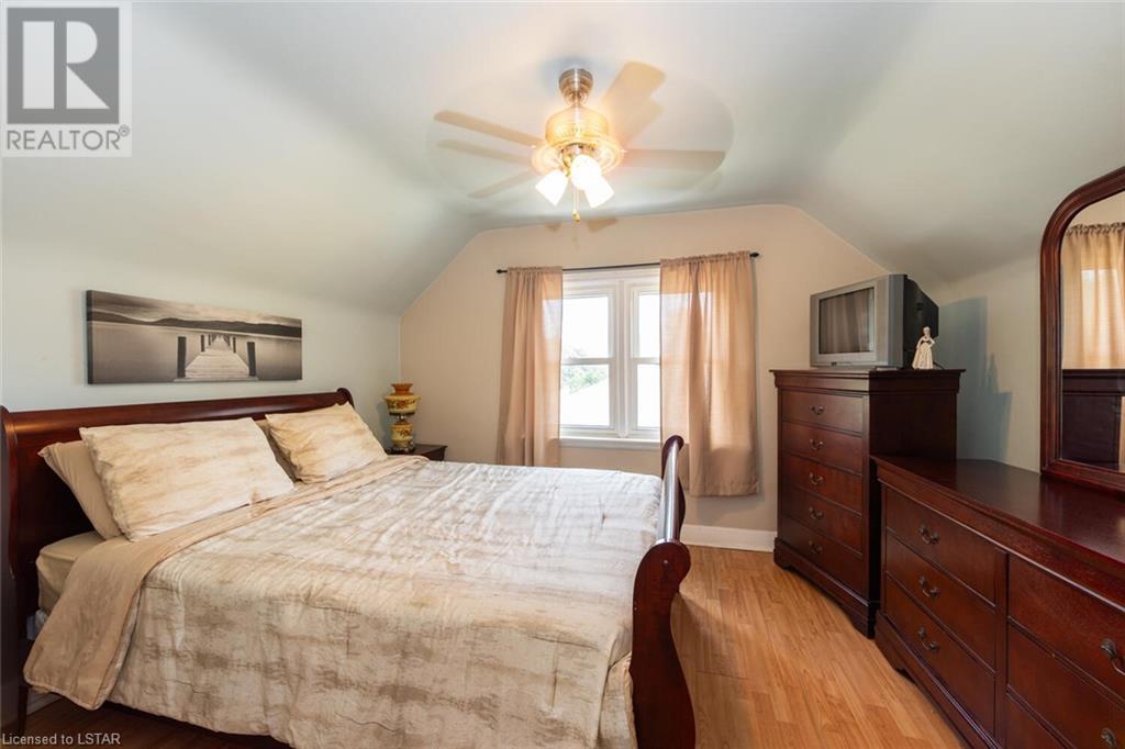 Immaculate Home on a quiet street in a mature East London neighbourhood. This 1.5 storey home has been meticulously maintained and offers 3 Bedrooms, a 4pc main Bath and a detached 2 car Garage. The beautiful, open concept main floor has a spacious Kitchen with a large Dining Area. The bright Livingroom has a modern electric fireplace and large picture window. Main floor bedroom is currently being used as an office space and offer contemporary design style. Also located on the main floor is the 4 pc main Bathroom. The Upper level has two great sized bedrooms and convenient storage space. Lower level is partially finished and includes a Den, home Gym, Kitchenette and Laundry Room. The fantastic back yard has a huge covered deck with ceiling fan, perfect for relaxing, surrounded by the mature gardens. The detached garage makes the perfect workshop! Additional shed that offers even more storage Walking distance to all amenities including grocery, shops, restaurants, schools and more! Close to public transit. Easy access to the 401 highway and minutes to the London Airport. (id:22211)