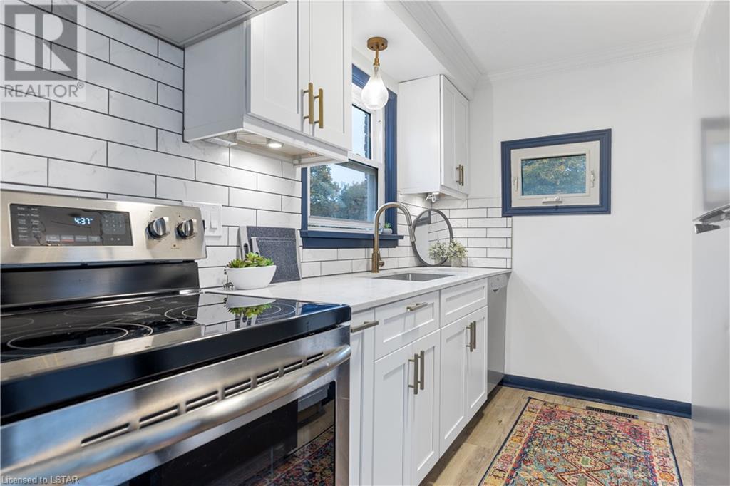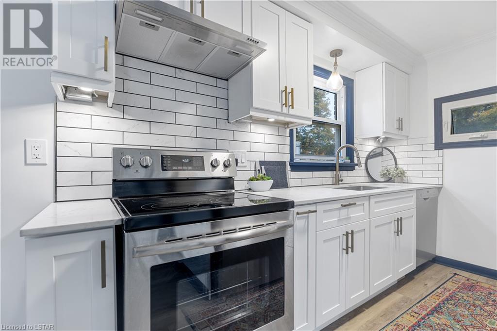 Welcome to this charming 2+2 bedroom, 2 bathroom brick bungalow with tremendous potential! This well-kept home offers an inviting open concept floor plan featuring an updated kitchen with quartz countertops and stainless steel appliances, a living room with large bay window providing lots of natural light and a dining area making it an ideal setup for hosting family gatherings or entertaining friends. Separate entrance to a fully finished lower with a large rec room and 2 bedrooms that could easily be transformed to an in-law suite. This home boasts several updates, including a carpet free main floor, some newer windows, a durable metal roof (with a transferable warranty), a modern furnace, and central air conditioning. Outside, you'll find a spacious yard, perfect for outdoor activities and gardening as well as a detached oversized single-car garage with ample parking. Conveniently located in a family-friendly neighborhood, this property is just a stone's throw away from schools, Argyle Arena, shopping centers, public transportation, and the recently opened East Lions Community Centre while providing easy access to the 401. Don't miss out on the opportunity to make this house your own! Contact us today to schedule a viewing and explore the possibilities that this lovely home has to offer. (id:22211)