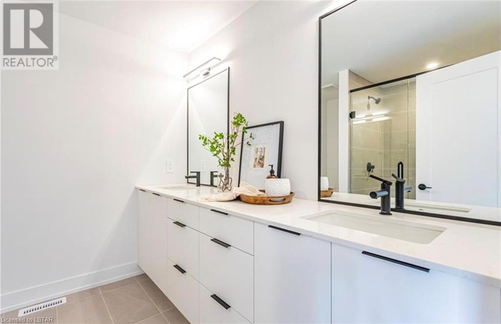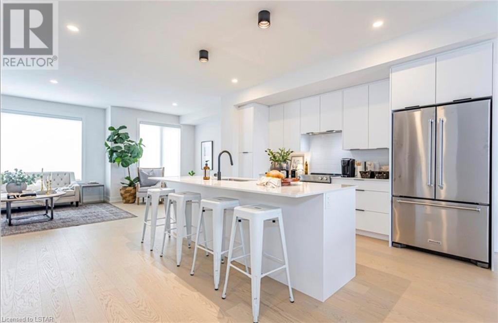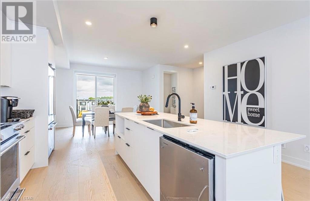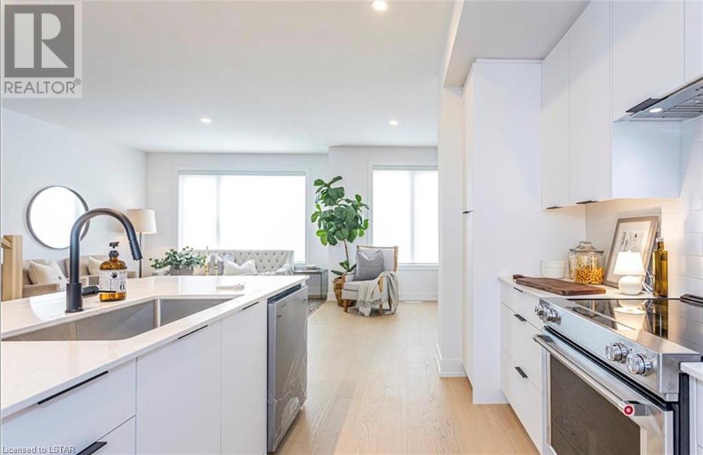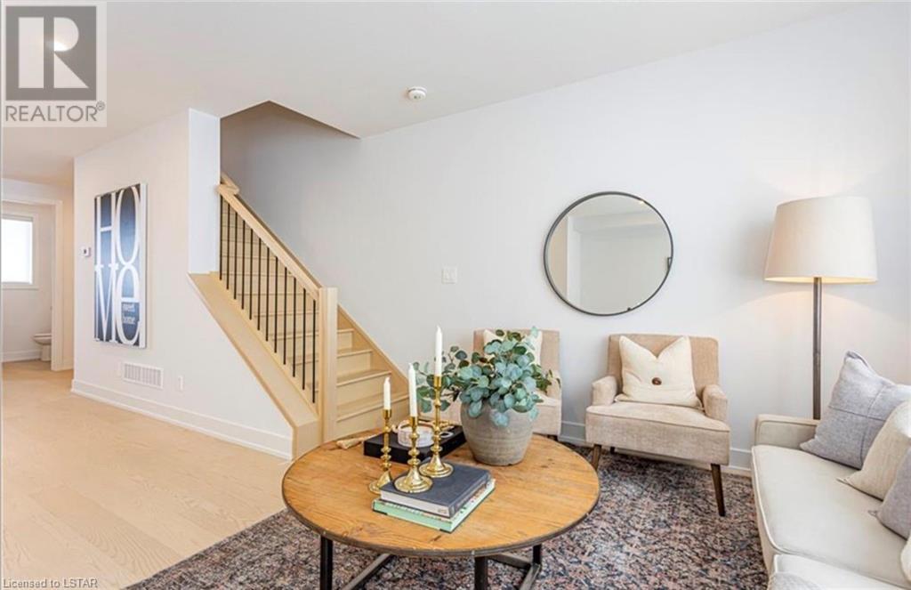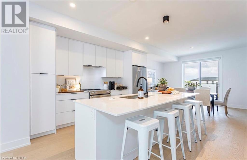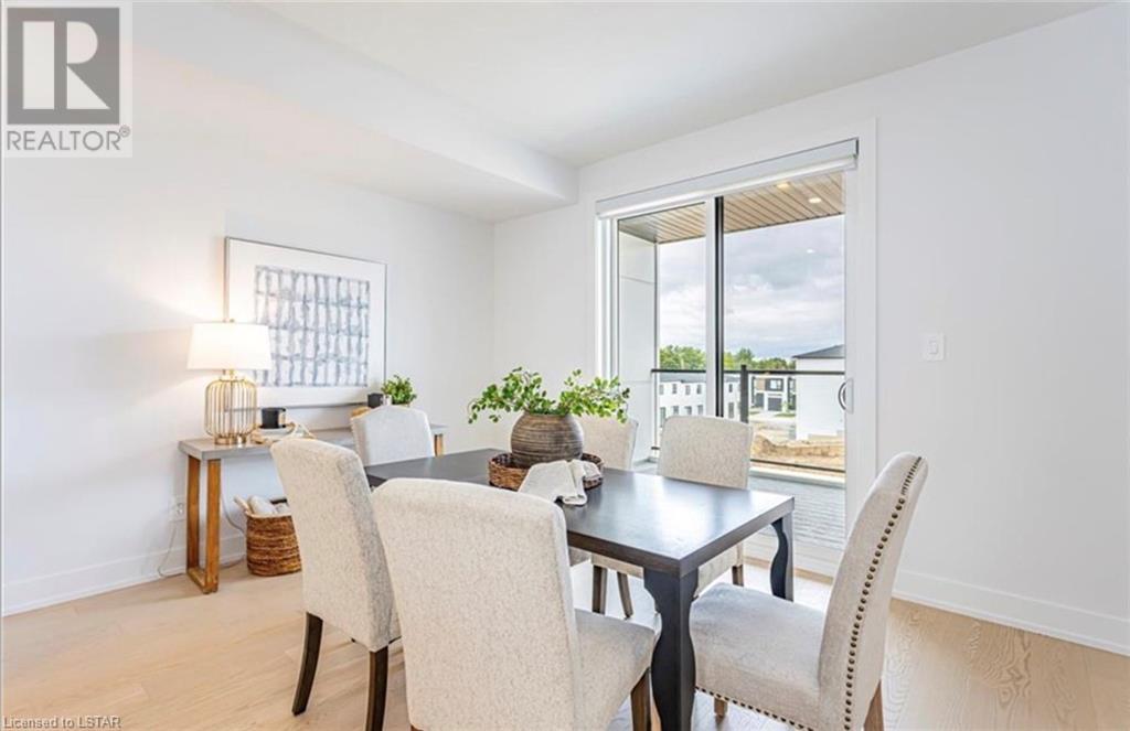 Just completed and Move in Ready! Luxurious three-story modern town home, built by Legacy Homes of London located in the highly desirable Warbler Woods in West London! This Interior Unit features 2300 sq ft of finished living space on 3 spacious levels. 4 bedrooms, 4 bathrooms with designer High-end finishes throughout. High 9 ft standard ceilings on main and second levels with 8 ft doors. The main level has a convenient separate entrance with a bedroom, ensuite and walk-in closet. Open concept kitchen, dining, and living second level with oversized windows allowing tons of natural light. Custom automatic roller shades on all windows. Oak-engineered hardwood flooring throughout. Modern kitchens with crisp white cabinets, quartz countertops and backsplash. Oversized islands. Trendy Black Riobel plumbing fixtures throughout as standard. Off the dining area you have a 6'x8 patio slider which provides access to your private balcony with maintenance free composite decking. Third level consists of 3 generous-sized bedrooms, 2 full bathrooms and Laundry. Primary Bedroom retreat with walk-in closet. Spa-like ensuite featuring double sink vanity and walk in glass shower. Basements unfinished. Detached driveways and Single Car garages. Very High Builders Standards. Excellent Location close to parks, walking trails, golf courses, top schools, restaurants, West 5 and easy Highway access. Vacant Land Condos with low monthly fees of $100/month. (id:22211)
