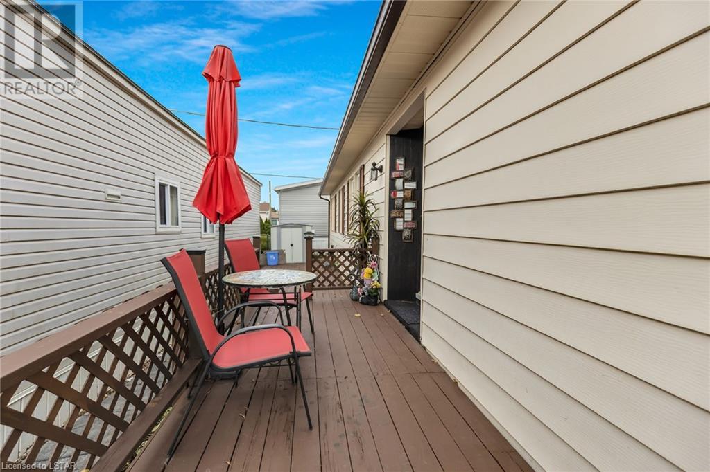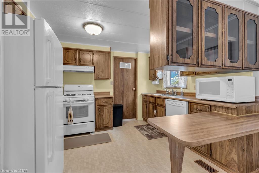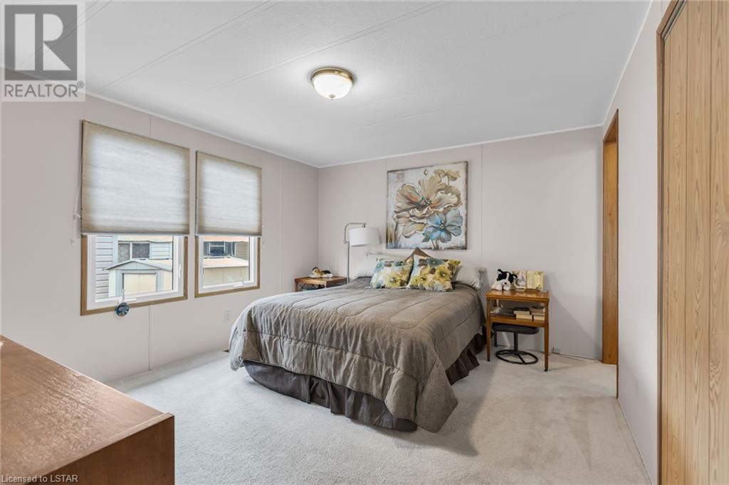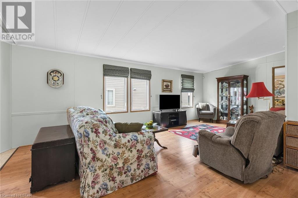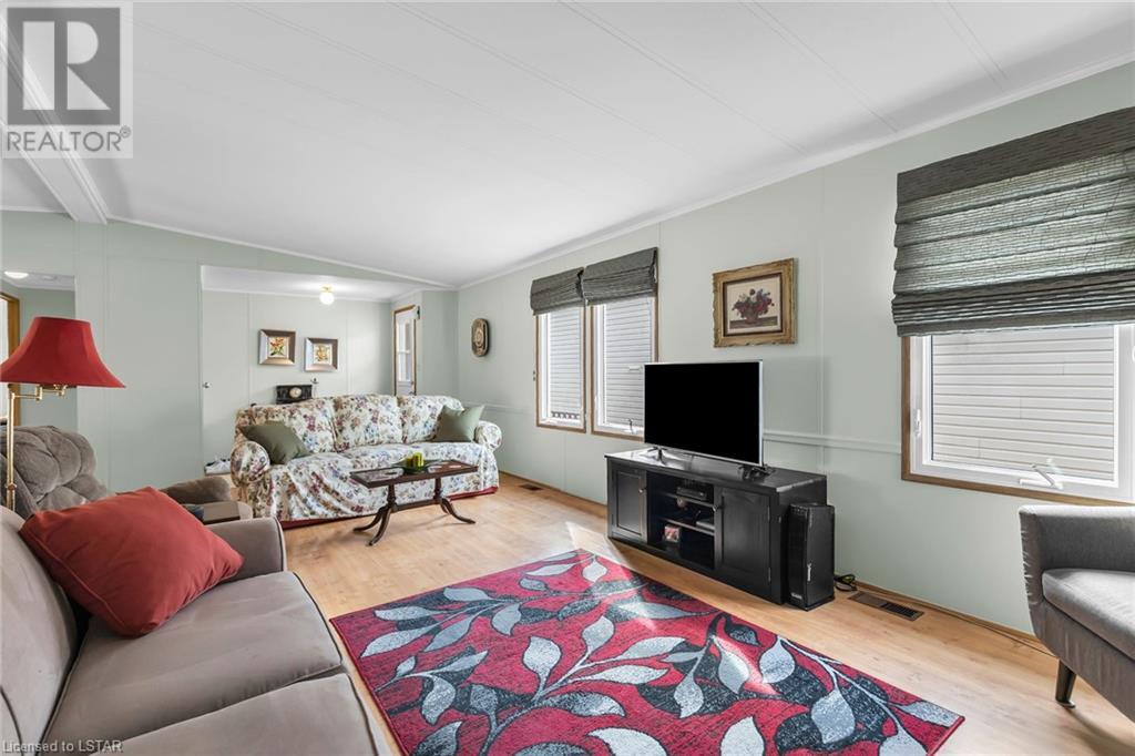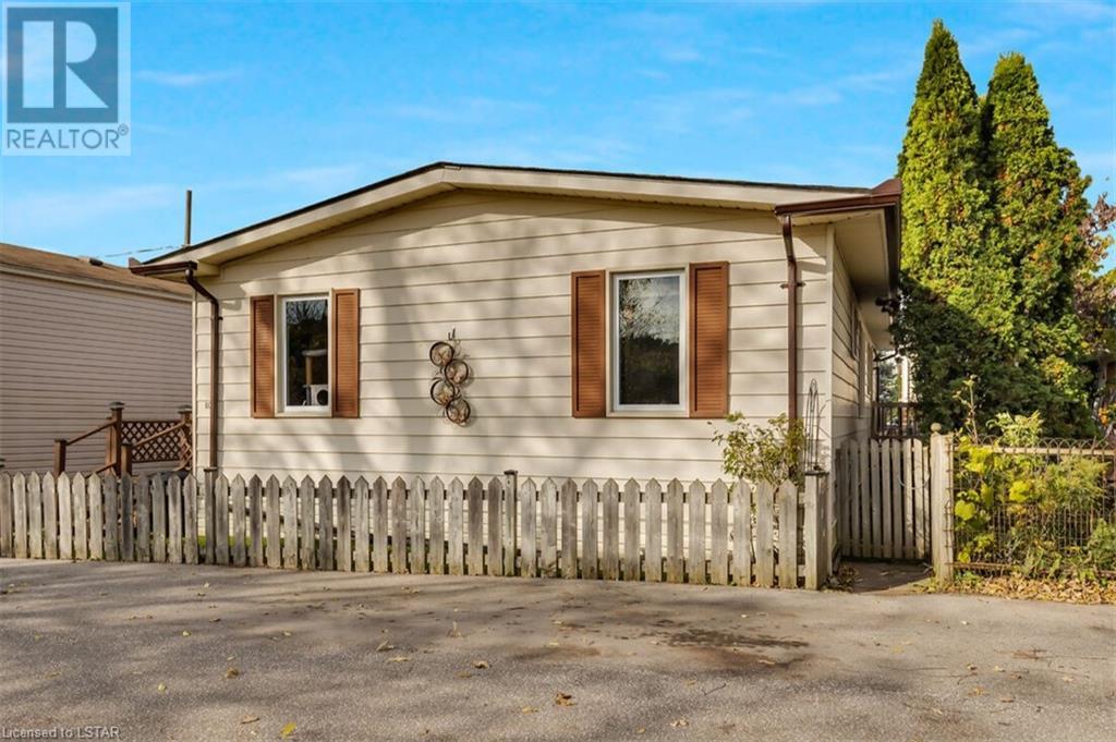 THE COVES! You'll love this quaint community located in central London along the Thames River close to shopping, restaurants, parks, and trails. This year round park offers an affordable and peaceful retirement (50+) option. PREMIUM location in the rear of the park overlooking greenery. Double wide (over 1,300 sq ft) with generous sized open concept living room, dining area, and kitchen. There's room to cook and room to entertain friends. There's a separate laundry room with side door access, 4pc bathroom, three bedrooms including primary bedroom with walk-in closet and 4pc ensuite. So much closet and storage space plus a private deck and large storage shed. UPDATES INCLUDE: Windows & exterior doors, A/C (approx 3 yrs), laminate flooring, carpet, electrical 100amp breakers, eaves with gutter-guards. 5 appliances included. Monthly fees are $793.81 and include land lease ($700), water ($50), taxes ($43.81), garbage/recycling, and park maintenance. Maybe you have thought about living here or maybe this is a new great idea. Either way - opportunity is knocking for this low maintenance, affordable, condo-alternative living! Call today to scheduled your private showing. (id:22211)