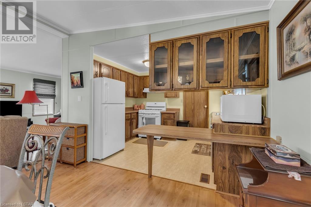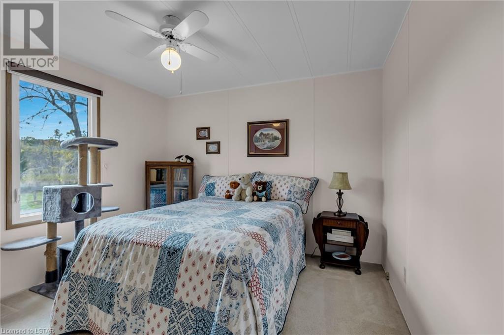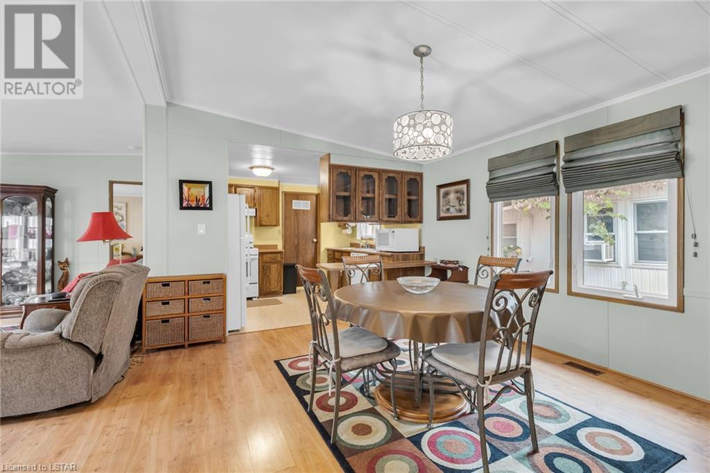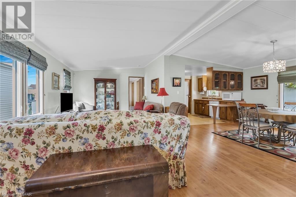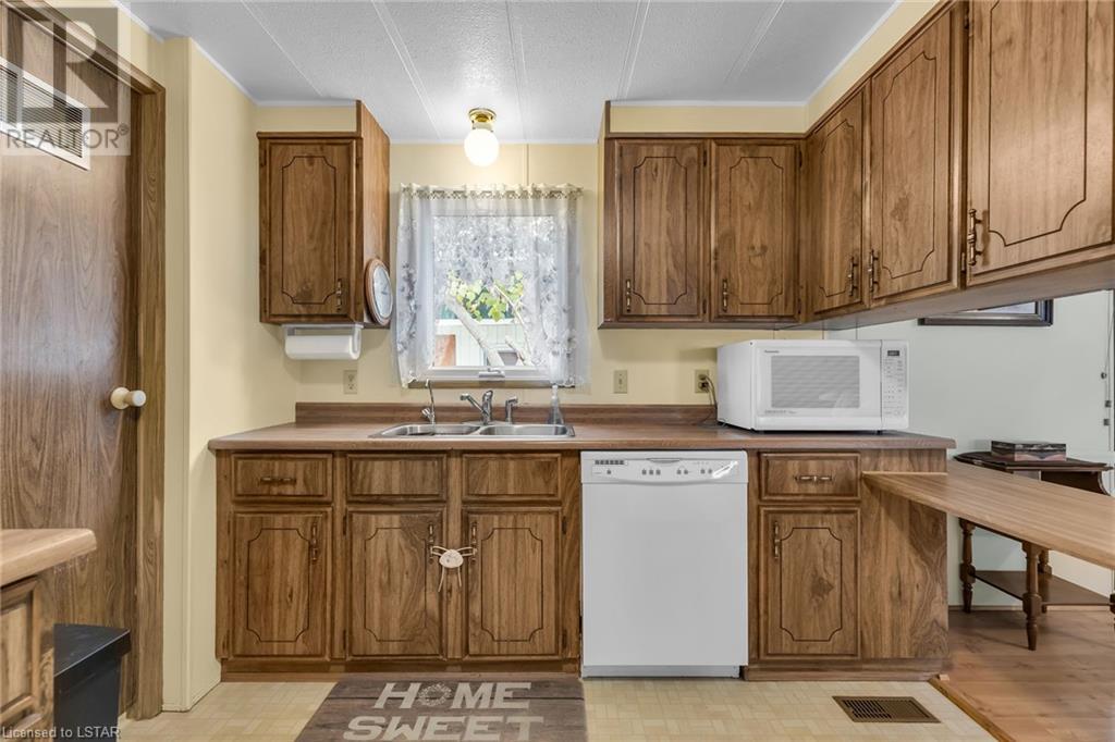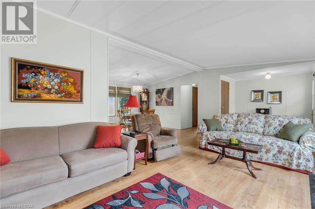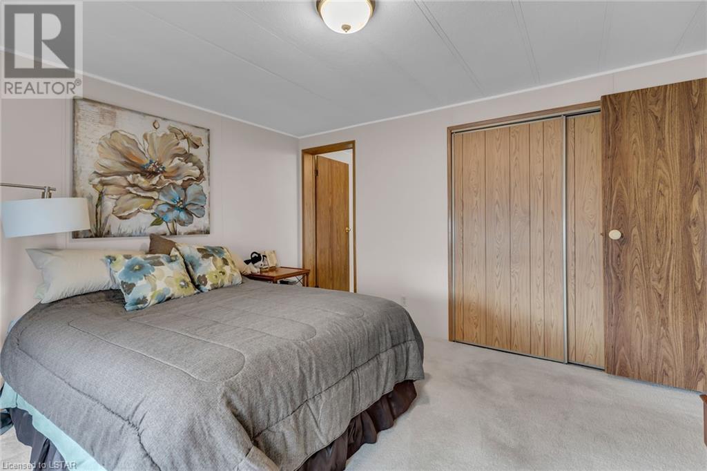 THE COVES! You'll love this quaint community located in central London along the Thames River close to shopping, restaurants, parks, and trails. This year round park offers an affordable and peaceful retirement (50+) option. PREMIUM location in the rear of the park overlooking greenery. Double wide (over 1,300 sq ft) with generous sized open concept living room, dining area, and kitchen. There's room to cook and room to entertain friends. There's a separate laundry room with side door access, 4pc bathroom, three bedrooms including primary bedroom with walk-in closet and 4pc ensuite. So much closet and storage space plus a private deck and large storage shed. UPDATES INCLUDE: Windows & exterior doors, A/C (approx 3 yrs), laminate flooring, carpet, electrical 100amp breakers, eaves with gutter-guards. 5 appliances included. Monthly fees are $793.81 and include land lease ($700), water ($50), taxes ($43.81), garbage/recycling, and park maintenance. Maybe you have thought about living here or maybe this is a new great idea. Either way - opportunity is knocking for this low maintenance, affordable, condo-alternative living! Call today to scheduled your private showing. (id:22211)