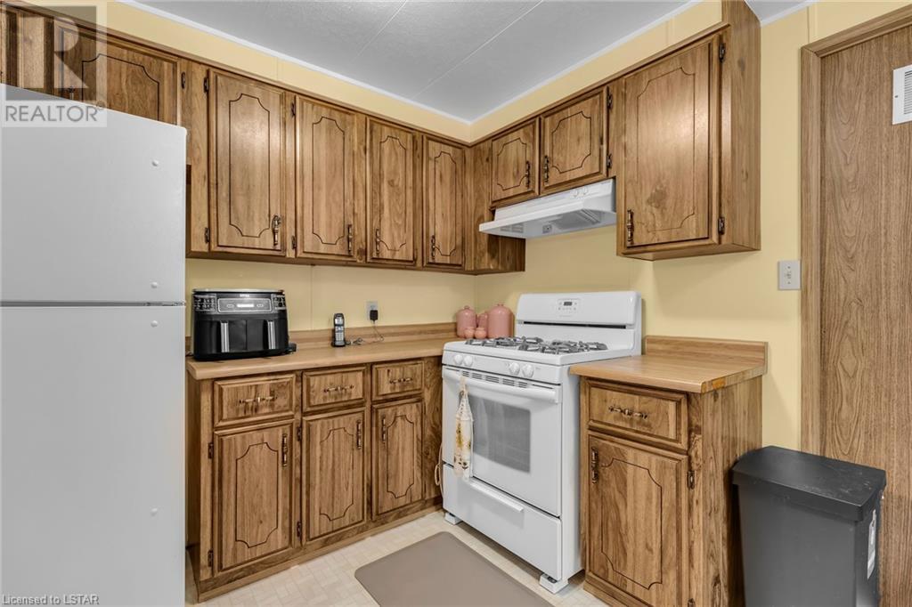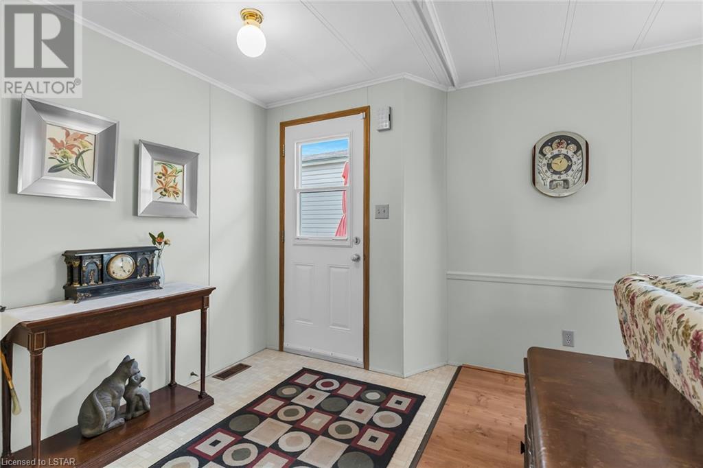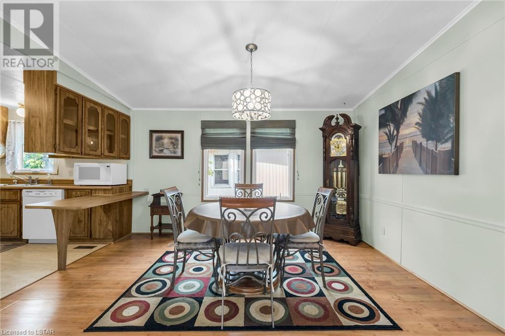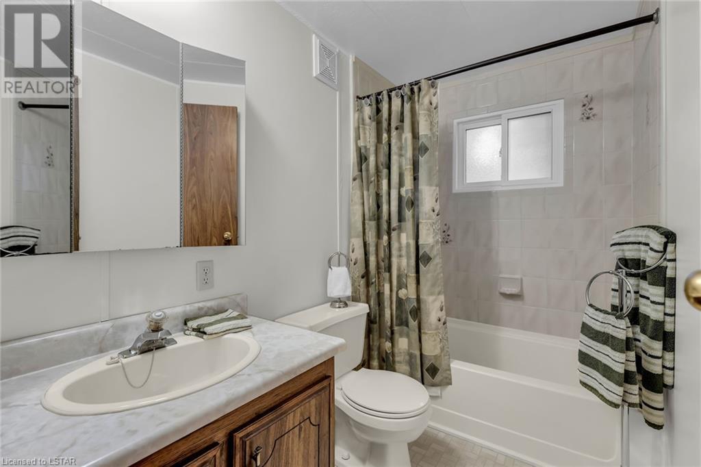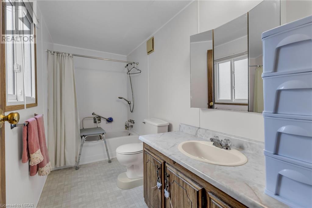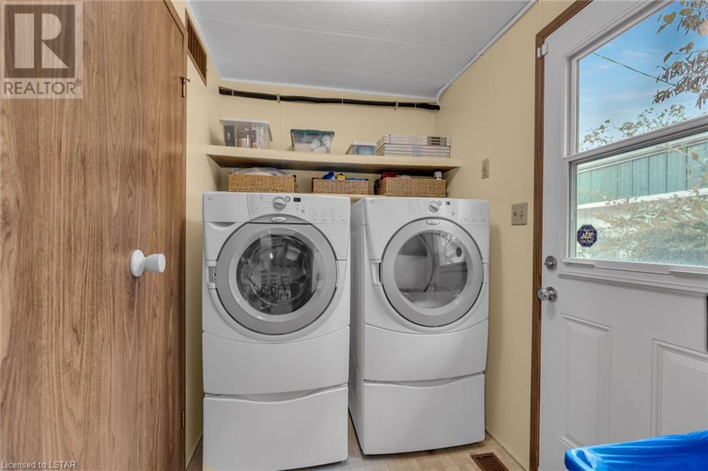 THE COVES! You'll love this quaint community located in central London along the Thames River close to shopping, restaurants, parks, and trails. This year round park offers an affordable and peaceful retirement (50+) option. PREMIUM location in the rear of the park overlooking greenery. Double wide (over 1,300 sq ft) with generous sized open concept living room, dining area, and kitchen. There's room to cook and room to entertain friends. There's a separate laundry room with side door access, 4pc bathroom, three bedrooms including primary bedroom with walk-in closet and 4pc ensuite. So much closet and storage space plus a private deck and large storage shed. UPDATES INCLUDE: Windows & exterior doors, A/C (approx 3 yrs), laminate flooring, carpet, electrical 100amp breakers, eaves with gutter-guards. 5 appliances included. Monthly fees are $793.81 and include land lease ($700), water ($50), taxes ($43.81), garbage/recycling, and park maintenance. Maybe you have thought about living here or maybe this is a new great idea. Either way - opportunity is knocking for this low maintenance, affordable, condo-alternative living! Call today to scheduled your private showing. (id:22211)
