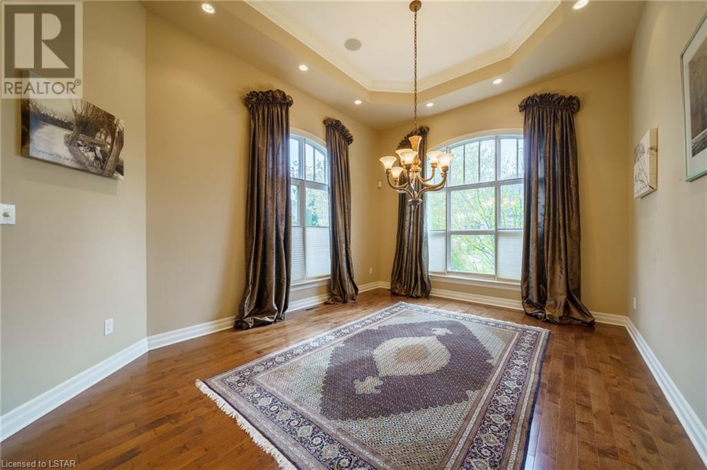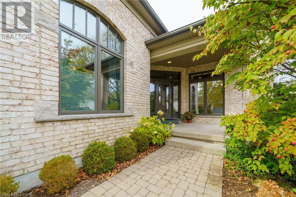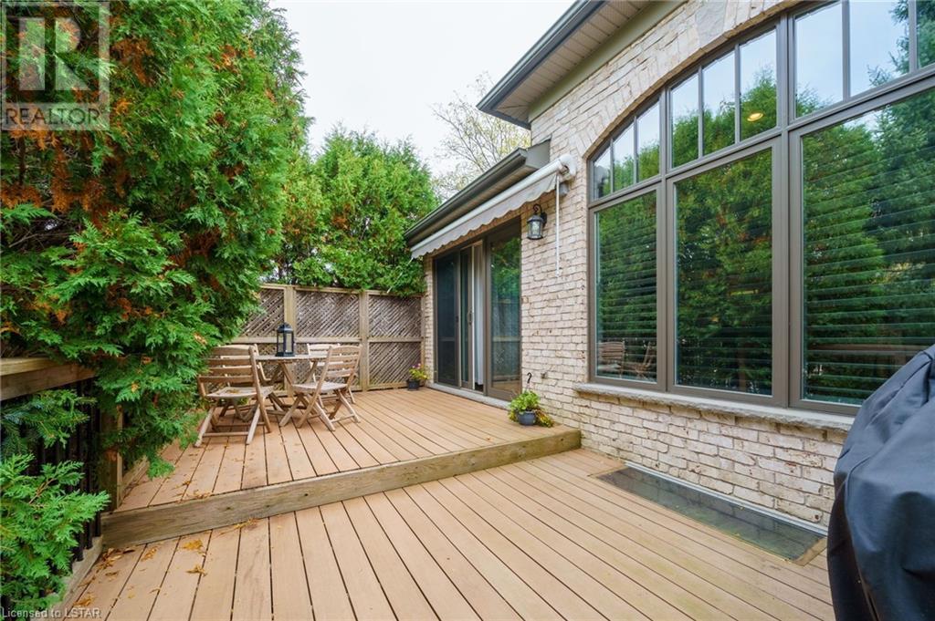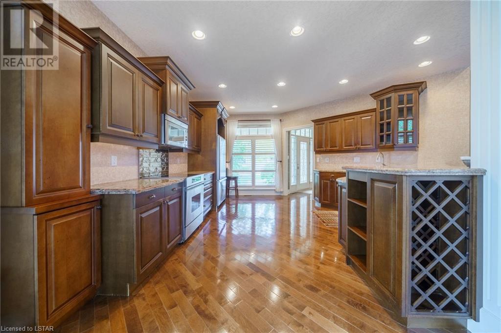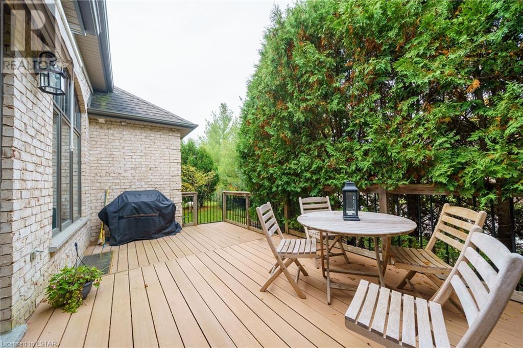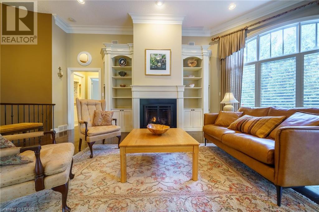 Welcome to the most exclusive gated community in North London, The Enclave. This prestigious homes features an open floor plan on both levels with plenty of options for entertaining. The main floor boasts a large foyer with 12 foot ceilings, eat in kitchen with large peninsula facing the living room with gas fireplace and built-ins. Large dining room off the entrance with large windows and 12 foot ceilings. The Primary bedroom is at the back of the home for added peace and quiet. Large ensuite with high end finishings and large walk-in closet. Den/Office or bedroom is down the hall with an cheater ensuite. Downstairs you'll find a large rec room, another two bedrooms with large bathroom and the best closet/storage area. Off the dinette is the very private deck with a cedar hedge. Close to walking trails, shopping, schools and restaurants/gyms, this private neighborhood is in the midst of it all while having private peace and quiet. (id:22211)