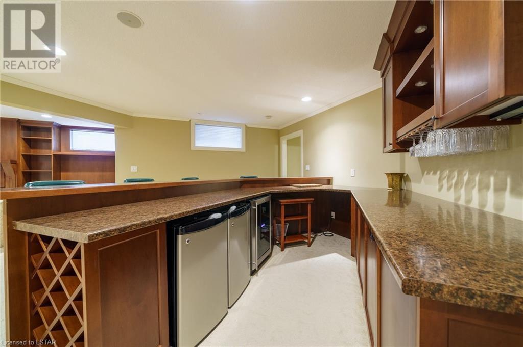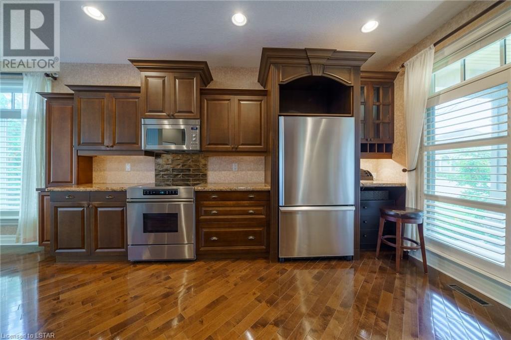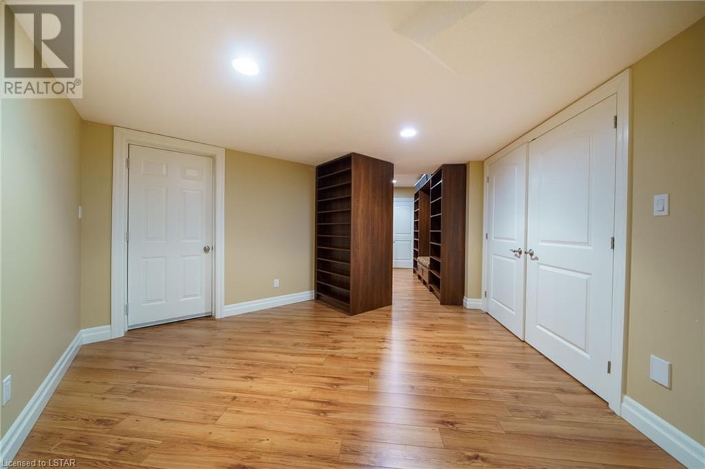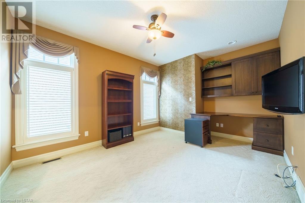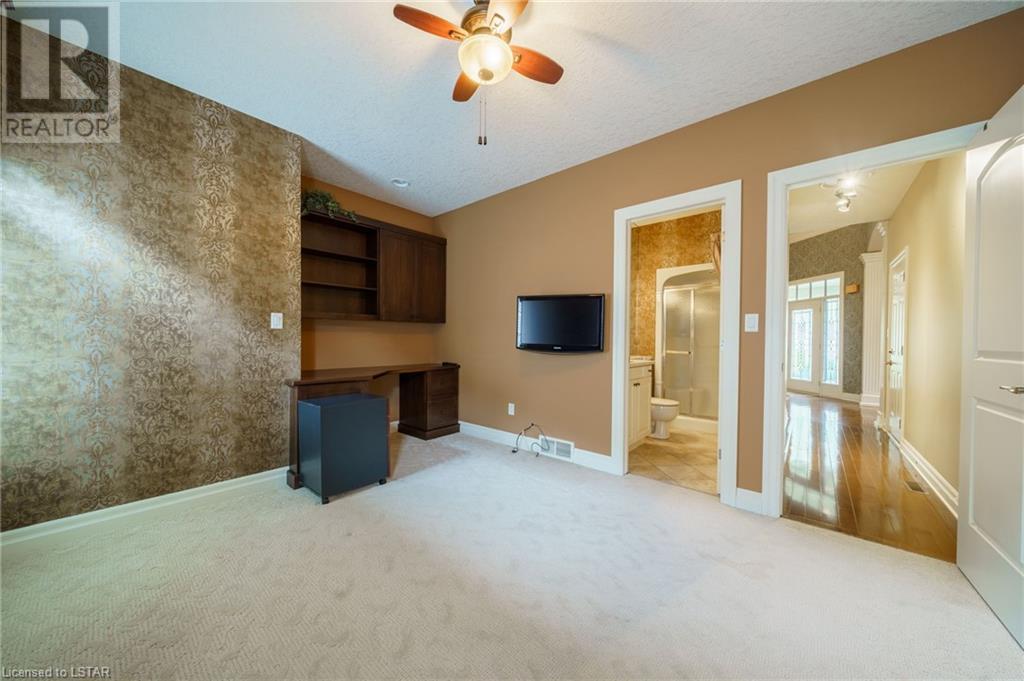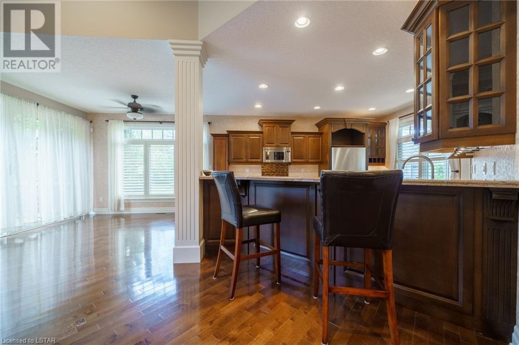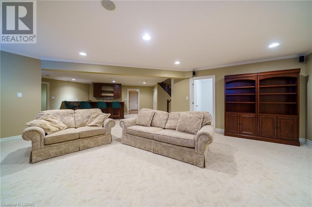 Welcome to the most exclusive gated community in North London, The Enclave. This prestigious homes features an open floor plan on both levels with plenty of options for entertaining. The main floor boasts a large foyer with 12 foot ceilings, eat in kitchen with large peninsula facing the living room with gas fireplace and built-ins. Large dining room off the entrance with large windows and 12 foot ceilings. The Primary bedroom is at the back of the home for added peace and quiet. Large ensuite with high end finishings and large walk-in closet. Den/Office or bedroom is down the hall with an cheater ensuite. Downstairs you'll find a large rec room, another two bedrooms with large bathroom and the best closet/storage area. Off the dinette is the very private deck with a cedar hedge. Close to walking trails, shopping, schools and restaurants/gyms, this private neighborhood is in the midst of it all while having private peace and quiet. (id:22211)