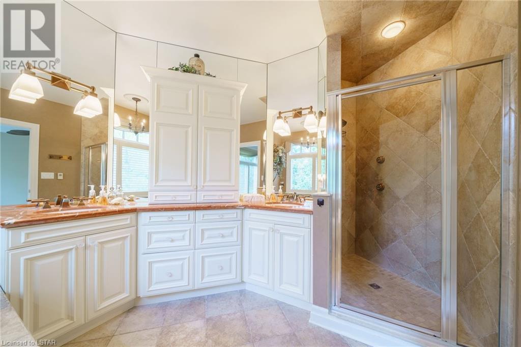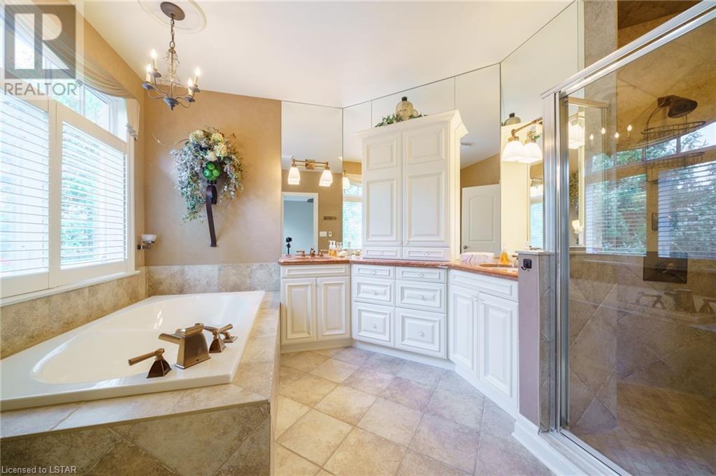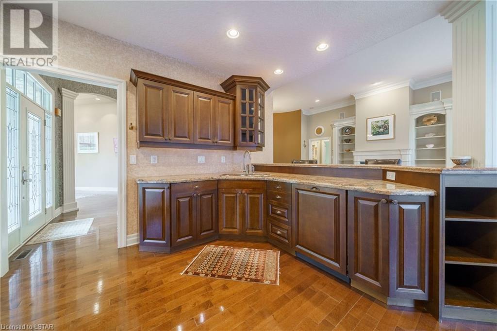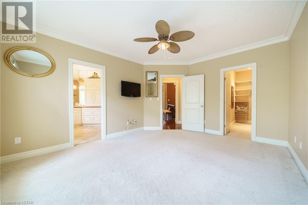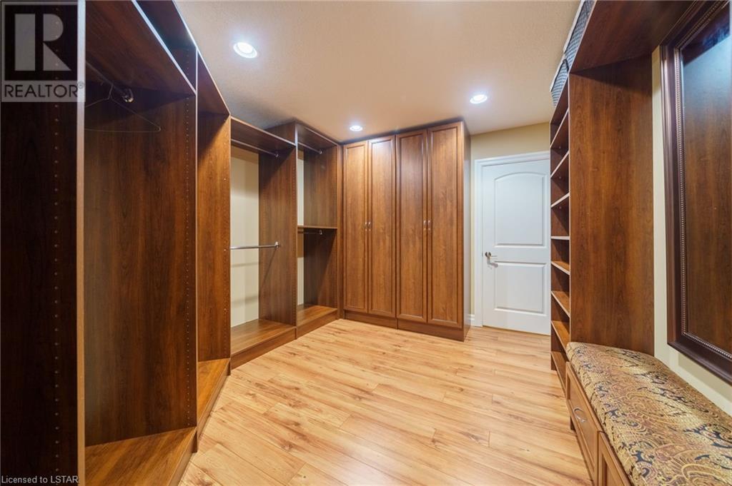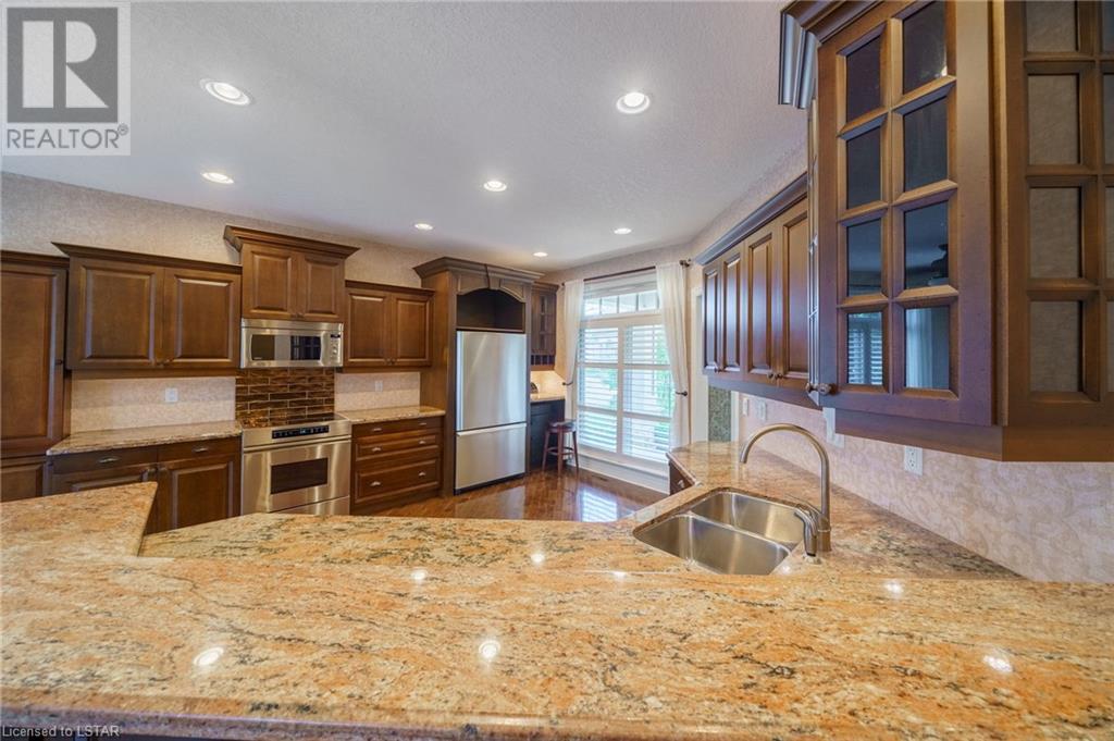Welcome to the most exclusive gated community in North London, The Enclave. This prestigious homes features an open floor plan on both levels with plenty of options for entertaining. The main floor boasts a large foyer with 12 foot ceilings, eat in kitchen with large peninsula facing the living room with gas fireplace and built-ins. Large dining room off the entrance with large windows and 12 foot ceilings. The Primary bedroom is at the back of the home for added peace and quiet. Large ensuite with high end finishings and large walk-in closet. Den/Office or bedroom is down the hall with an cheater ensuite. Downstairs you'll find a large rec room, another two bedrooms with large bathroom and the best closet/storage area. Off the dinette is the very private deck with a cedar hedge. Close to walking trails, shopping, schools and restaurants/gyms, this private neighborhood is in the midst of it all while having private peace and quiet. (id:22211)