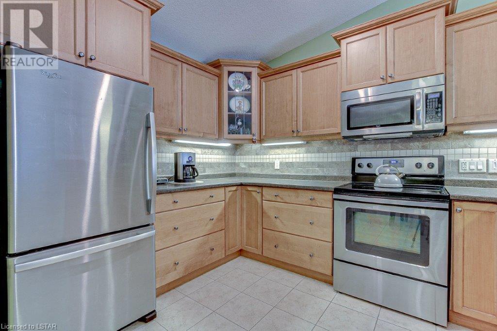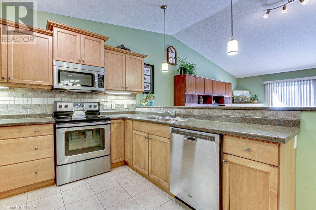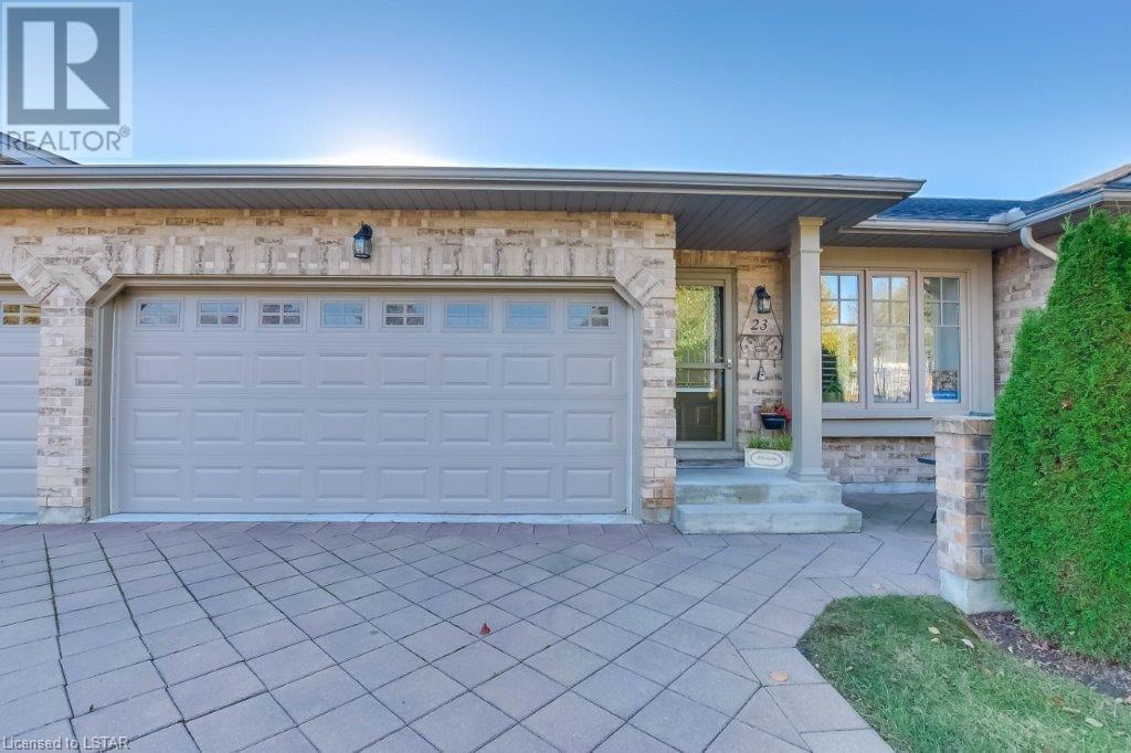 Introducing 23-2100 Denview Ave. This amazing Condo is in a High Demand Neighborhood in one of North London’s most sought after complexes. Pull up to this unit and park in the 2-car garage, or on your double wide driveway. When you enter the front door, you know you have found home! The main floor offers excellent space and layout consisting of a large foyer with spacious closet, Bright eat in kitchen with plenty of cupboard space and bar seating, Main floor Laundry, Generous sized Primary bedroom with double wide closets and a 3pc Ensuite bath, Nice second bedroom with big closet, second 3pc bathroom, Open living room with gas fireplace, and a patio door leading to a 120sq.ft. wood deck with a manual awning. The lower level includes two more bedrooms, T.V area, two bonus areas, 3-piece bathroom, plus approximately 368 sq feet of area you can finish the way you like. Easy access to Western University, shopping malls and all the great amenities. The park nearby is being upgraded with Pickleball, Tennis, and Basketball courts and more. Just move-in and relax. Do not wait… Book your showing today! (id:22211)