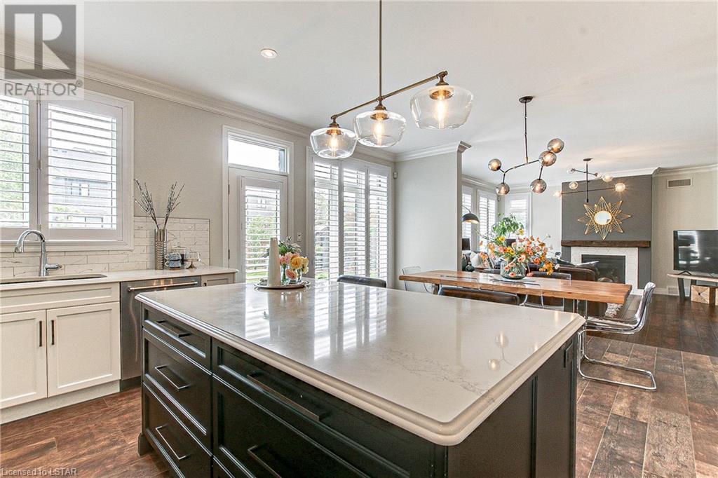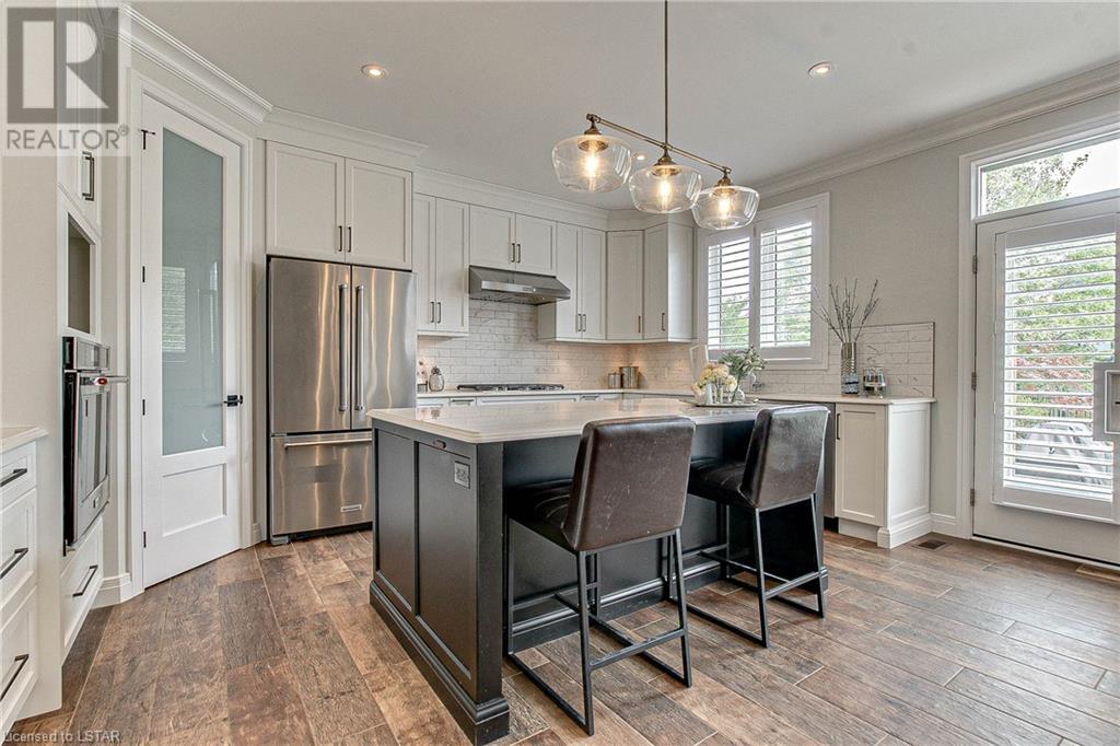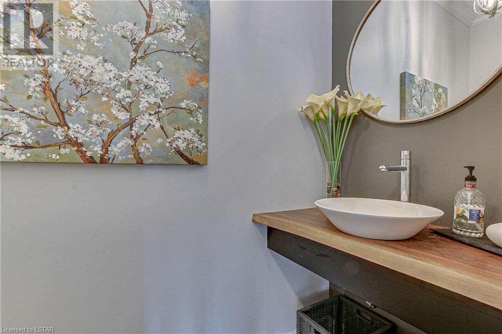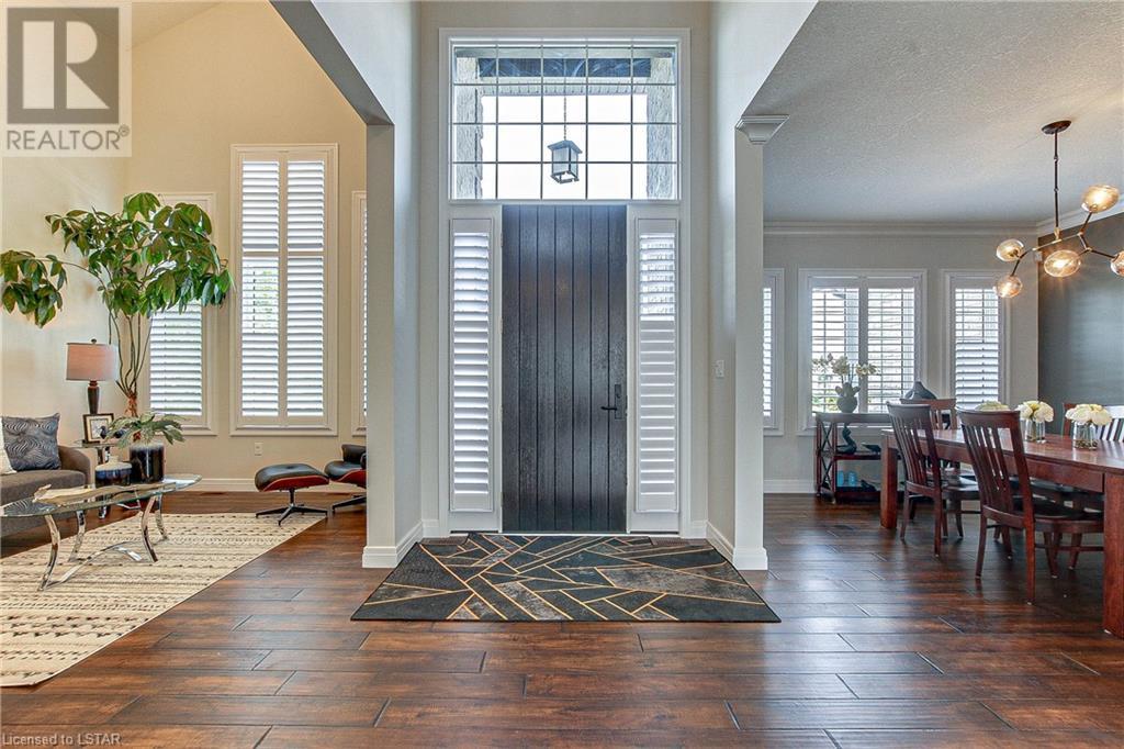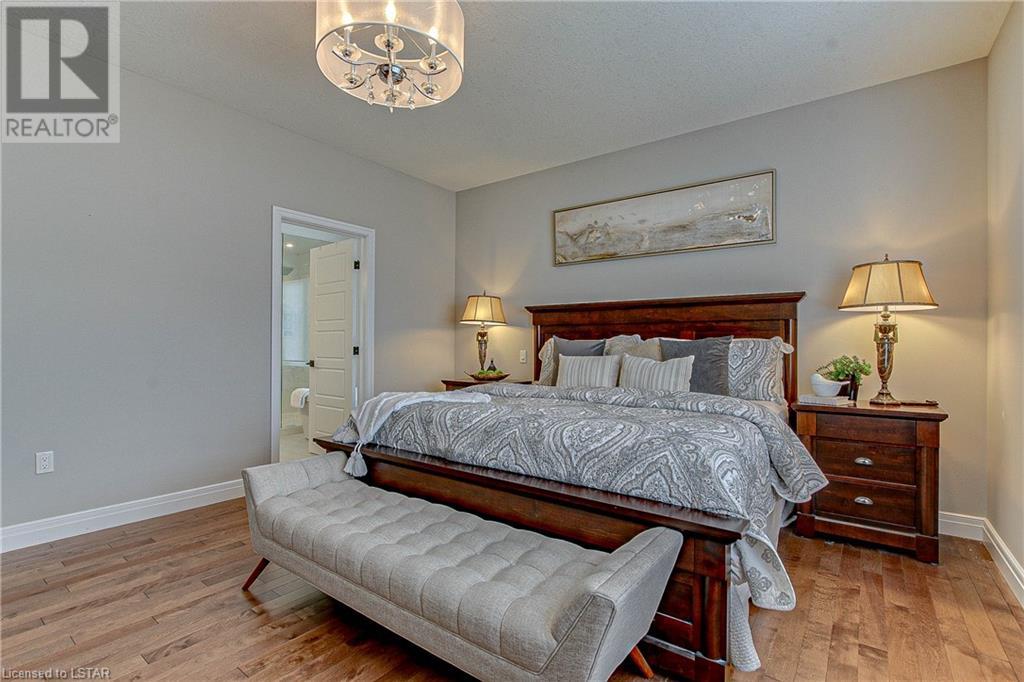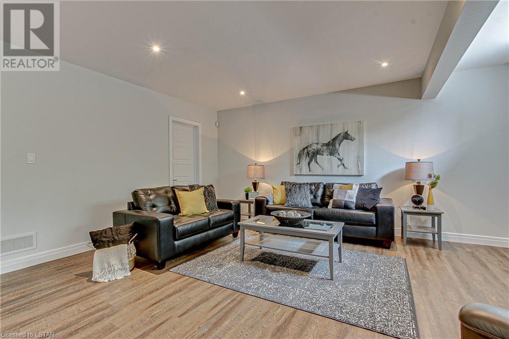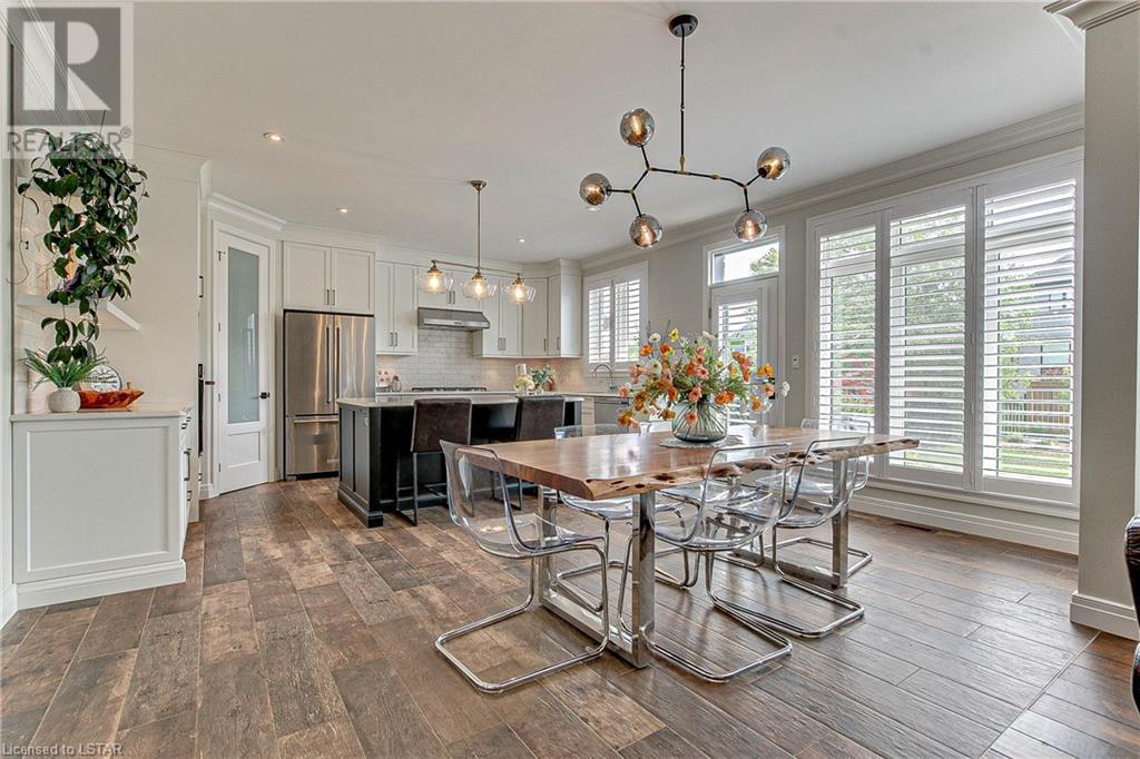 Excellent executive home in prestigious Sunningdale North London with all convenience close by! Reputable Wasko built, this 4+1 bedroom 3.5 bath house features 3223 sqft above grade & 1041 sqft finished lower level. Elegant exterior of brick and stone sits on oversized large lot 74.85 x129.87 feet with professional landscaping. Upgraded wood floor throughout the whole house with wide plank engineer on main, maple hardwood floor on the second and Luxury vinyl plank in the basement. 9 feet ceiling with 8 feet doors on the main floor with crown moldings throughout. Formal dining and living room combined with home office on main floor. Family room has beautiful fireplace with reclaimed barn beam connected with breakfast eat in area and Open concept kitchen with many cabinets. Shelves & built in oven. Gas burner. Fully finished basement with deep poured concrete. Extra large windows in the basement. Second floor upgraded with 9 feet ceiling as well. Luxury master bedroom ensuite with walk-in closet & upgraded shelves. Fully loaded upgrades include California shutters throughout. Glass Showers, quartz countertop. BBQ Gasline hooked up. Second water pressure sump pump. Oversized garage 23 ft x 25 ft. Pergola at the backyard perfect for summer living. Minutes to Western University , University hospital and Masonville Mall. Top schools with school bus to Masonville P.S & A.B Lucas S.S. Truly one of the kind family home for your growing family! One call, you are in! (id:22211)