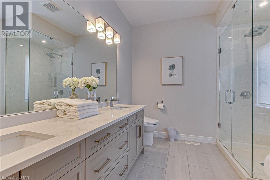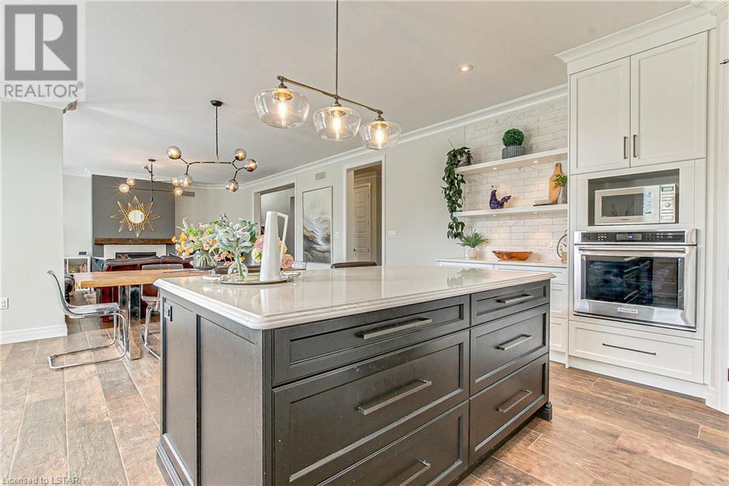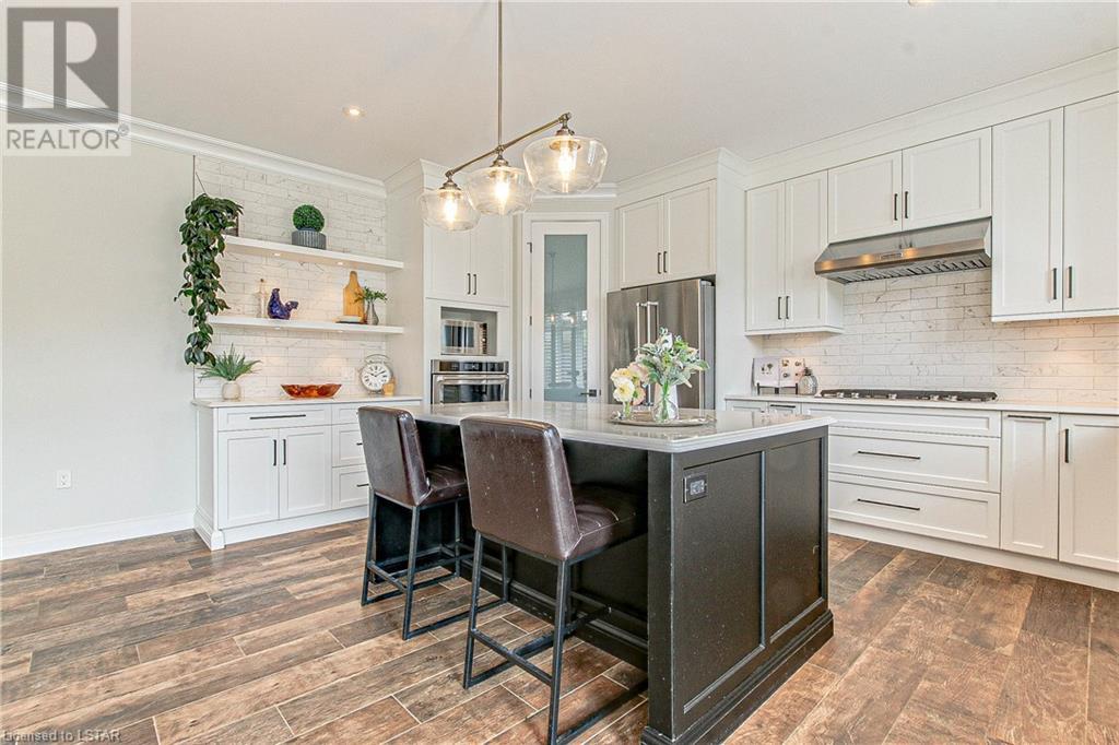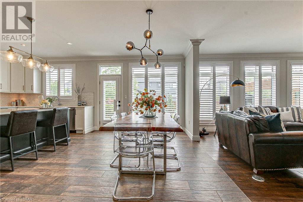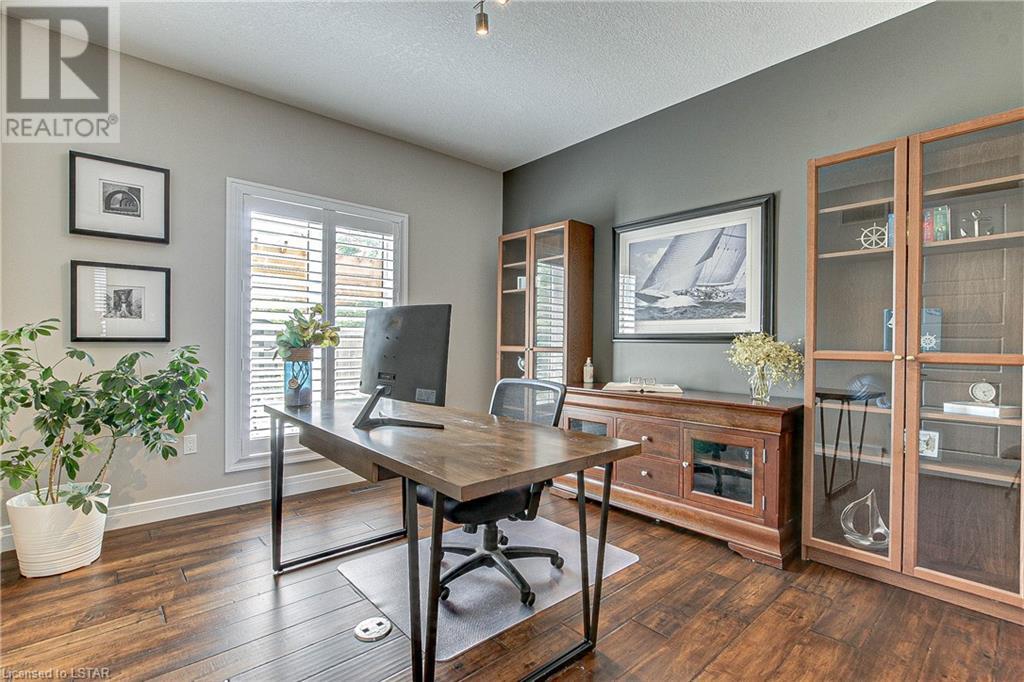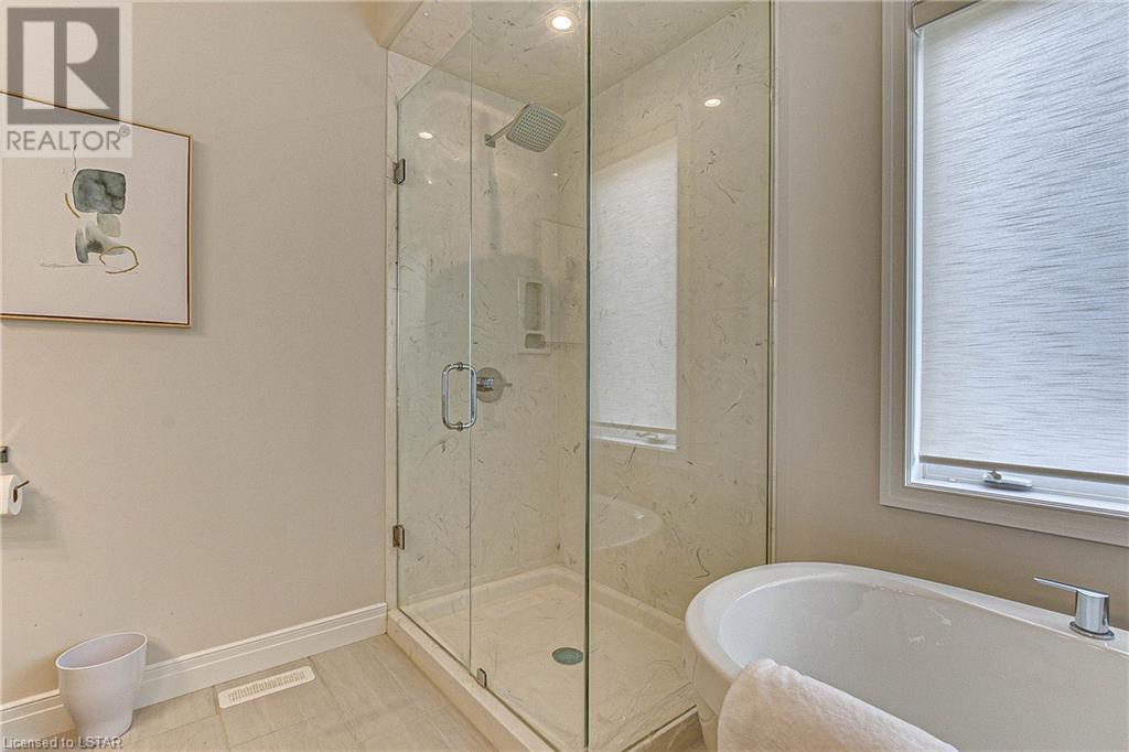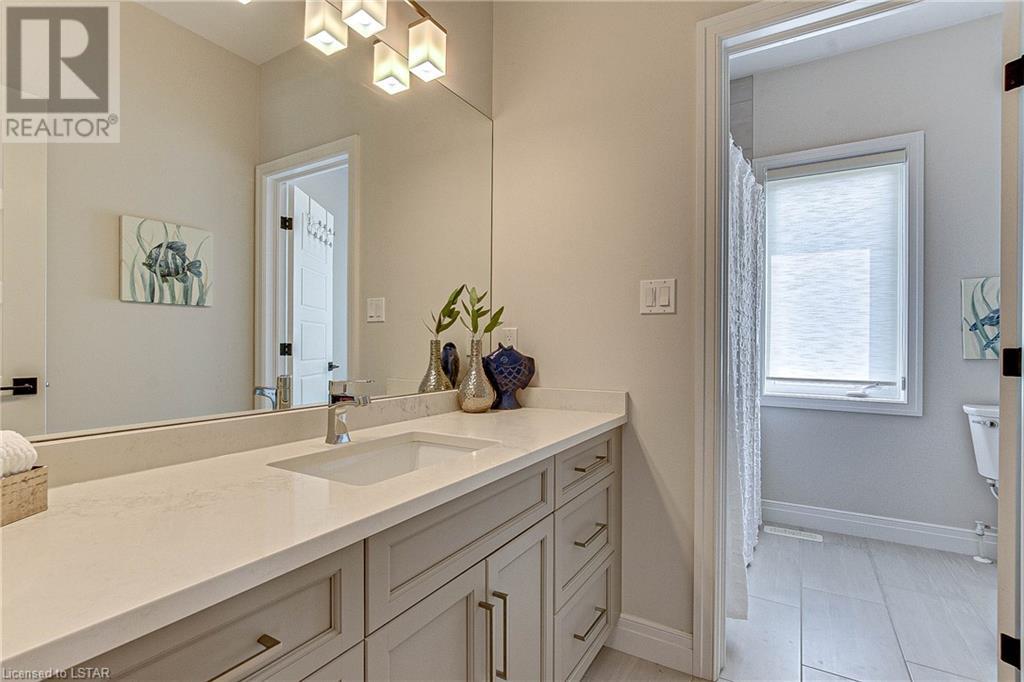 Excellent executive home in prestigious Sunningdale North London with all convenience close by! Reputable Wasko built, this 4+1 bedroom 3.5 bath house features 3223 sqft above grade & 1041 sqft finished lower level. Elegant exterior of brick and stone sits on oversized large lot 74.85 x129.87 feet with professional landscaping. Upgraded wood floor throughout the whole house with wide plank engineer on main, maple hardwood floor on the second and Luxury vinyl plank in the basement. 9 feet ceiling with 8 feet doors on the main floor with crown moldings throughout. Formal dining and living room combined with home office on main floor. Family room has beautiful fireplace with reclaimed barn beam connected with breakfast eat in area and Open concept kitchen with many cabinets. Shelves & built in oven. Gas burner. Fully finished basement with deep poured concrete. Extra large windows in the basement. Second floor upgraded with 9 feet ceiling as well. Luxury master bedroom ensuite with walk-in closet & upgraded shelves. Fully loaded upgrades include California shutters throughout. Glass Showers, quartz countertop. BBQ Gasline hooked up. Second water pressure sump pump. Oversized garage 23 ft x 25 ft. Pergola at the backyard perfect for summer living. Minutes to Western University , University hospital and Masonville Mall. Top schools with school bus to Masonville P.S & A.B Lucas S.S. Truly one of the kind family home for your growing family! One call, you are in! (id:22211)