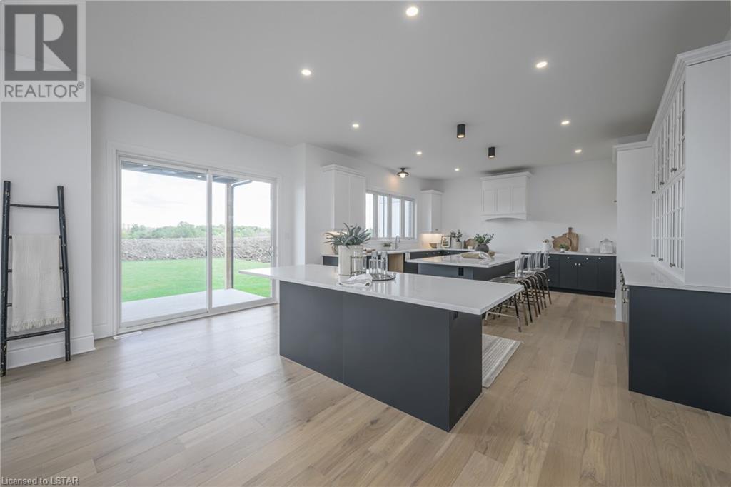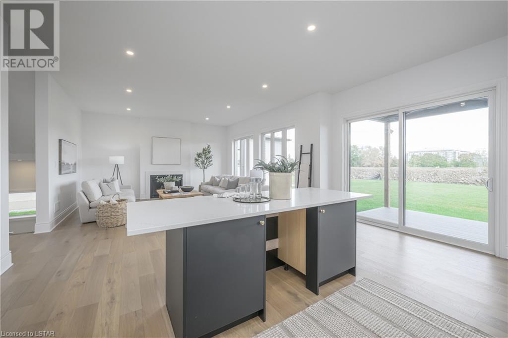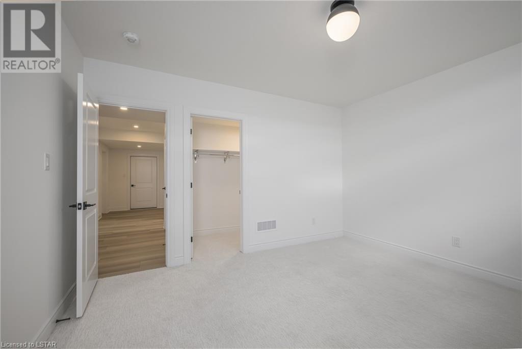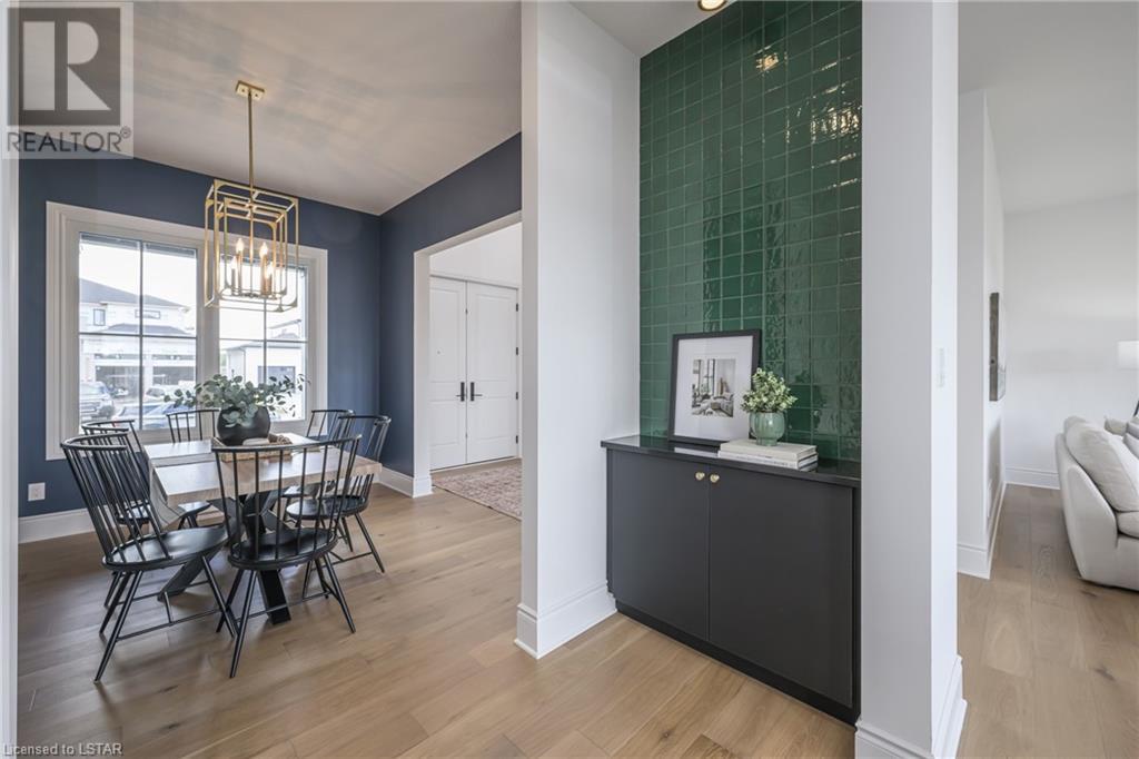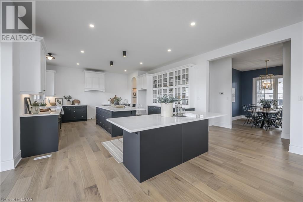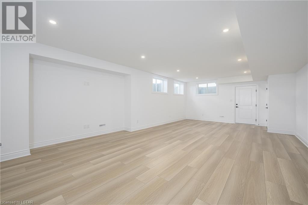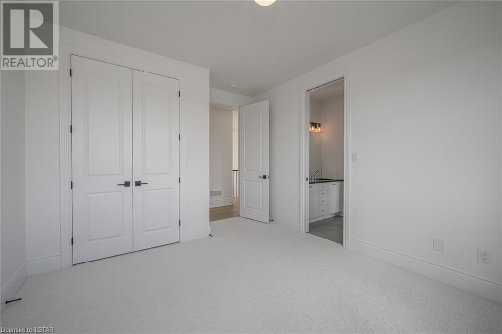 Impressive curb appeal w/ a combination of stone, graphite-tone stucco, black frame windows & standing-seam metal roof detailing. This 5-bedroom, 5-bathroom Westhaven Homes beauty offers a spacious, open-concept plan + finished basement for a total of ~4000 sq. ft of living in Sunningdale Court–North London’s executive lifestyle enclave. 10 ft ceilings & gorgeous windows draw natural light through the living spaces & across the White Oak floors. Great room combines a culinary haven w/ multiple gathering spaces. Outstanding kitchen design features extensive lower cabinetry/drawers in soft black tones w/gold detailing & crisp white uppers including mullioned glass display cabinets & extensive quartz surfaces. An arched entry into the Butler’s pantry extends serving & storage. Double islands, seating 10, open onto an inviting living room w/ 46 inch gas fireplace & large windows. 8 ft patio doors open onto covered back deck. Servery, just steps from dining room, creates impact w/ ceiling-height emerald-green artisan tile. Private main floor office w/ 13 ft cathedral ceiling. Locker-style millwork in the mudroom .Solid wood staircase ascends the 2nd floor where White Oak continues through the hallway & into the spacious primary suite. Primary ensuite displays blonde birch-style Scandinavian cabinetry w/ “soapstone” quartz counters, oversized glass shower w/ full tile surround/floor & niche, separate water closet & free-standing tub. Crossing the heated floors of the ensuite you arrive at a huge dressing room w/ natural light. Bedroom 2 enjoys a private 3-piece ensuite. 3rd & 4th bedrooms share a 5-piece ensuite w/ separated tub/toilet for convenience. Upper level laundry & 9 ft ceilings. Fully finished lower level adds large rec room/media room, 5th bedrooms & a 4-piece cheater ensuite. Generous 2 car garage with height for lifts. 63 ft x 129 ft pool sized lot. Prime location walking distance to Sunningdale Golf & the serene trails of the Medway Valley Heritage Forest. (id:22211)