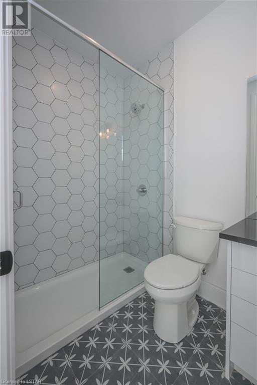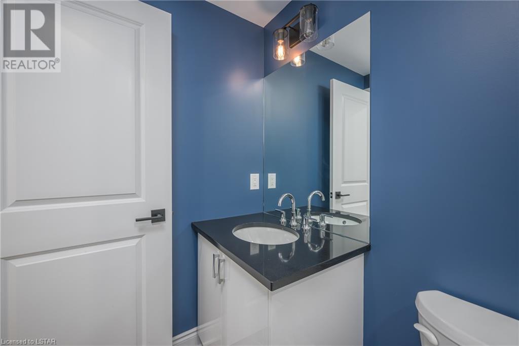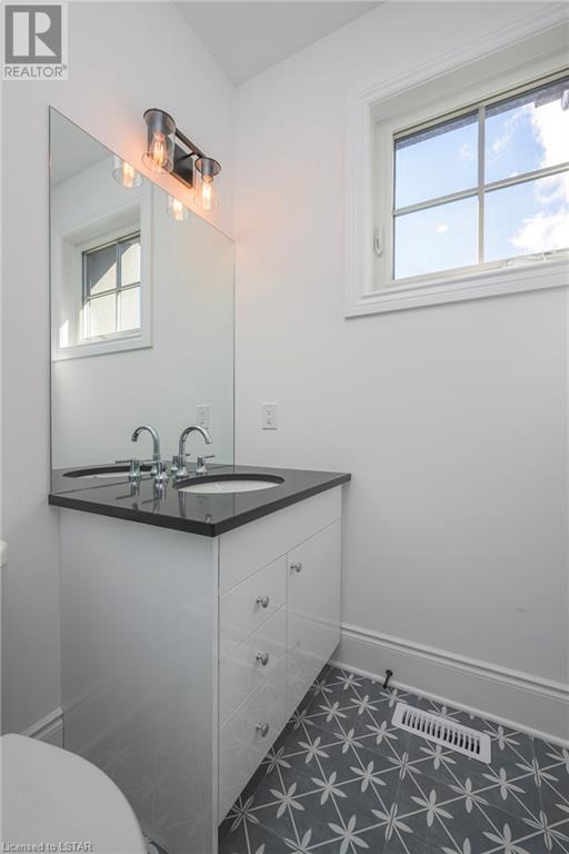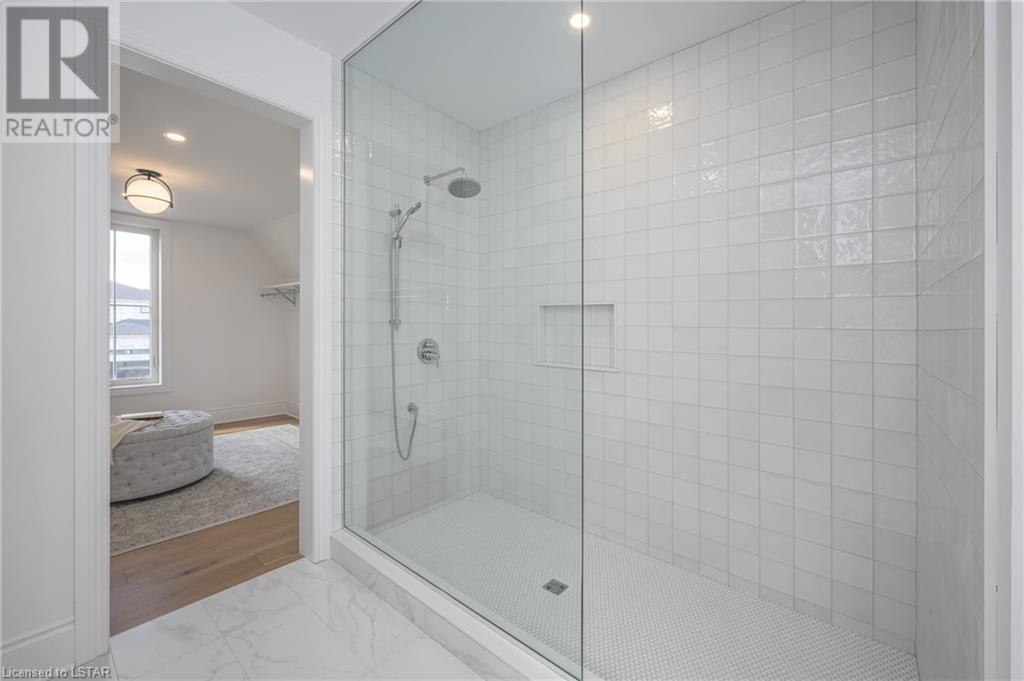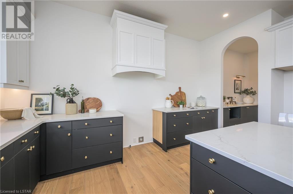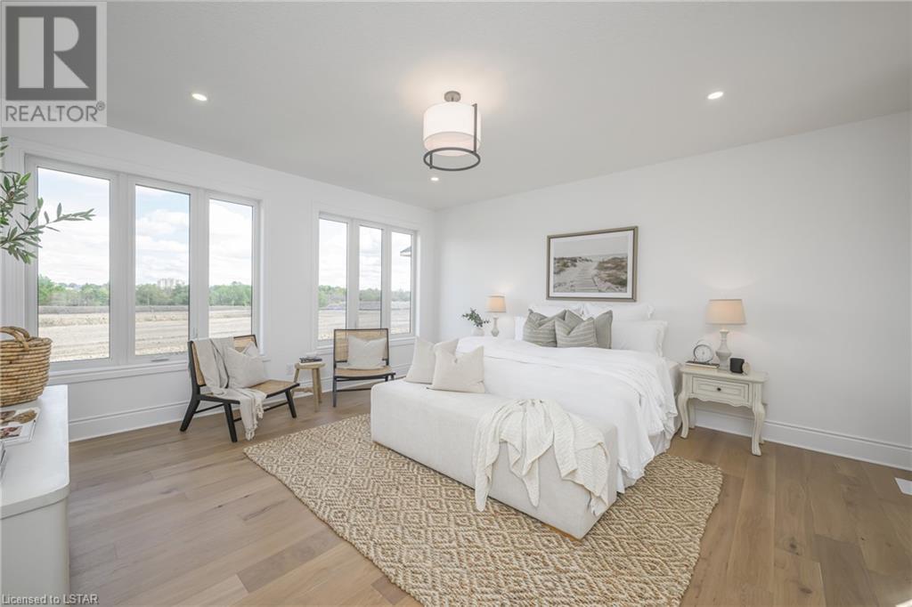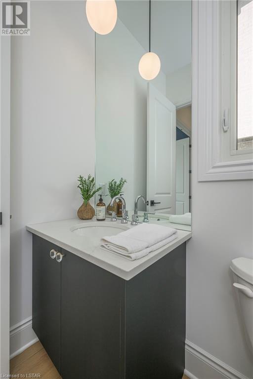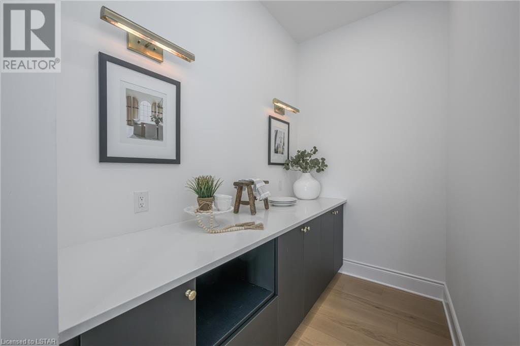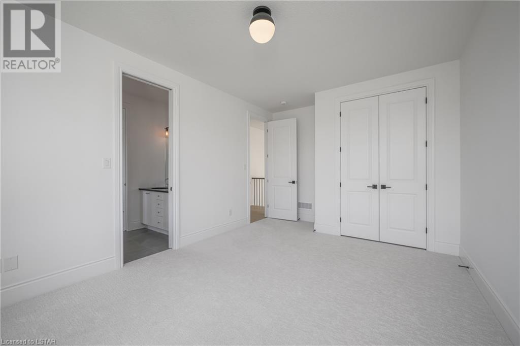 Impressive curb appeal w/ a combination of stone, graphite-tone stucco, black frame windows & standing-seam metal roof detailing. This 5-bedroom, 5-bathroom Westhaven Homes beauty offers a spacious, open-concept plan + finished basement for a total of ~4000 sq. ft of living in Sunningdale Court–North London’s executive lifestyle enclave. 10 ft ceilings & gorgeous windows draw natural light through the living spaces & across the White Oak floors. Great room combines a culinary haven w/ multiple gathering spaces. Outstanding kitchen design features extensive lower cabinetry/drawers in soft black tones w/gold detailing & crisp white uppers including mullioned glass display cabinets & extensive quartz surfaces. An arched entry into the Butler’s pantry extends serving & storage. Double islands, seating 10, open onto an inviting living room w/ 46 inch gas fireplace & large windows. 8 ft patio doors open onto covered back deck. Servery, just steps from dining room, creates impact w/ ceiling-height emerald-green artisan tile. Private main floor office w/ 13 ft cathedral ceiling. Locker-style millwork in the mudroom .Solid wood staircase ascends the 2nd floor where White Oak continues through the hallway & into the spacious primary suite. Primary ensuite displays blonde birch-style Scandinavian cabinetry w/ “soapstone” quartz counters, oversized glass shower w/ full tile surround/floor & niche, separate water closet & free-standing tub. Crossing the heated floors of the ensuite you arrive at a huge dressing room w/ natural light. Bedroom 2 enjoys a private 3-piece ensuite. 3rd & 4th bedrooms share a 5-piece ensuite w/ separated tub/toilet for convenience. Upper level laundry & 9 ft ceilings. Fully finished lower level adds large rec room/media room, 5th bedrooms & a 4-piece cheater ensuite. Generous 2 car garage with height for lifts. 63 ft x 129 ft pool sized lot. Prime location walking distance to Sunningdale Golf & the serene trails of the Medway Valley Heritage Forest. (id:22211)
