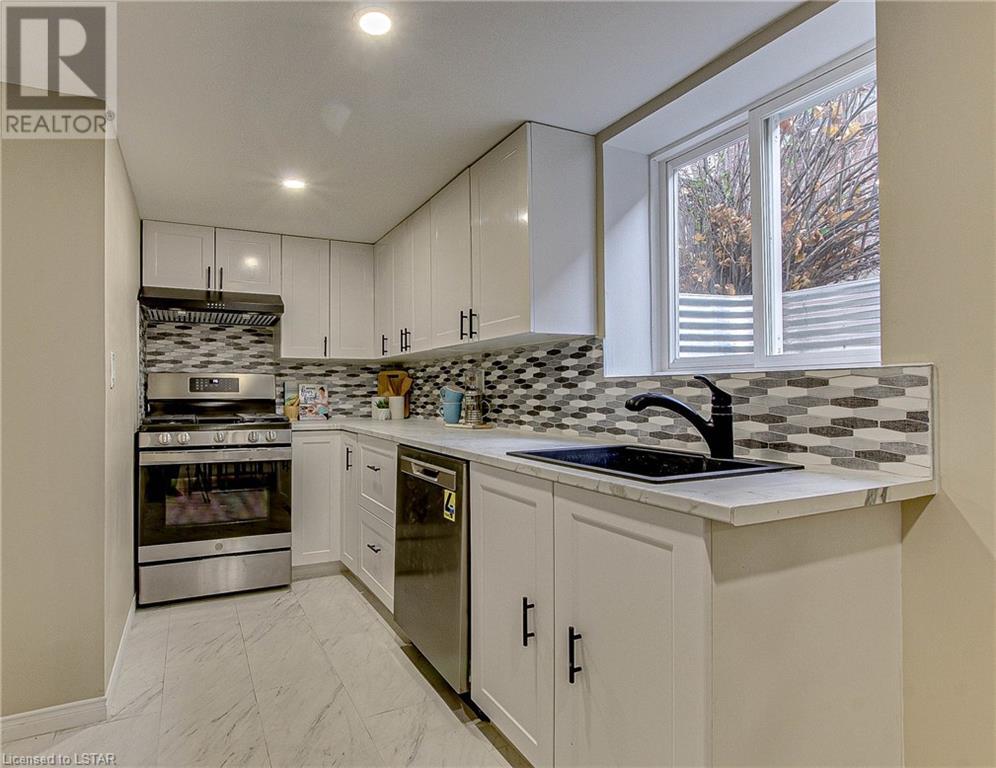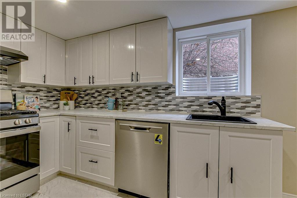 Come see this Carling Heights Gem you'll surely want to make your own. Situated on a tree-lined street in a family-friendly neighborhood, this fully-renovated, all brick home comes with great curb appeal, a carport with plenty of parking, and a large rear yard. From the foyer, step into the bright, sunny living room and adjoining dining room. The kitchen offers plenty of stylish 2-toned cabinets, professionally painted and all new hardware, brand new appliances and room for a breakfast nook if desired. This home is freshly painted in neutral tones, new light fixtures and new flooring throughout. Two spacious bedrooms and a beautifully updated 4-pc bath complete the main floor. The lower level is a fully finished walk-up to separate entrance with 4 large windows including 2 egress windows bringing in lots of natural light and a spacious laundry room. This level offers that much sought-after additional living space or in-law suite complete with 2 bedrooms, a 3-pc bath with walk-in shower, and a spacious open-concept living room, dining area and 2nd kitchen, with new appliances. Main and lower levels are separated with fire and sound barrier insulation. First time buyer? Come live in this move-in ready home while enjoying the great income potential of the in-law suite. Or add this excellent investment property to your real estate portfolio. (id:22211)