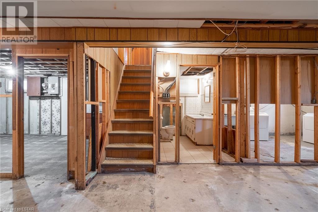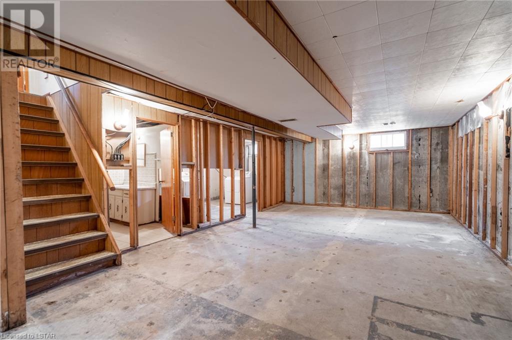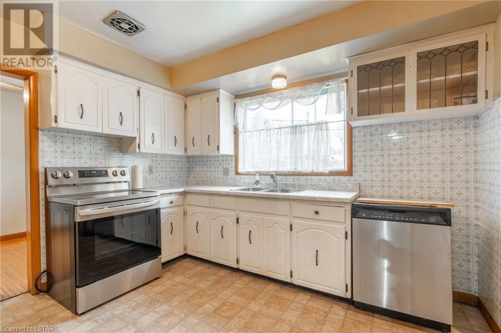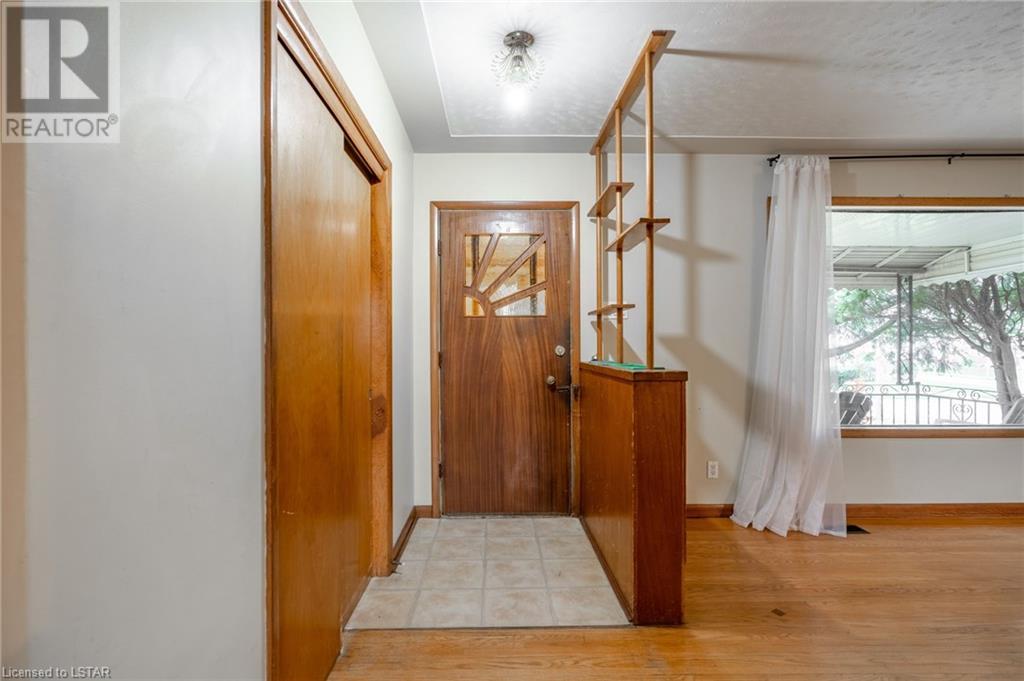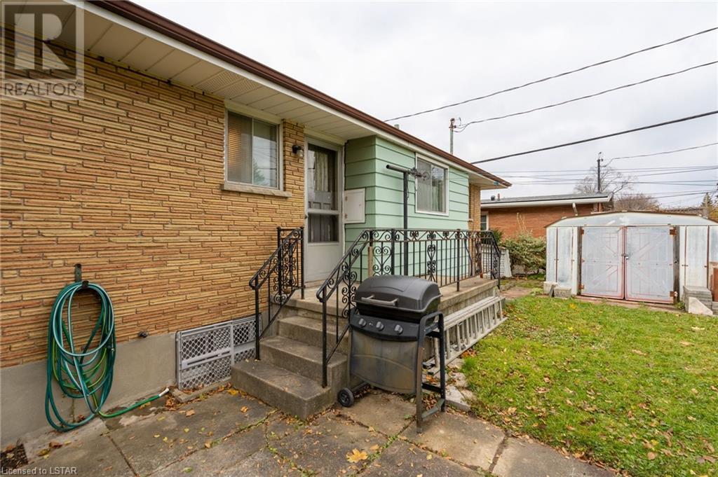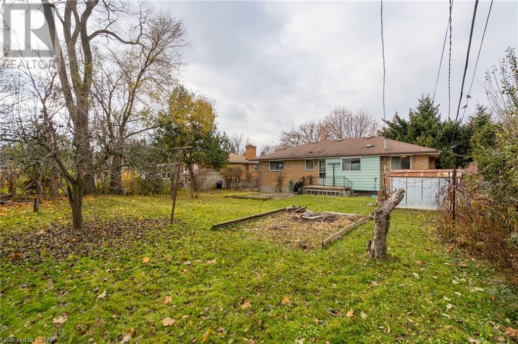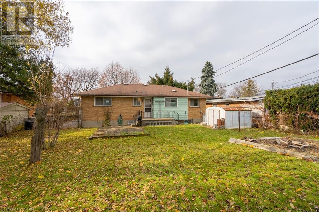 Welcome to this solid brick bungalow that has been well loved and well used. While there will be a renovation needed, some big ticket items are already done such as furnace, air conditioner and the single drive turned into a double wide near the street, among others. A very nice upgrade from the single wide driveway to a double, super handy for those with more than one car. This will also be a perfect home for someone to build some sweat equity. Pulling up the first thing you will notice is the curb appeal and how the house sits elevated from the street on a nice piece of property, 60 x 125 feet with mature trees giving good privacy. A large covered concrete front porch is a great place to relax and watch the world go by or to a enjoy a storm or a book. Heading around to the backyard, an older but solid storage shed is tucked neatly in the corner of the yard. The backyard has a bunch of fruit trees including two kinds of pear, plum and high producing quality grape vines too. There are a couple of spots that have been used for vegetable and herb gardens and lots of space in this large backyard. The shed could use a coat of paint but that's it, a nice solid structure! Heading back to the front door, as you step in you will see the original hardwood floors in pretty good condition in most spots and a large living room. As with most three-bedroom bungalows, the bedrooms are at the other end of the house and are decent size. Once downstairs the bones of the home are solid with a great workshop area that every man would love. The basement was beginning to get a renovation which is why the walls have been stripped and the flooring too. Contractors will love this as it saves time and money and everything is exposed. Lots of storage in the utility room as well and a large laundry room is laid out well. The house is very close to the 401 highway as well. Bring your tools and your imagination. Easy to show, vacant - see offer remarks. (id:22211)