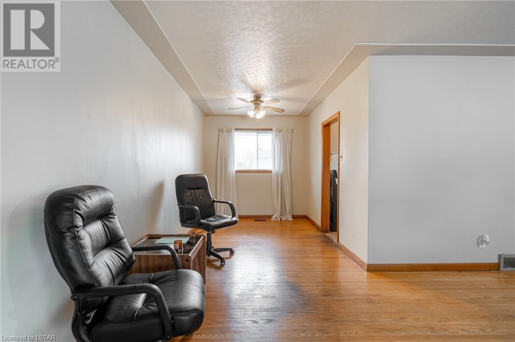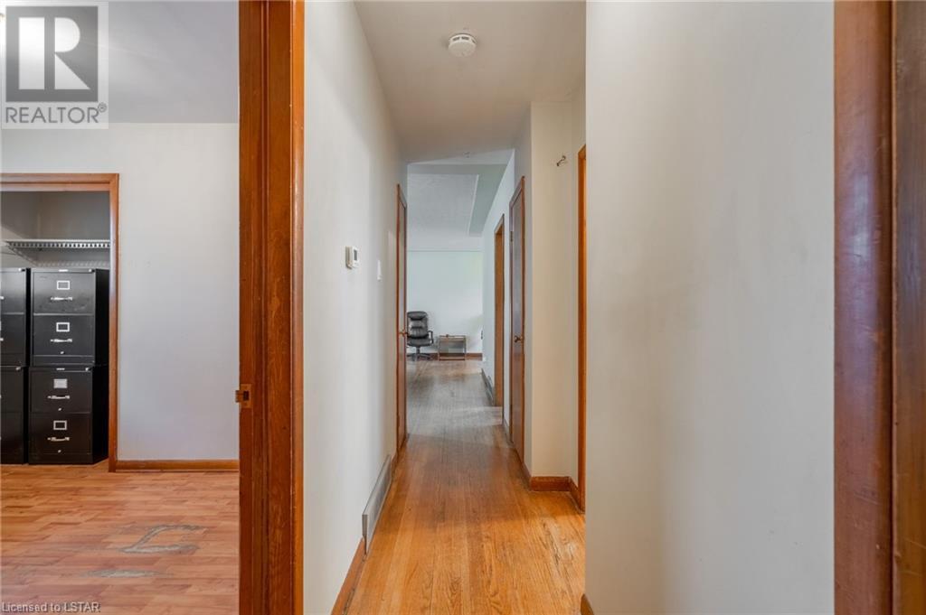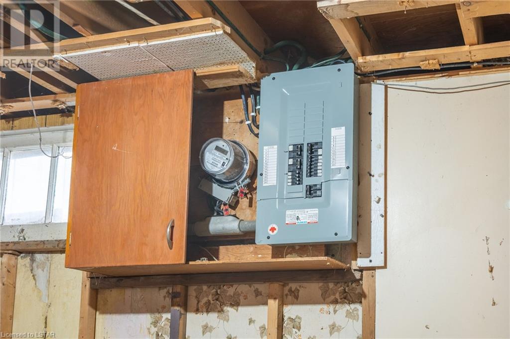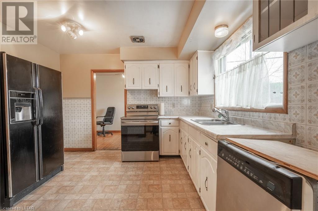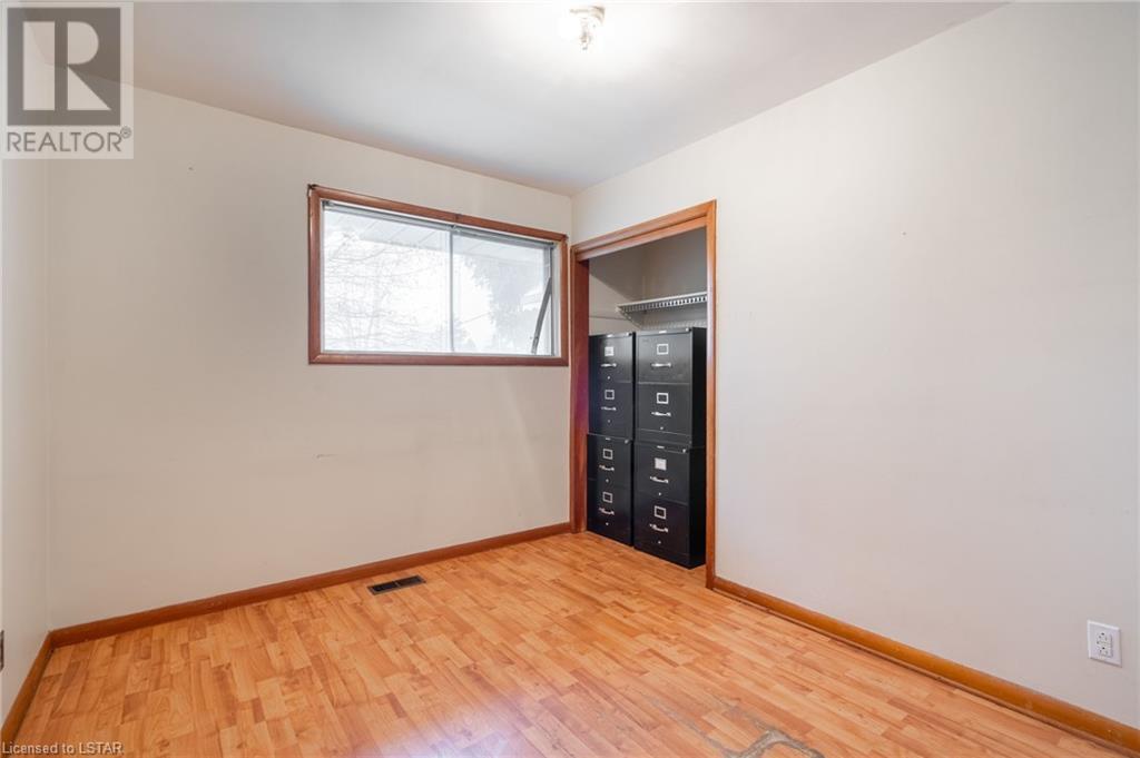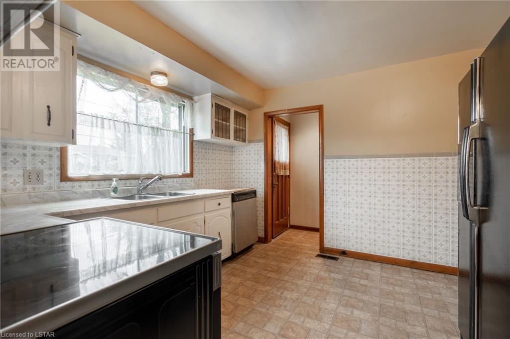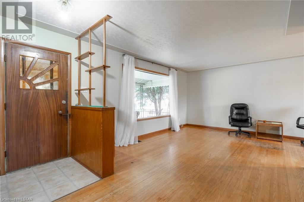 Welcome to this solid brick bungalow that has been well loved and well used. While there will be a renovation needed, some big ticket items are already done such as furnace, air conditioner and the single drive turned into a double wide near the street, among others. A very nice upgrade from the single wide driveway to a double, super handy for those with more than one car. This will also be a perfect home for someone to build some sweat equity. Pulling up the first thing you will notice is the curb appeal and how the house sits elevated from the street on a nice piece of property, 60 x 125 feet with mature trees giving good privacy. A large covered concrete front porch is a great place to relax and watch the world go by or to a enjoy a storm or a book. Heading around to the backyard, an older but solid storage shed is tucked neatly in the corner of the yard. The backyard has a bunch of fruit trees including two kinds of pear, plum and high producing quality grape vines too. There are a couple of spots that have been used for vegetable and herb gardens and lots of space in this large backyard. The shed could use a coat of paint but that's it, a nice solid structure! Heading back to the front door, as you step in you will see the original hardwood floors in pretty good condition in most spots and a large living room. As with most three-bedroom bungalows, the bedrooms are at the other end of the house and are decent size. Once downstairs the bones of the home are solid with a great workshop area that every man would love. The basement was beginning to get a renovation which is why the walls have been stripped and the flooring too. Contractors will love this as it saves time and money and everything is exposed. Lots of storage in the utility room as well and a large laundry room is laid out well. The house is very close to the 401 highway as well. Bring your tools and your imagination. Easy to show, vacant - see offer remarks. (id:22211)