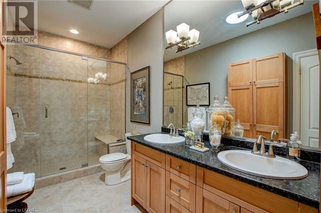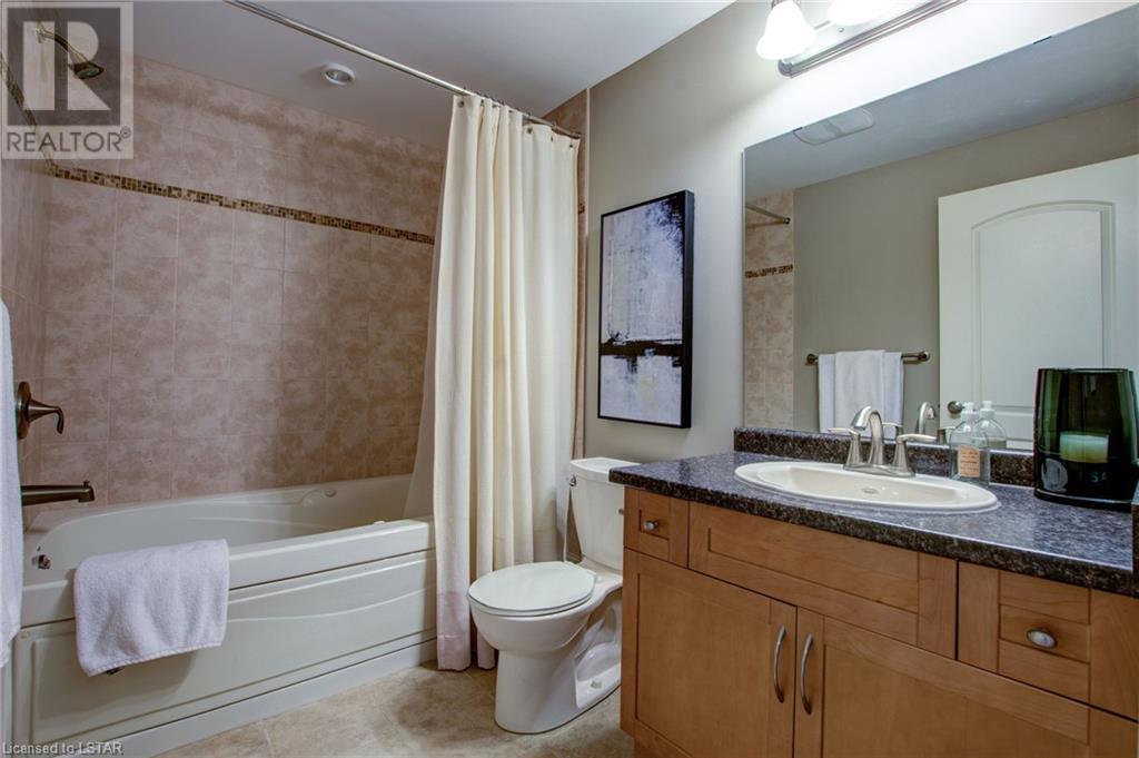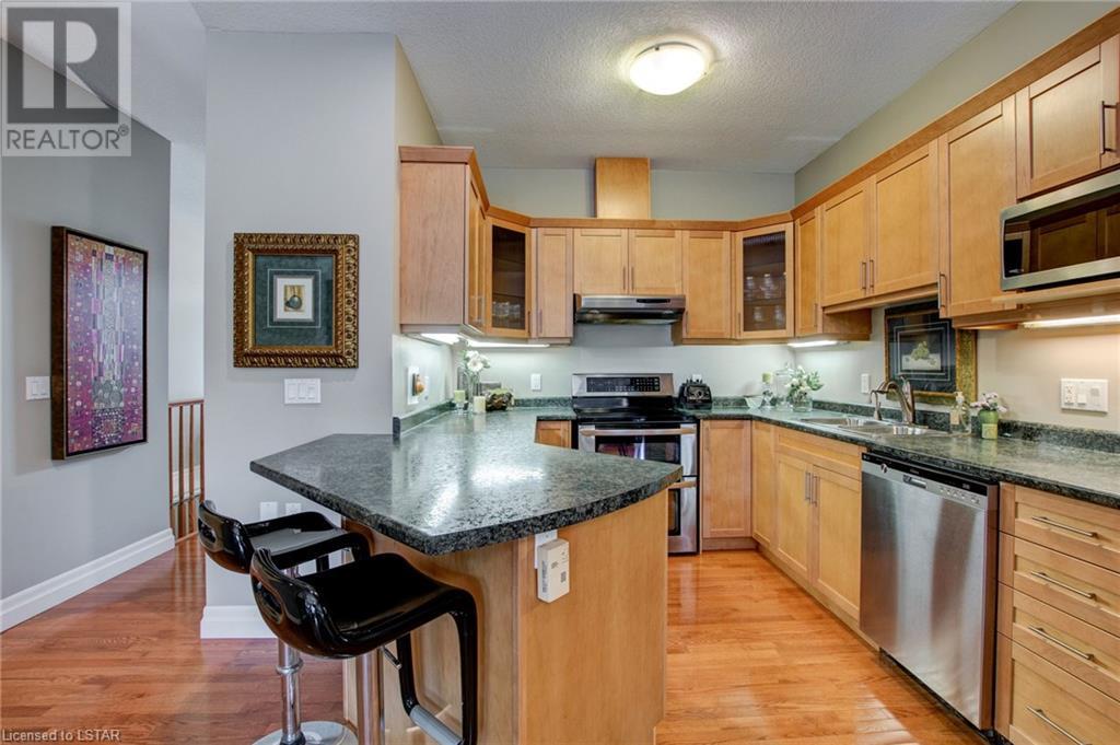 Gorgeous luxury condo in popular River Bend, built by Rembrandt Homes with high quality finishes. Tucked away in a beautiful manicured development but close to all amenities. Fantastic open concept with high ceilings, hardwood flooring, bright and spacious main living area. Lovely kitchen with lots of cabinets, breakfast bar and stainless appliances. Great room and dining area with wall of windows over looking deck and back yard. Spacious primary bedroom with bay window with beautiful 3 piece ensuite. Second bedroom or office/den and two piece bathroom. Convenient main floor laundry. Finished lower level with large family room, gas fireplace and plenty of room for games area and sitting area. 3rd bedroom with 4 piece bathroom perfect for guest. Privacy and Serenity describe the beautiful area as you relax on your entertaining sized deck overlooking the well manicured green space. Close to lovely walking trails, parks near by, just minutes to many golf courses, great shopping. This is truly a wonderful place to call home. (id:22211)