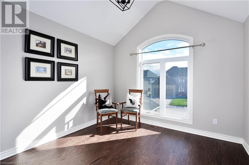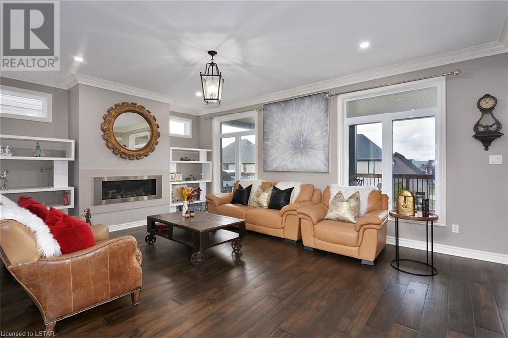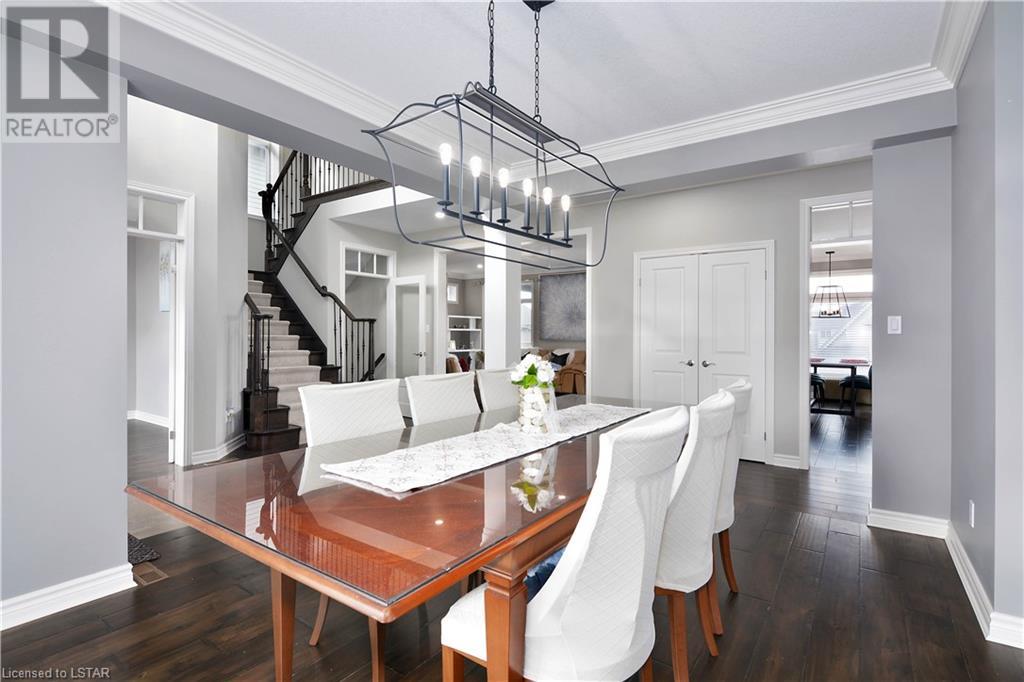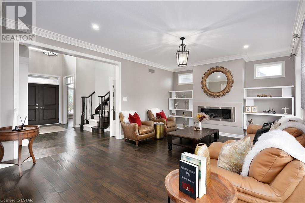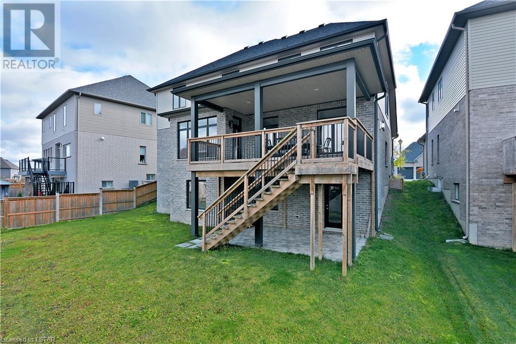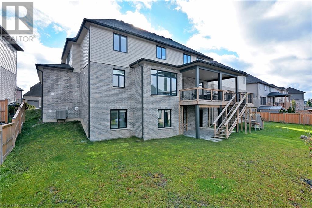 Experience the essence of Upper Richmond Village in this exquisite residence nestled in North London, just moments away from entertainment, and essential amenities. Conveniently close to UWO, Masonville Mall, Sunningdale Golf Club, and the YMCA, this luxurious abode, crafted by Harasym Homes in 2018, graces a premium lot with a walk-out basement. Step into a world of sophistication and comfort, where a 9-foot ceiling welcomes you, adorned with aluminum-covered columns and an abundance of recessed lighting. Revel in the elegance of hardwood flooring, a warm gas fireplace and a kitchen boasting high-gloss cabinetry, granite countertops and an inviting island. The expansive dining room, family room and den exude luxury, complemented by the refined crown moulding throughout. Practicality meets style with a main floor laundry for added convenience and a charming covered deck for intimate outdoor moments. The fully finished walk-out lower level adds another dimension to this already remarkable home, providing versatility and space. Meticulously construced to the highest standards, this property stands as a testament to quality and attention to detail. Don't let this extraordinary opportunity slip away - seize the chance to call this unique residence your own. (id:22211)