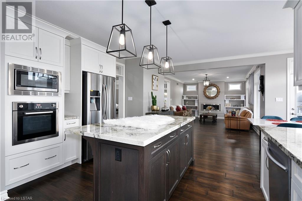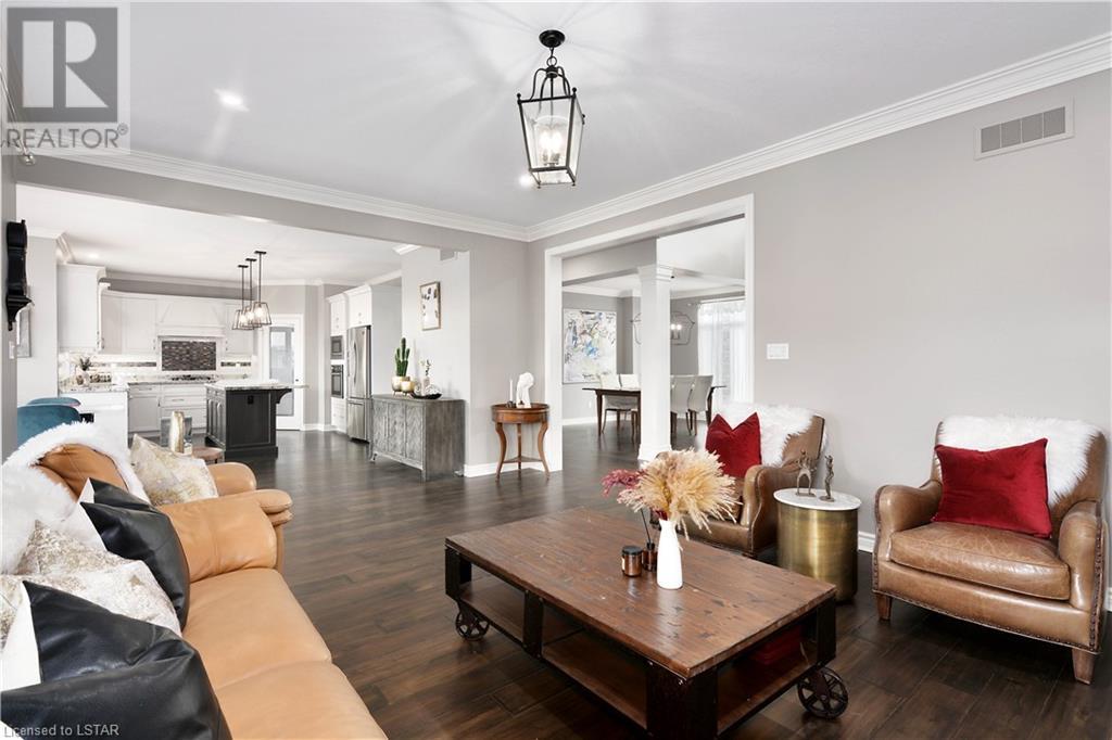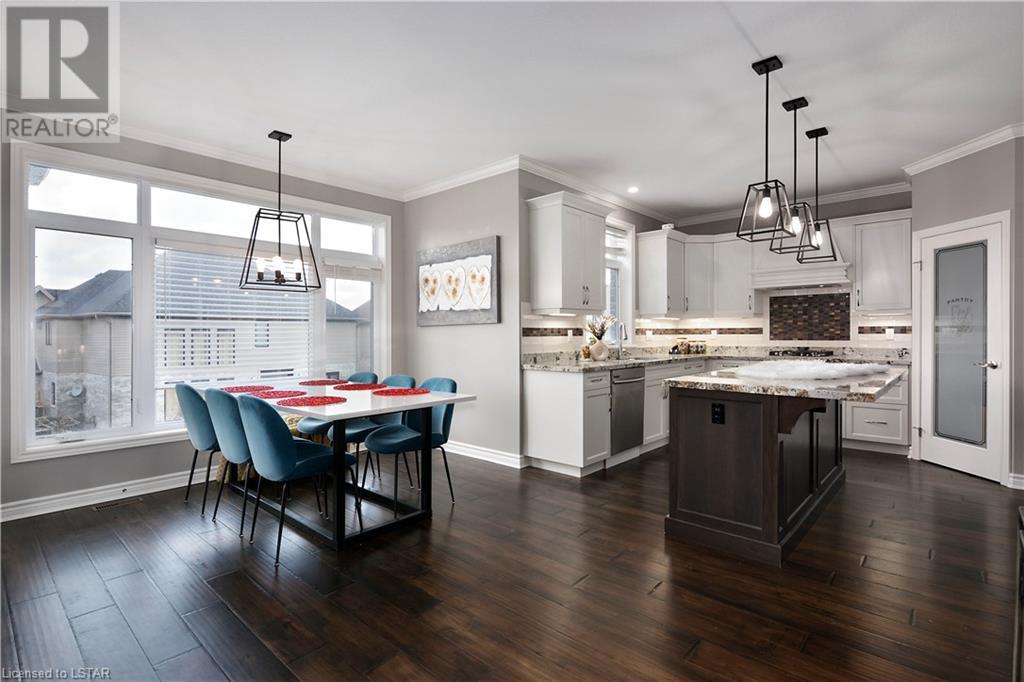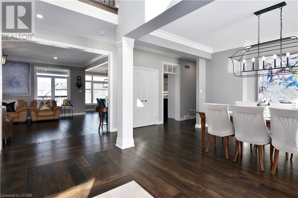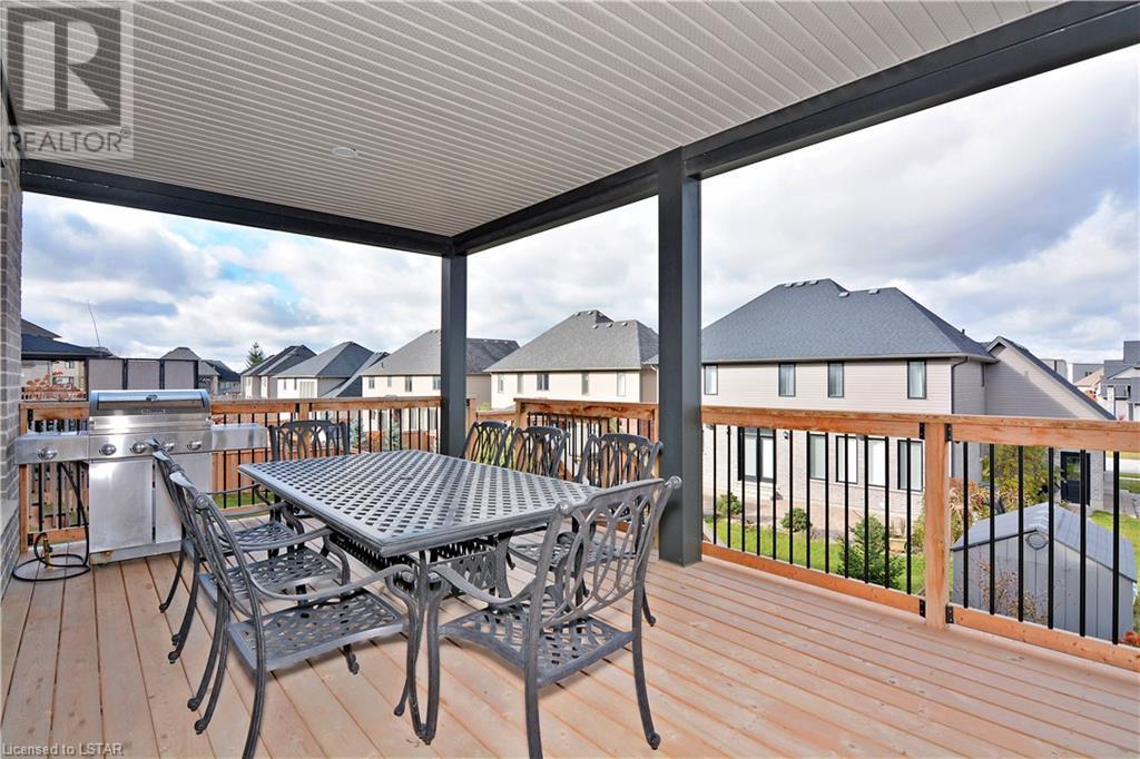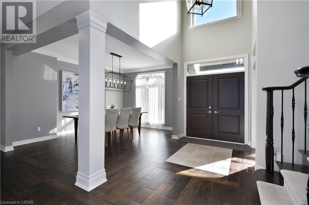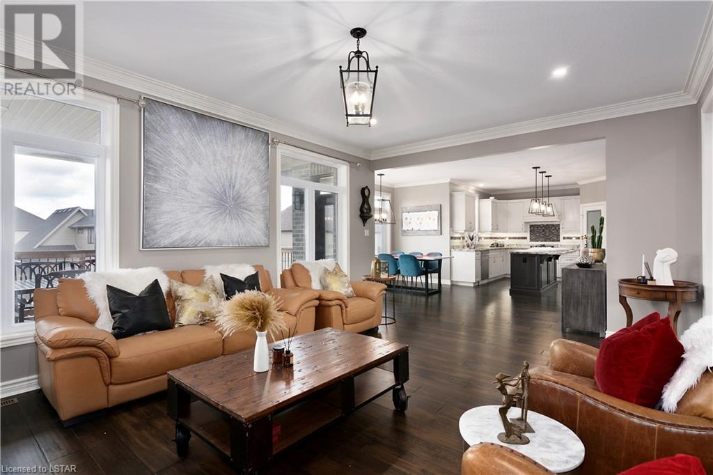 Experience the essence of Upper Richmond Village in this exquisite residence nestled in North London, just moments away from entertainment, and essential amenities. Conveniently close to UWO, Masonville Mall, Sunningdale Golf Club, and the YMCA, this luxurious abode, crafted by Harasym Homes in 2018, graces a premium lot with a walk-out basement. Step into a world of sophistication and comfort, where a 9-foot ceiling welcomes you, adorned with aluminum-covered columns and an abundance of recessed lighting. Revel in the elegance of hardwood flooring, a warm gas fireplace and a kitchen boasting high-gloss cabinetry, granite countertops and an inviting island. The expansive dining room, family room and den exude luxury, complemented by the refined crown moulding throughout. Practicality meets style with a main floor laundry for added convenience and a charming covered deck for intimate outdoor moments. The fully finished walk-out lower level adds another dimension to this already remarkable home, providing versatility and space. Meticulously construced to the highest standards, this property stands as a testament to quality and attention to detail. Don't let this extraordinary opportunity slip away - seize the chance to call this unique residence your own. (id:22211)