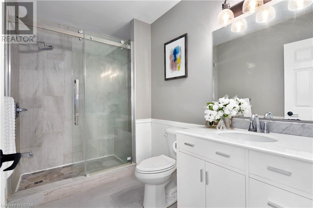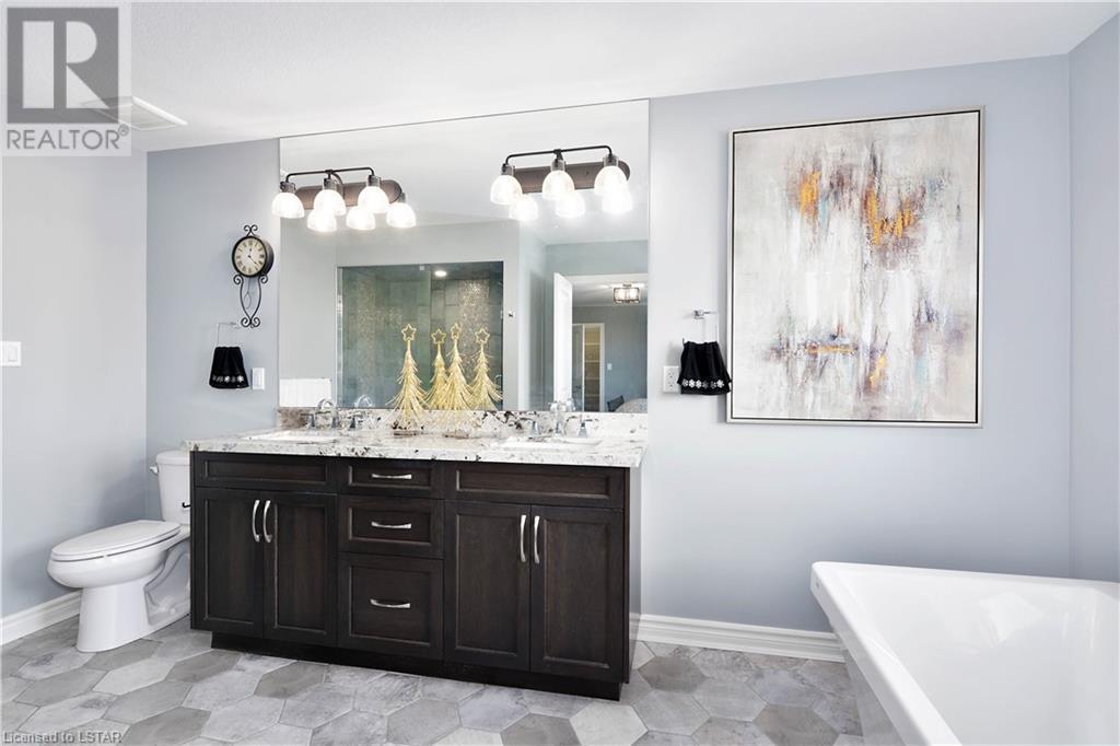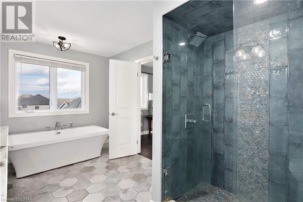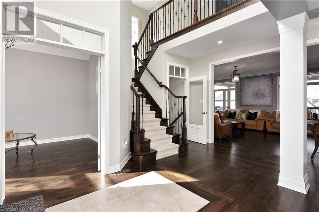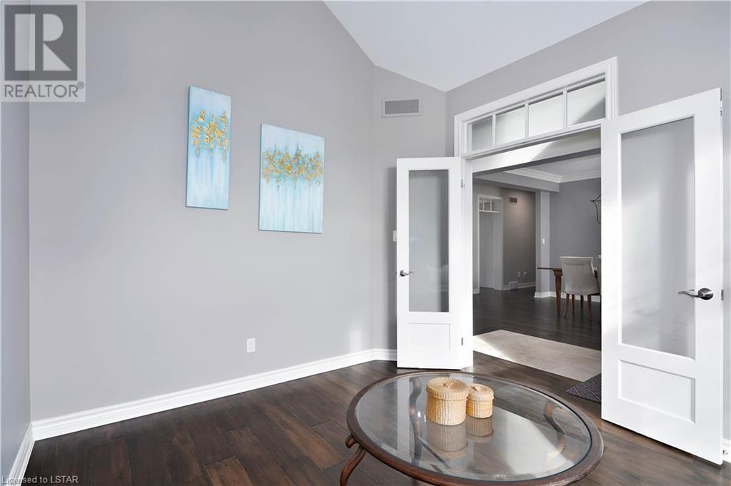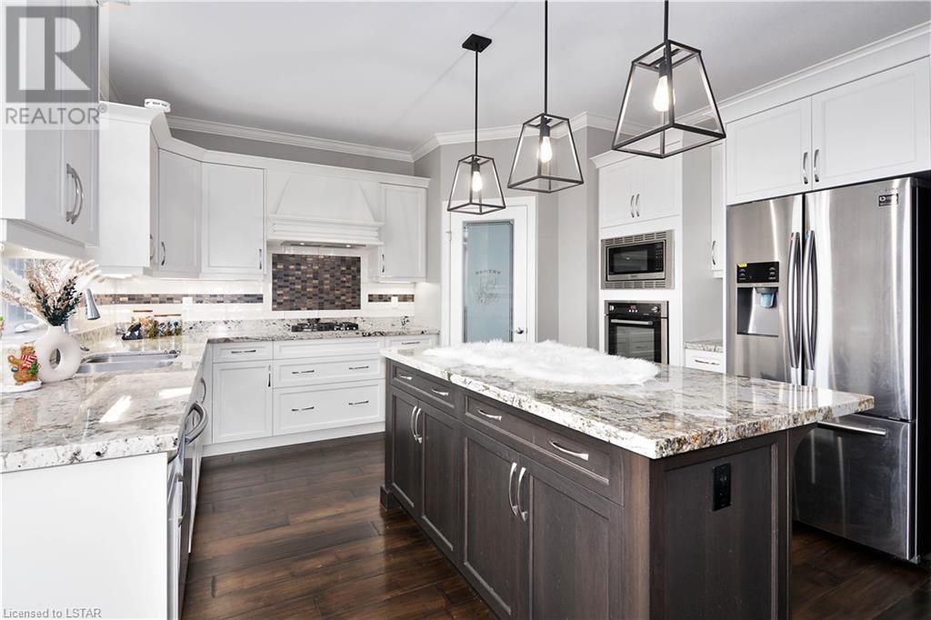 Experience the essence of Upper Richmond Village in this exquisite residence nestled in North London, just moments away from entertainment, and essential amenities. Conveniently close to UWO, Masonville Mall, Sunningdale Golf Club, and the YMCA, this luxurious abode, crafted by Harasym Homes in 2018, graces a premium lot with a walk-out basement. Step into a world of sophistication and comfort, where a 9-foot ceiling welcomes you, adorned with aluminum-covered columns and an abundance of recessed lighting. Revel in the elegance of hardwood flooring, a warm gas fireplace and a kitchen boasting high-gloss cabinetry, granite countertops and an inviting island. The expansive dining room, family room and den exude luxury, complemented by the refined crown moulding throughout. Practicality meets style with a main floor laundry for added convenience and a charming covered deck for intimate outdoor moments. The fully finished walk-out lower level adds another dimension to this already remarkable home, providing versatility and space. Meticulously construced to the highest standards, this property stands as a testament to quality and attention to detail. Don't let this extraordinary opportunity slip away - seize the chance to call this unique residence your own. (id:22211)