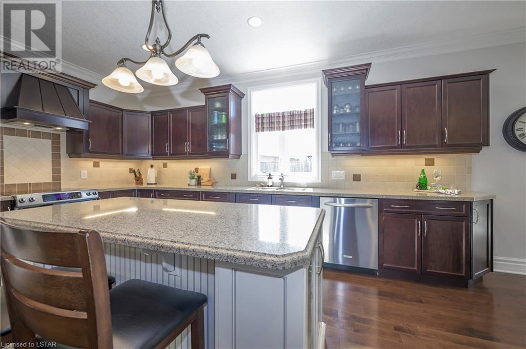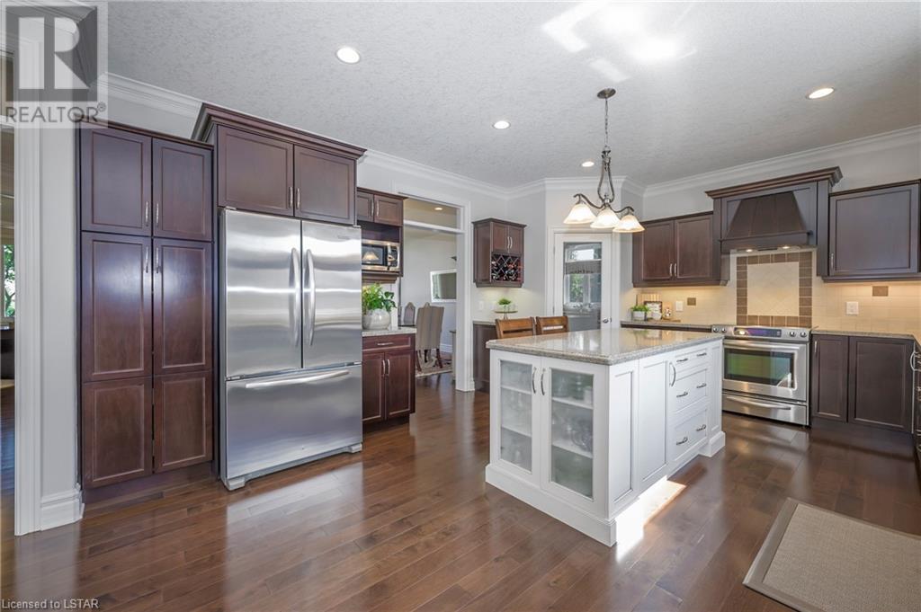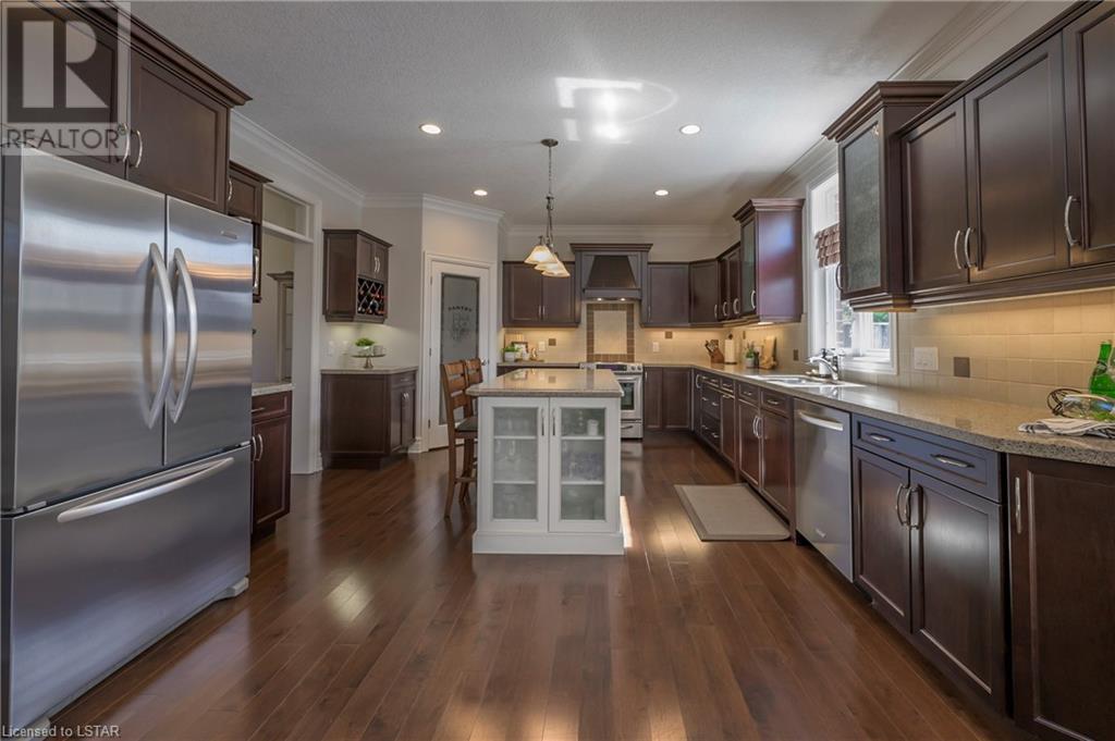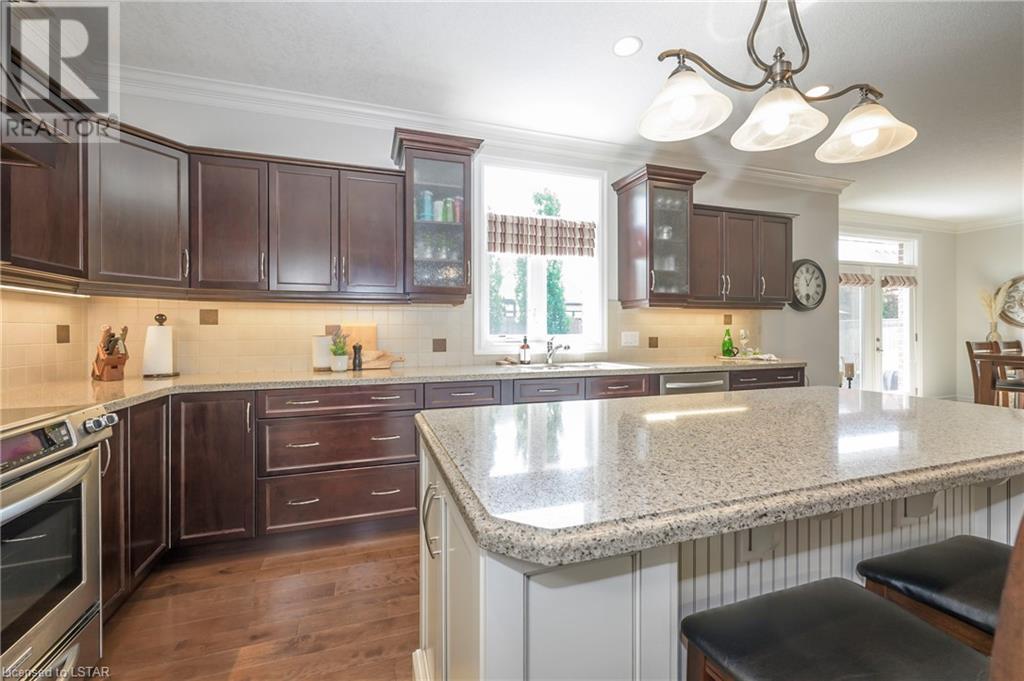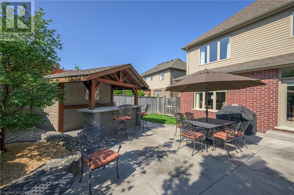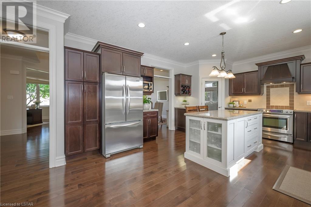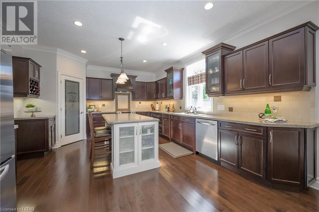 Impressive ~ 2900 sq. ft., 4 bedroom, executive home w/ heated salt-water pool oasis + finished lower level in Eagle Ridge just steps from nature trails through Kains Woods along the river. Timeless red brick exterior, stucco accents, covered front porch & meticulous landscaping create striking curb appeal. Build/workmanship offer meticulous attention to detail. Spacious floor plan & windows allow for seamless flow & an abundance of natural light. Freshly painted interior in soft ivory tones adds fresh sophistication. Rich hardwood flooring throughout main floor leads to separate dining room w/ cathedral ceiling & a private office ideal for remote work. The heart of the home unfolds in the open-concept kitchen/living room. Gourmet kitchen features granite counters, espresso cabinetry, stainless appliances, center island, walk-in pantry & spacious dinette. Kitchen opens into the oversized family room showcasing a beautiful fireplace surrounded by gracious builtins. Ascend the 2nd floor to 4 bedrooms including a large primary suite w/ tray ceiling, 5-piece ensuite w/separate shower, soaker tub & double sinks , walk-in closet & large sunlit windows. Finished lower level boasts a convenient separate garage staircase, expansive media/games room area, bonus room + full bathroom. Step outside to your private retreat in the fully fenced backyard. Thoughtful hardscaping & landscaping offer a low maintenance backyard experience so you can spend your time relaxing poolside or enjoying a refreshing beverage under the shade of the covered Muskoka bar. This executive property seamlessly blends a captivating front exterior with a thoughtfully designed interior, a high-functioning floor plan & a backyard oasis. Oversized garage & extended driveway park 6. Main floor laundry. Pool pump/cartridge filters ~3 yrs. Riverbend Park, schools, playgrounds, shopping, Golf & restaurants. within walking distance. Welcome Home. (id:22211)