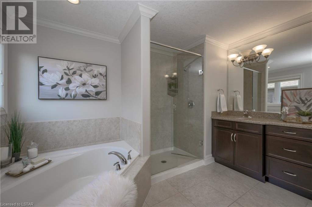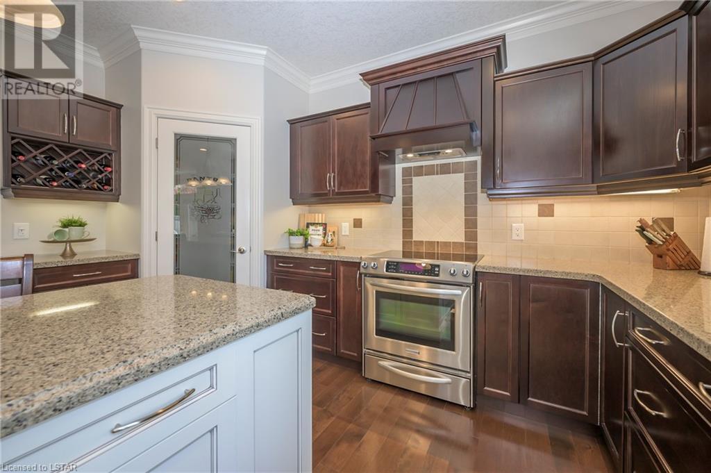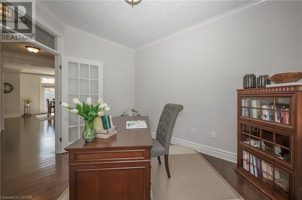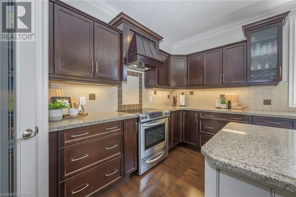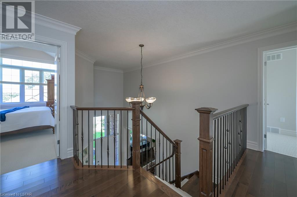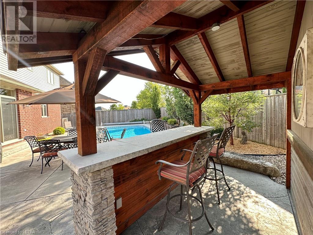 Impressive ~ 2900 sq. ft., 4 bedroom, executive home w/ heated salt-water pool oasis + finished lower level in Eagle Ridge just steps from nature trails through Kains Woods along the river. Timeless red brick exterior, stucco accents, covered front porch & meticulous landscaping create striking curb appeal. Build/workmanship offer meticulous attention to detail. Spacious floor plan & windows allow for seamless flow & an abundance of natural light. Freshly painted interior in soft ivory tones adds fresh sophistication. Rich hardwood flooring throughout main floor leads to separate dining room w/ cathedral ceiling & a private office ideal for remote work. The heart of the home unfolds in the open-concept kitchen/living room. Gourmet kitchen features granite counters, espresso cabinetry, stainless appliances, center island, walk-in pantry & spacious dinette. Kitchen opens into the oversized family room showcasing a beautiful fireplace surrounded by gracious builtins. Ascend the 2nd floor to 4 bedrooms including a large primary suite w/ tray ceiling, 5-piece ensuite w/separate shower, soaker tub & double sinks , walk-in closet & large sunlit windows. Finished lower level boasts a convenient separate garage staircase, expansive media/games room area, bonus room + full bathroom. Step outside to your private retreat in the fully fenced backyard. Thoughtful hardscaping & landscaping offer a low maintenance backyard experience so you can spend your time relaxing poolside or enjoying a refreshing beverage under the shade of the covered Muskoka bar. This executive property seamlessly blends a captivating front exterior with a thoughtfully designed interior, a high-functioning floor plan & a backyard oasis. Oversized garage & extended driveway park 6. Main floor laundry. Pool pump/cartridge filters ~3 yrs. Riverbend Park, schools, playgrounds, shopping, Golf & restaurants. within walking distance. Welcome Home. (id:22211)