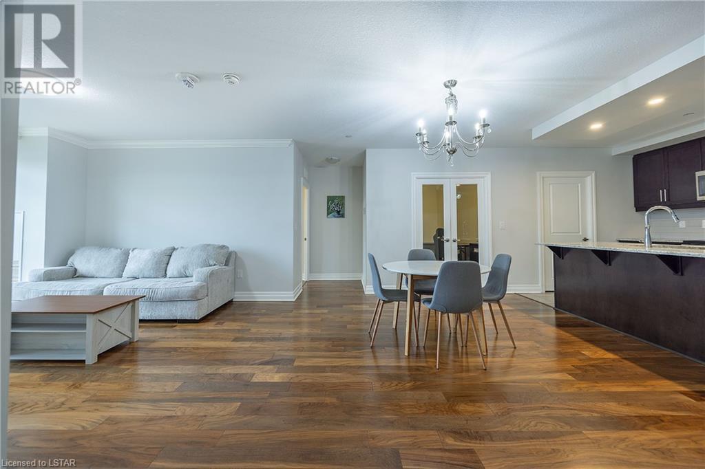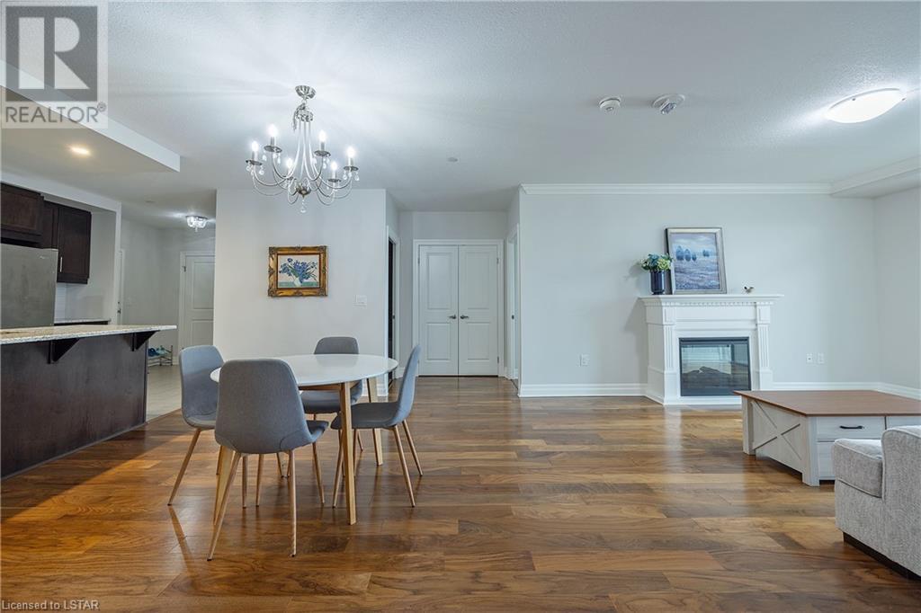 Welcome to this condo unit with two bedrooms plus a den and two full bath located in the desirable North London, close to Western University and Masonville shopping Mall. The hardwood flooring throughout the unit adds warmth and elegance. The open-concept living area incorporates the kitchen with a granite island, dining, the pantry closet offers ample storage for kitchen essentials, and a fireplace. Large windows and balcony showcase beautiful views, allowing natural light to flood the interior and offering a glimpse of the surrounding scenery. The den can be transformed into a home office, or a cozy reading nook. The primary bedroom featuring an en-suite bathroom with granite counter top and two big closets, adding a touch of luxury and convenience to the space. One underground parking spot comes with this unit. The condo also provides indoor pool, fitness room, golf simulator room, billiards/tennis tables/lounge, theatre room, large kitchen/dining for meeting/gatherings and a gorgeous outdoor patio. (id:22211)